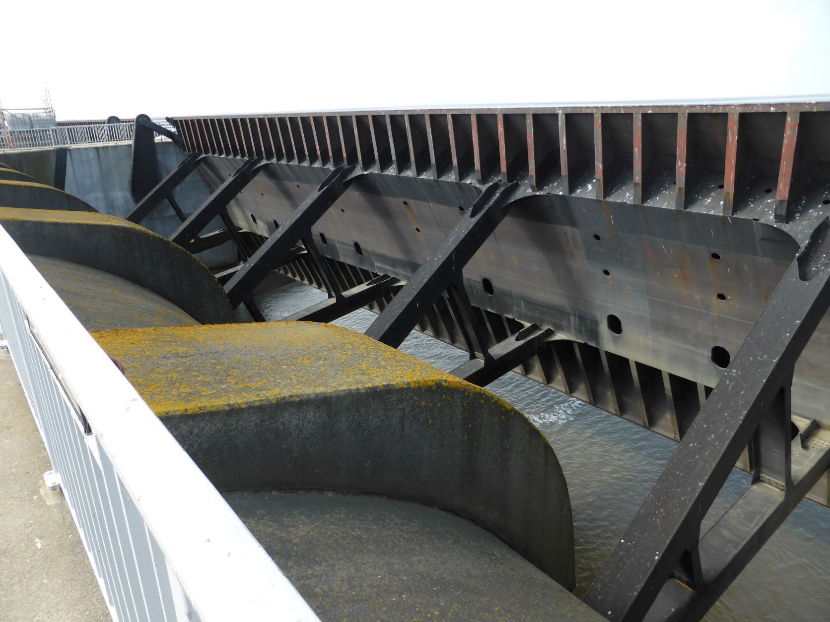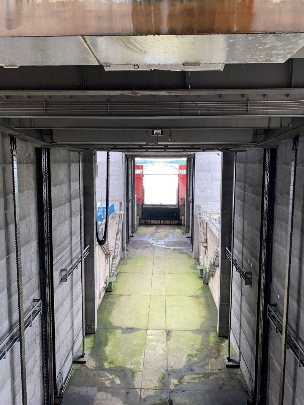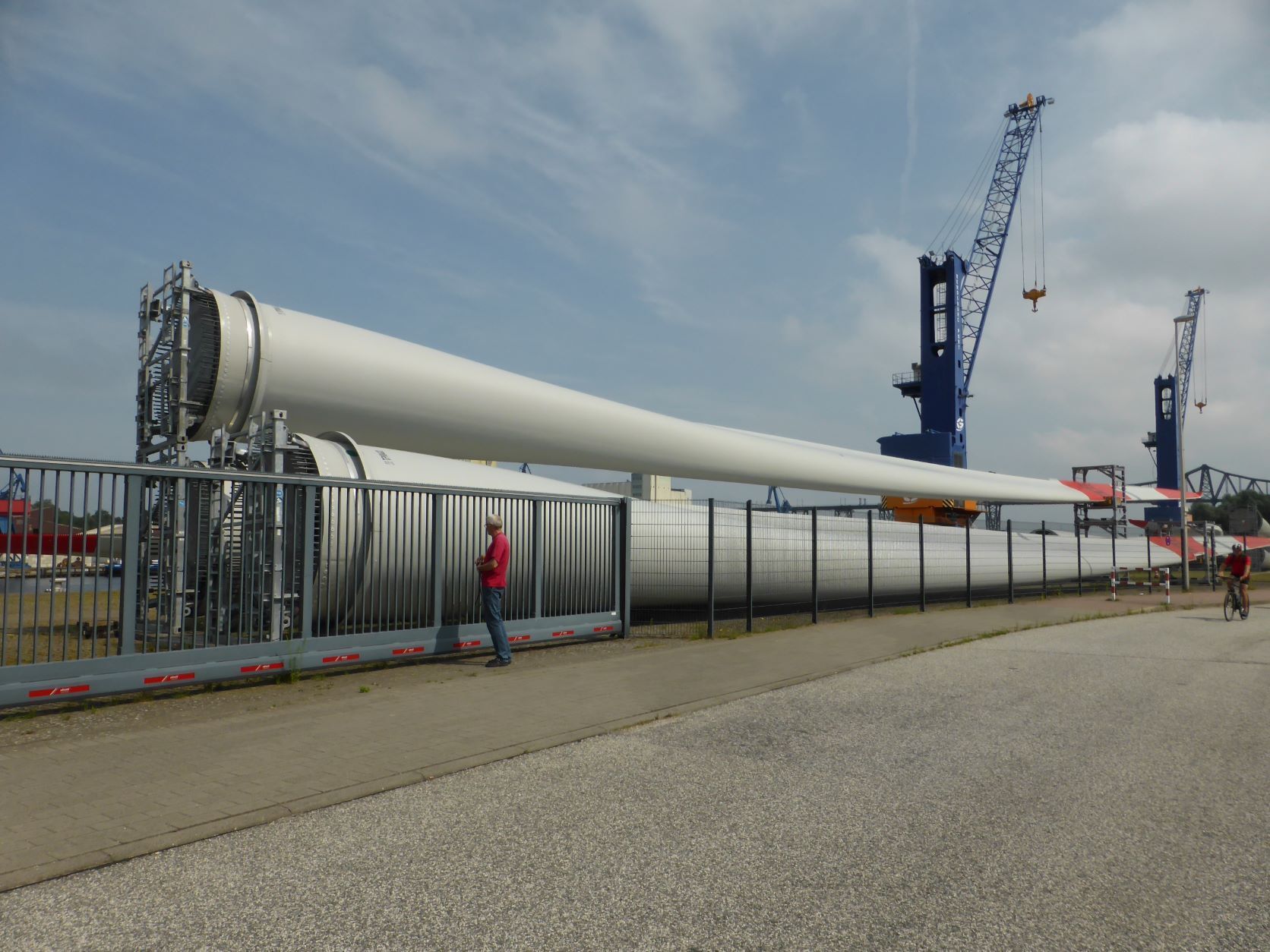 In der Nähe besuchen wir das Schiffshebewerk Scharnebeck an der Elbe. Das ist eine Art Schleuse einfach in einer Wanne. Zum Glück kommt da gerade ein grosser Kohlekahn, gegen 100m lang. Der hat genau Platz in der Wanne. Dann werden die Tore geschlossen und die 6000t, Kahn, Wasser und Schiff, werden von weiteren 6000t Gegengewichten 38m wie im Lift gehoben, dann fährt der Kahn weiter, oben kommen neue Schiffe, die unten wieder weiterfahren. Hans bekommt glänzende Augen und ich bin fasziniert.