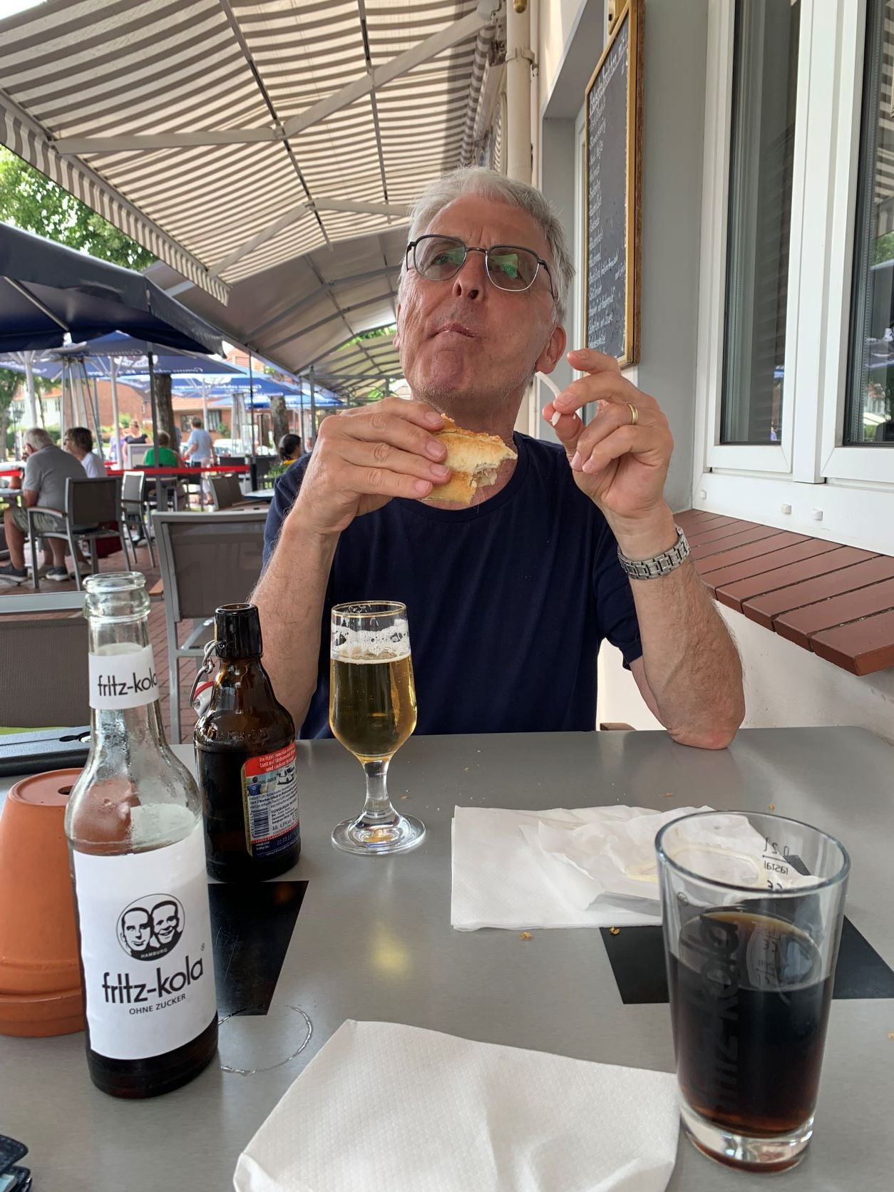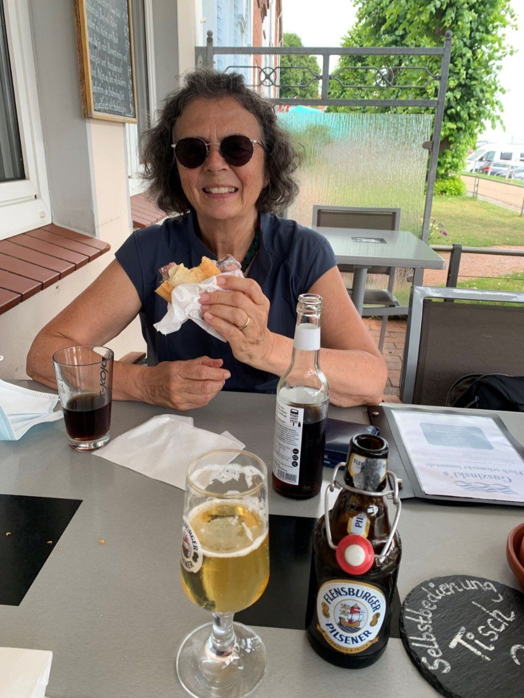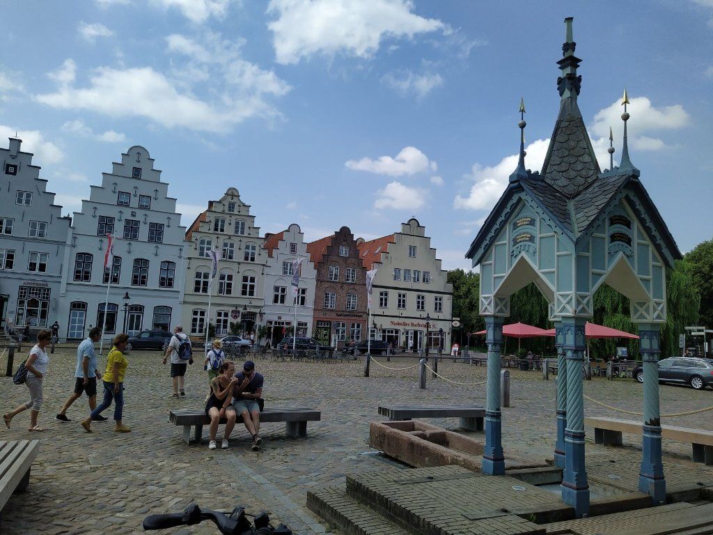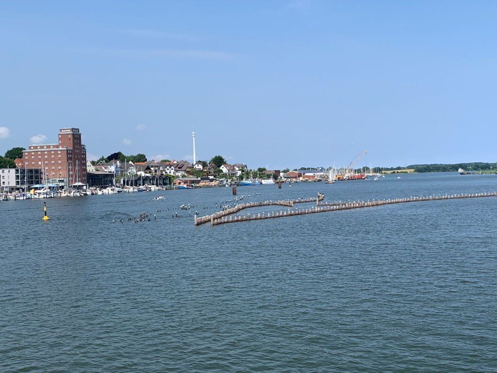 Wir verabschieden uns von Angela und Niels ausgestattet mit vielen Tipps für die Weiterreise. Über Friedrichstadt kommen wir nach Tönning am Wattenmeer der Nordsee. Dort schützen hohe Deiche und das Eidersperrwerk das Land. Das Wattenmeer ist voller Leben, auch wenn es bei Ebbe wie Lehm und Matsch aussieht. Im Multimar Wattforum tauchen wir ein in die Wunderwelt von grossen und kleinen Tieren. Besonders und neu war für uns, dass die Algen den meisten Sauerstoff für die Welt produzieren. Das Eidersperrwerk regelt den Zu- und Abfluss des Meeres, wichtig besonders bei Sturm. Den würde man bis Rendsburg spüren. Bei Sturmflut oder wenn zuviel Sand zurück in die Eider fliessen, können die 5 Sieltore geschlossen werden. Das Sperrwerk liegt mitten in einem grossen Naturschutzgebiet. Die Möwen haben dort ihr Brutgebiet. Es ist laut und und geschäftig. Ein Schritt zu nahe und schon kommt die erste im Tiefflug über unsere Köpfen und faucht uns an. Die Fotos stammen vom Deich. Anstatt Möwen zu futtern, essen wir doch lieber feine Fischbrötchen.