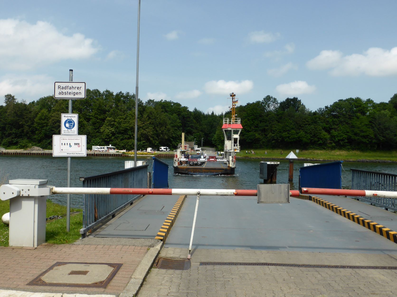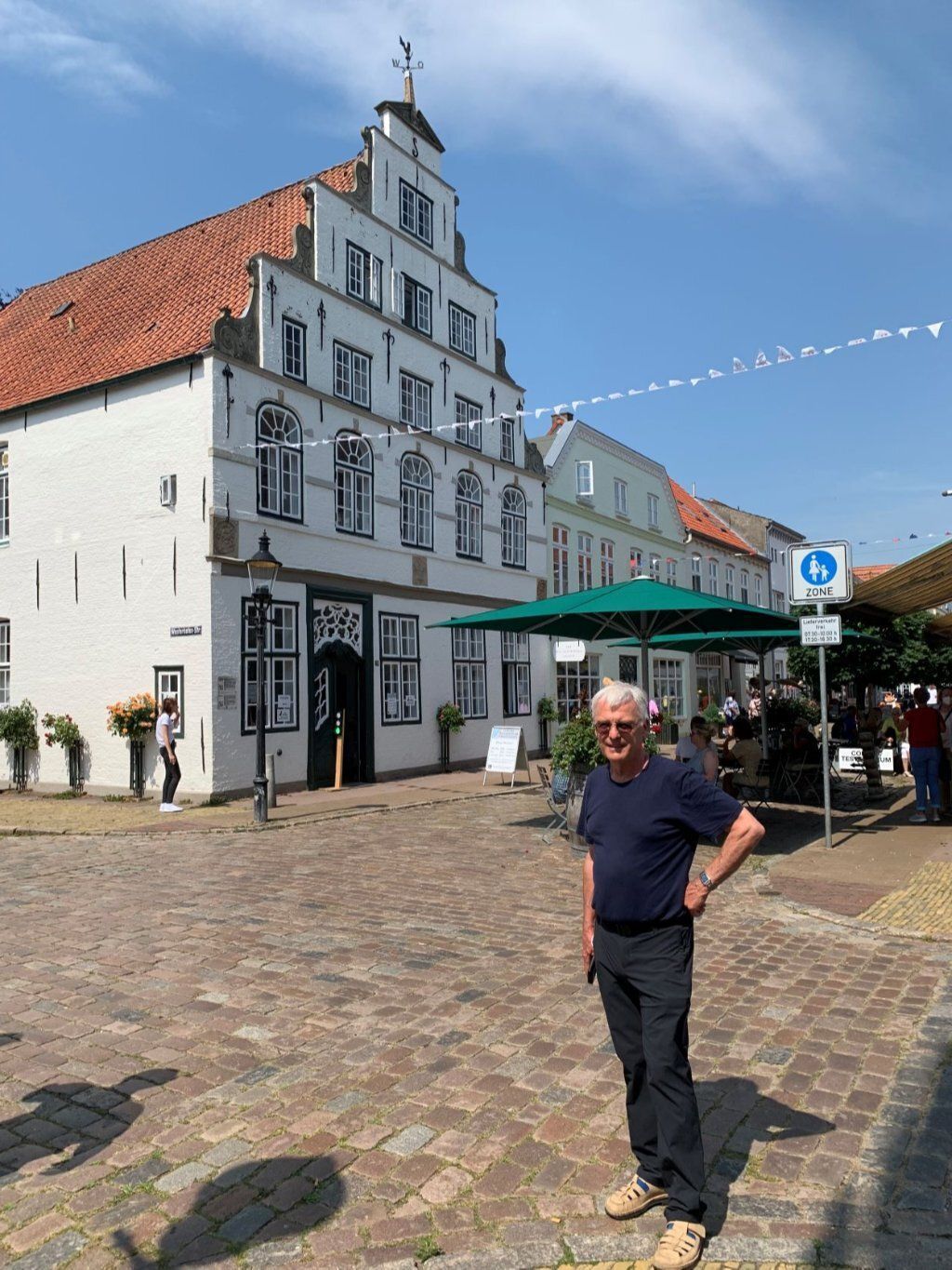 Mitten durch Schleswig Holstein geht der Nord-Ostsee-Kanal NOK. Den lernen wir von allen Seiten kennen. In Rendsburg gibt es eine Schwebefähre, die unter der hohen Bahnbrücke an einem Laufwerk aufgehängt ist. Seit einer Kollision mit einem Tanker ist sie schon länger ausser Betrieb. Das Föteli spricht für sich. Wir hören ein Nebelhorn und freuen uns auf ein grosses Kreuzfahrtschiff. Vermutlich ist es aber auf die andere Seite gefahren. Also machen wir uns auf den Weg zur Fussgängerunterführung. Über die seinerzeit längste Rolltreppe gelangt man hinunter und wieder hinauf. Unter dem Kanal ist es angenehm kühl. Bei Rüsterbergen beobachten wir den Lotsenwechsel. Sie sind Beratung der Kapitäne für bestimmte Abschnitte des Kanals. Zum Schluss fahren wir in Rendsburg mit dem Auto unter dem Kanal durch. Besuch beim Gutshof Emkendorf. Er ist unvorstellbar gross: 450ha eigenes Land und noch 300ha zugepachtetes Land. Jetziger Besitzer ist der CEO der Kieler Nachrichten.