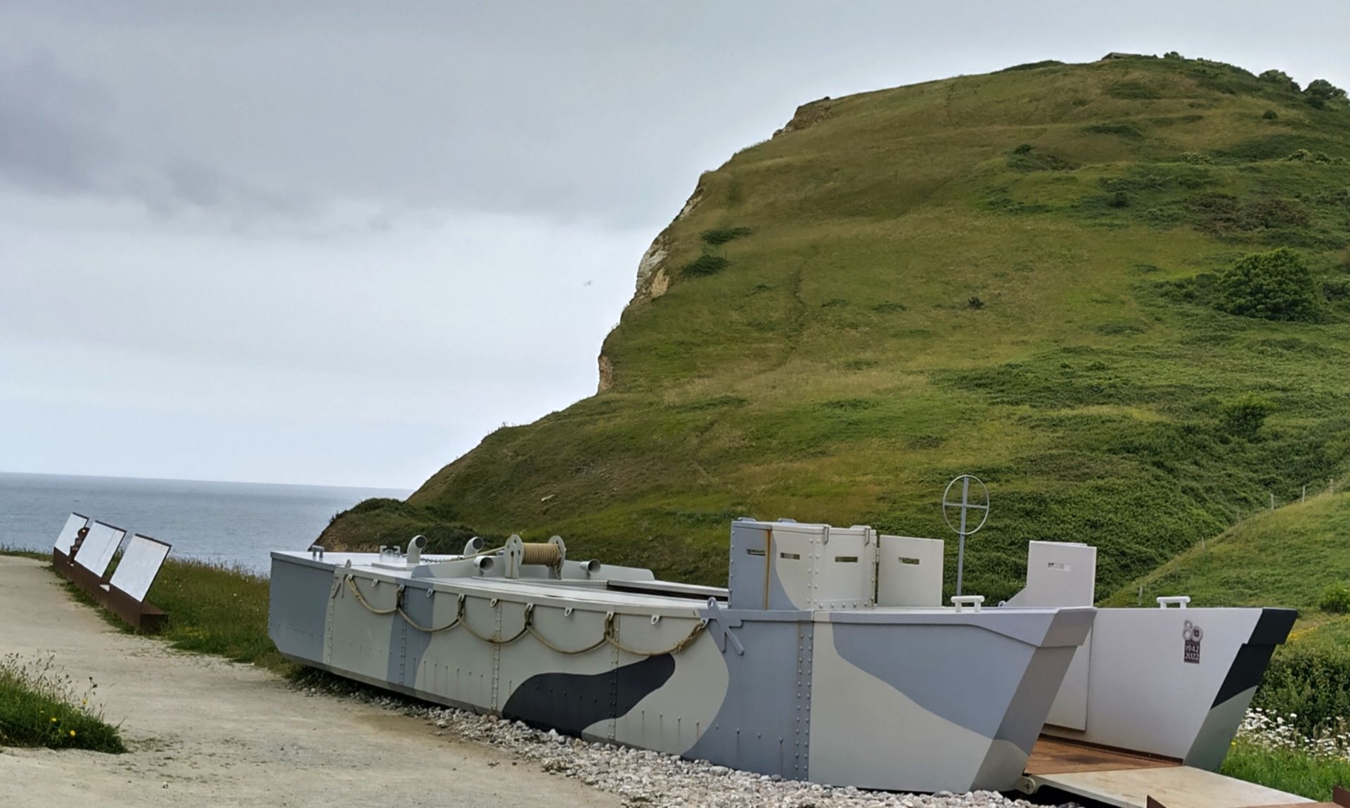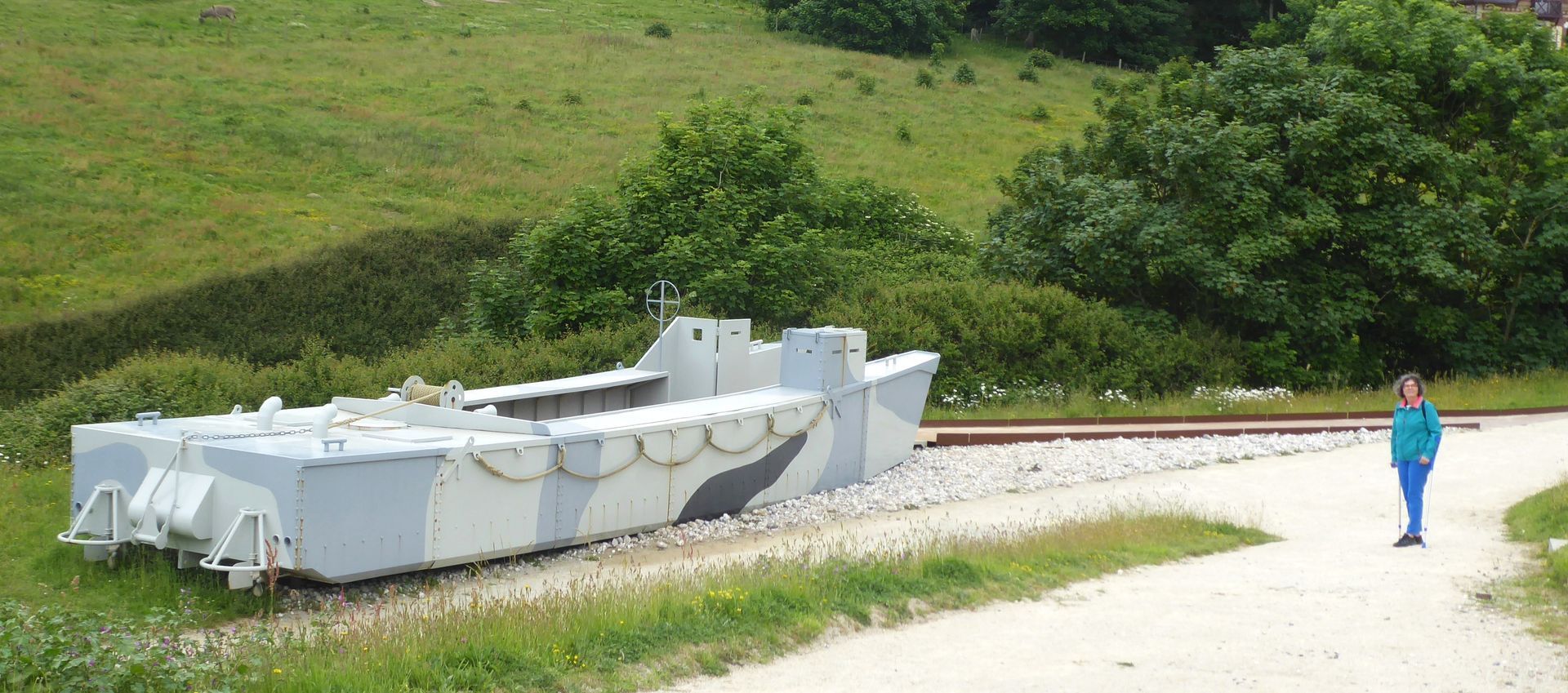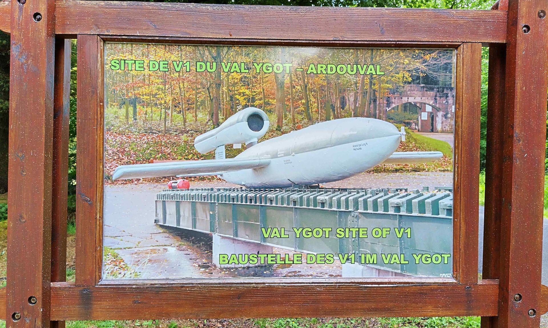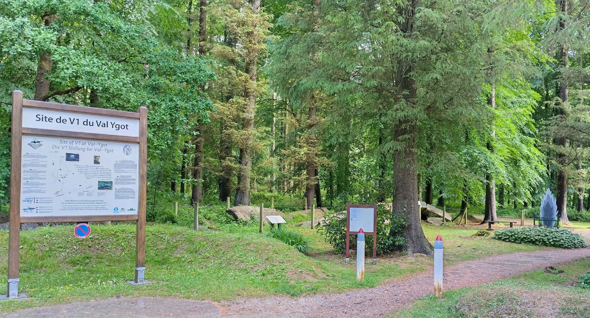 Auf dem Weg dahin zweigen wir ins Val Ygot ab, wo wir eine Abschussrampe für V1 Raketen sehen. Von denen gab es im WW2 total 117 in der Normadie. Eine solche Rakete flog in 25 Minuten nach London und flog am Schluss so langsam, dass sie oft abgefangen werden konnten - zum Glück. Diese Kriegsmaschinerie macht wirklich nachdenklich - alles für Zerstörung - auch von jungen Männern.