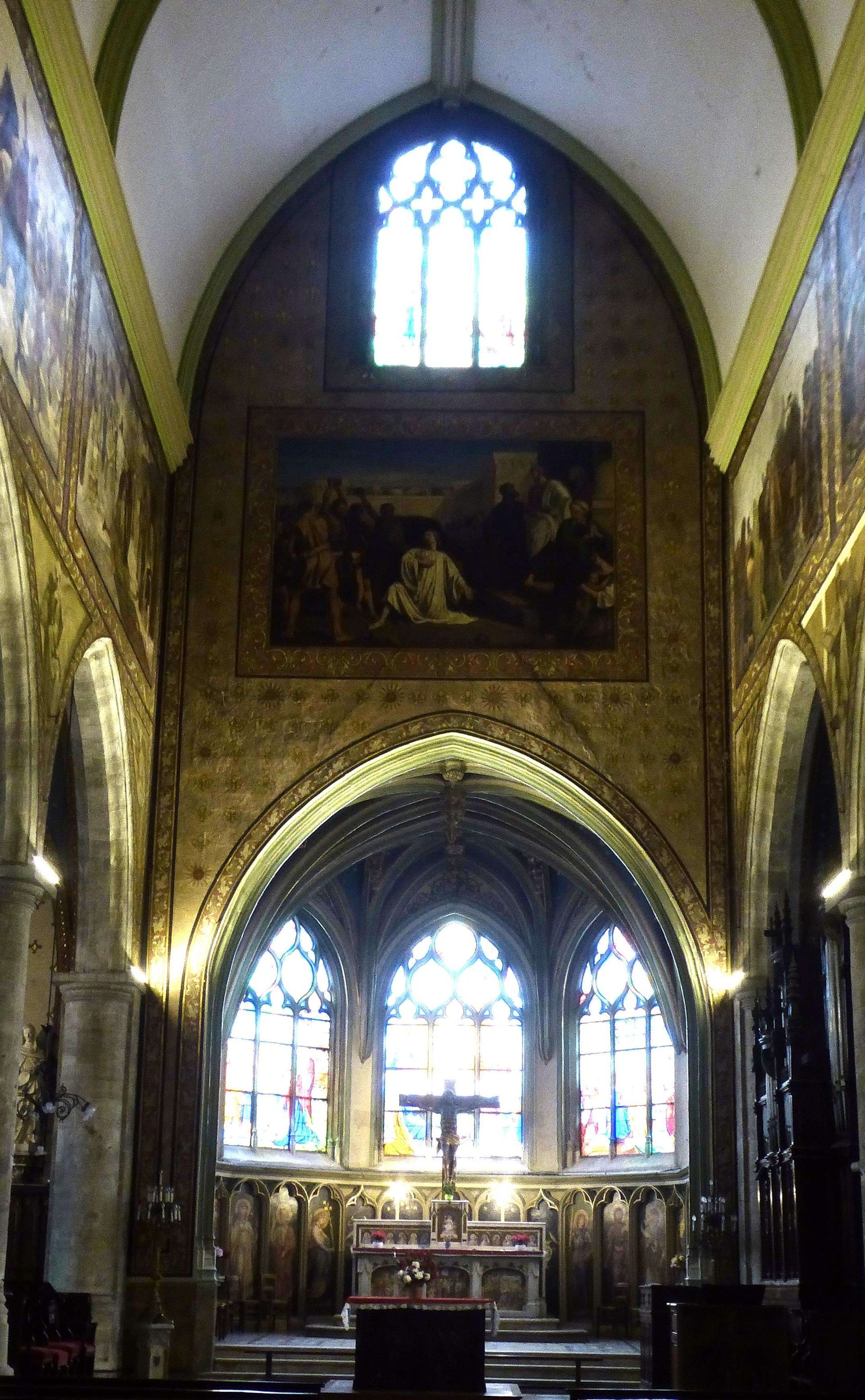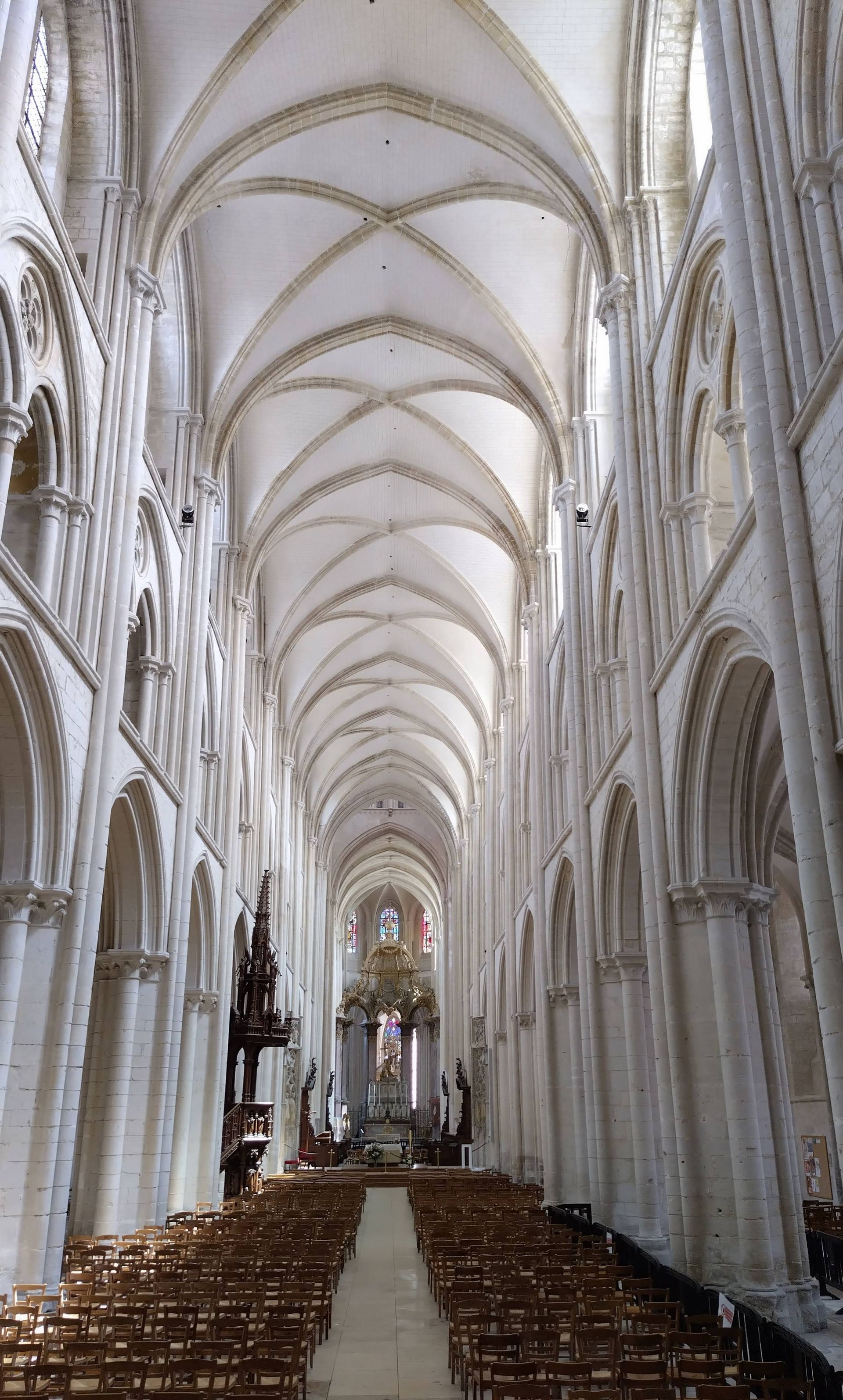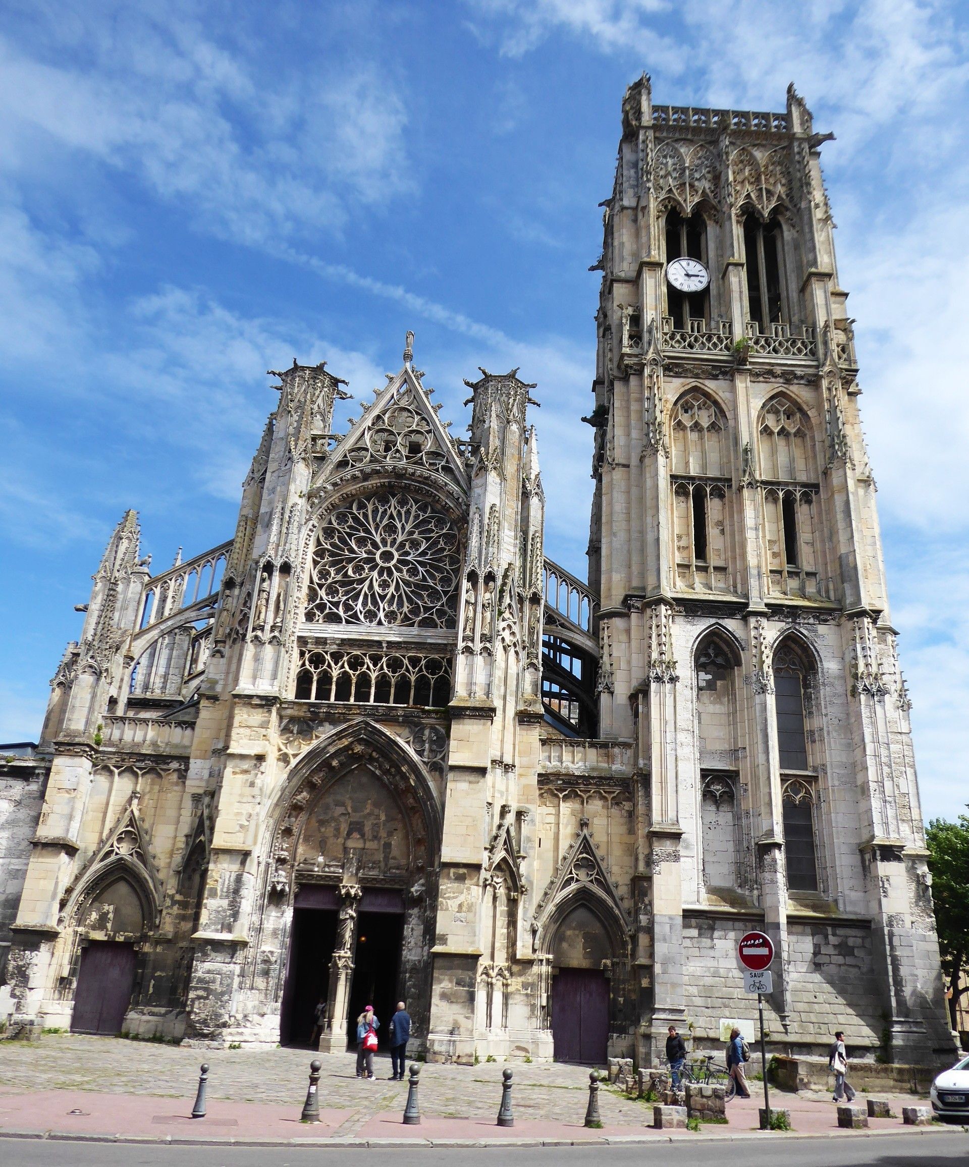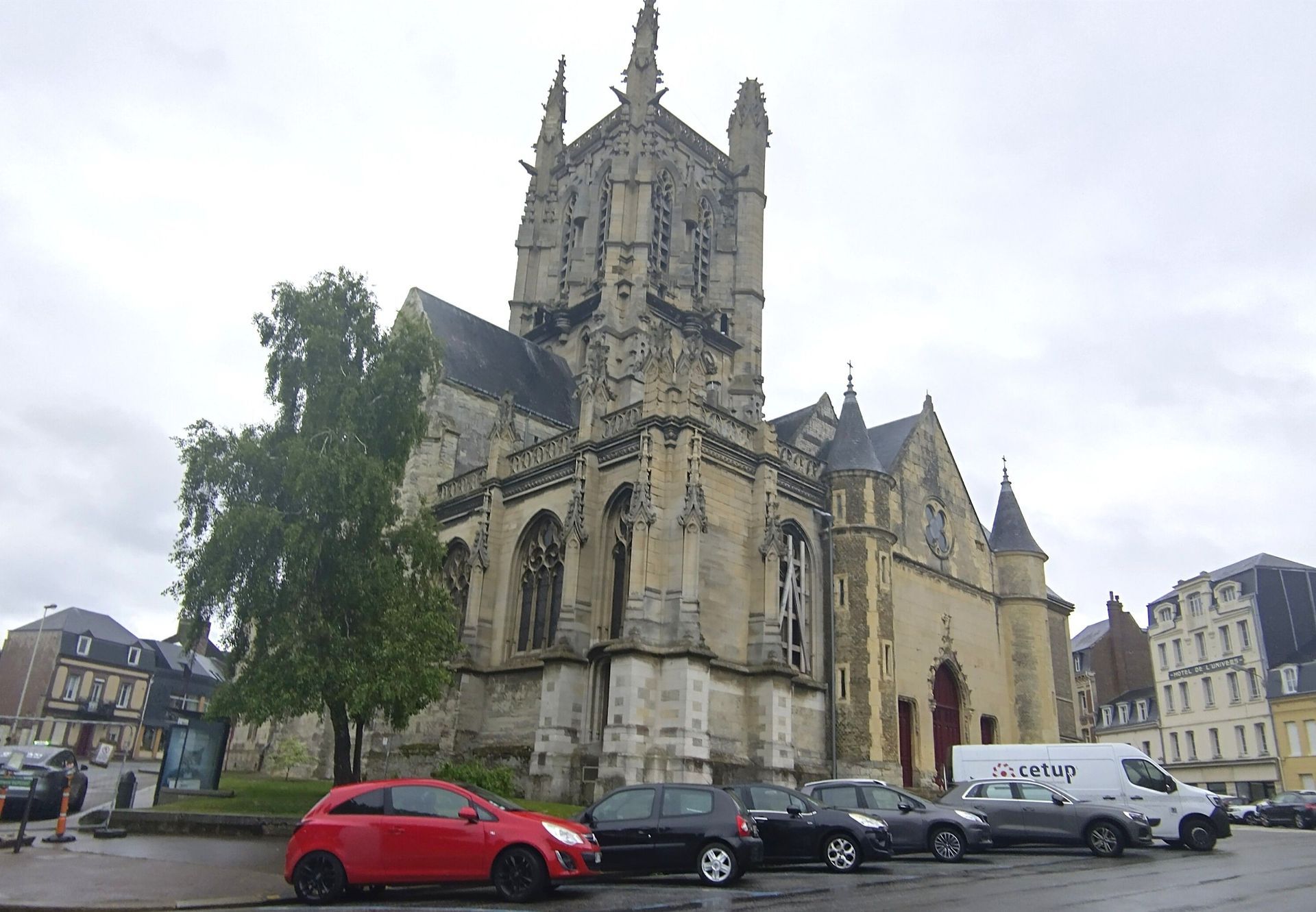 Von der Kirche St. Etienne, gut für einen Sitz am Trockenen, gehen wir weiter zur Abbey St. Trinité durch die einzige Fussgängerzone. Leider ist in der Kirche gerade eine Abschiedsfeier, sodass wir uns nur von der Länge und Höhe beeindrucken lassen können. Die Kirche war eine sehr bedeutende und wurde durch grosse Schenkungen der normannischen Herzöge so gross gebaut. Sie ist nämlich 127 m lang und nur 3 m kürzer als die Notre-Dame in Paris. Von Aussen bringen wir sie nicht aufs Bild.