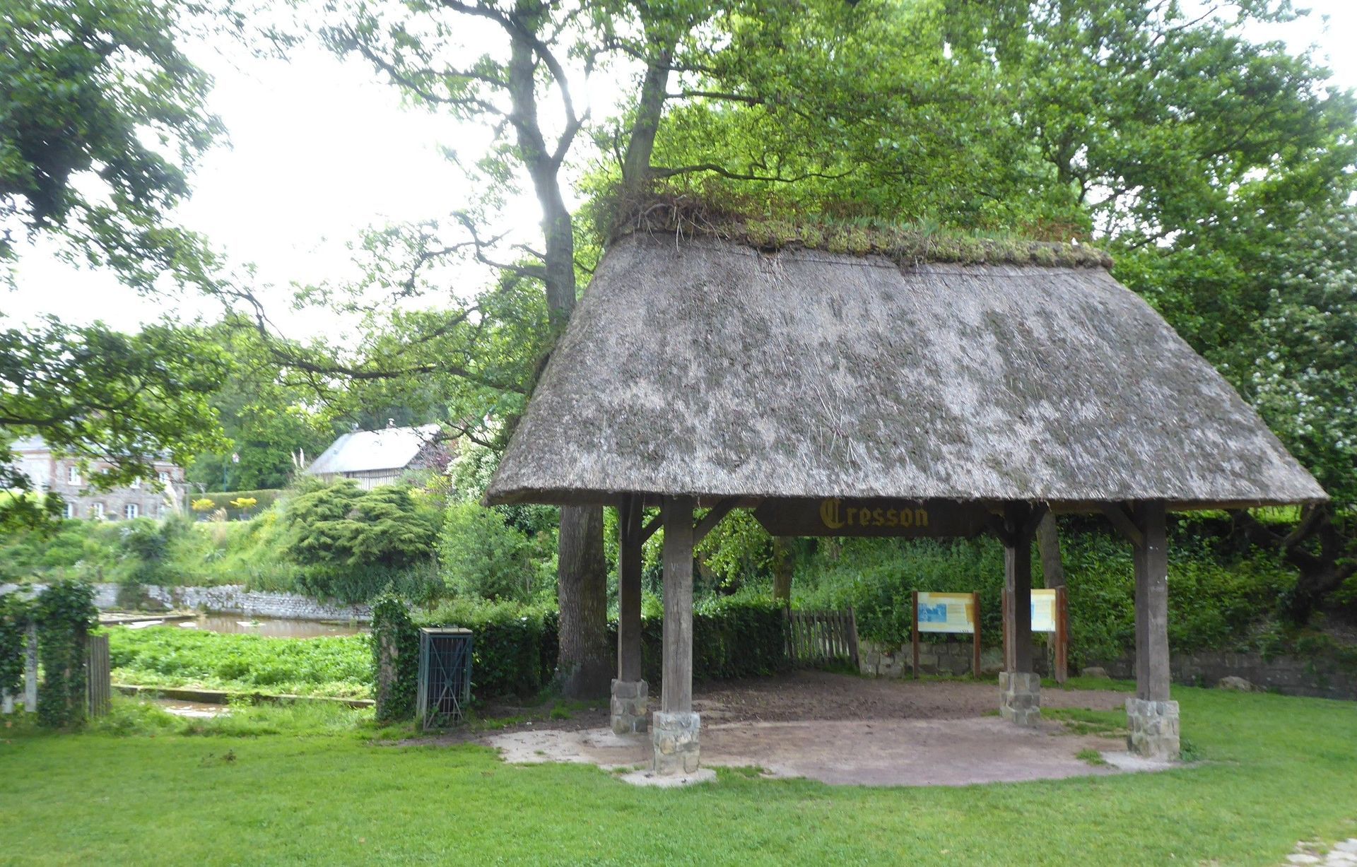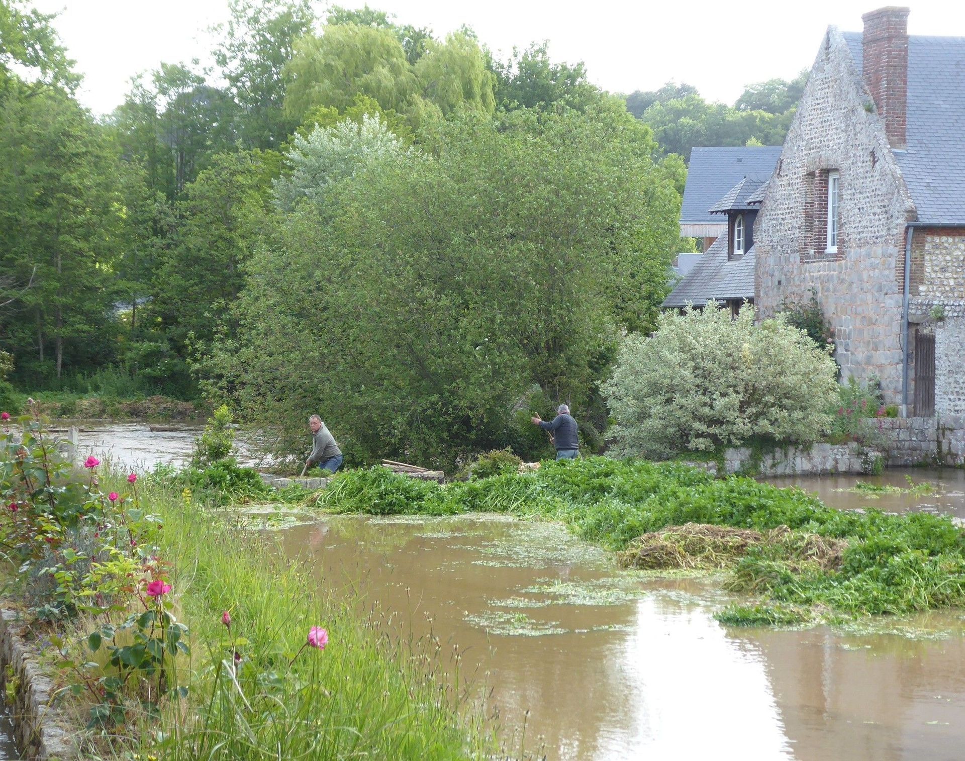 Die Veule ist auch der kürzeste Fluss von Frankreich, 1114 m Länge. Wir machen einen wunderschönen Morgenspaziergang bis zur Quelle. Dort wurde Brunnenkresse angebaut und verkauft. Jetzt wird sie gerade ausgerissen und abtransportiert.