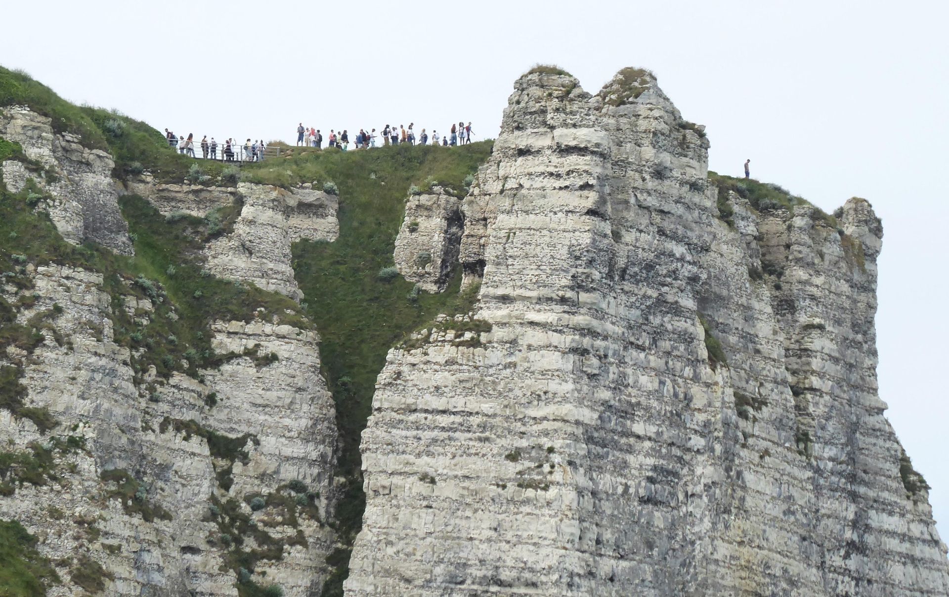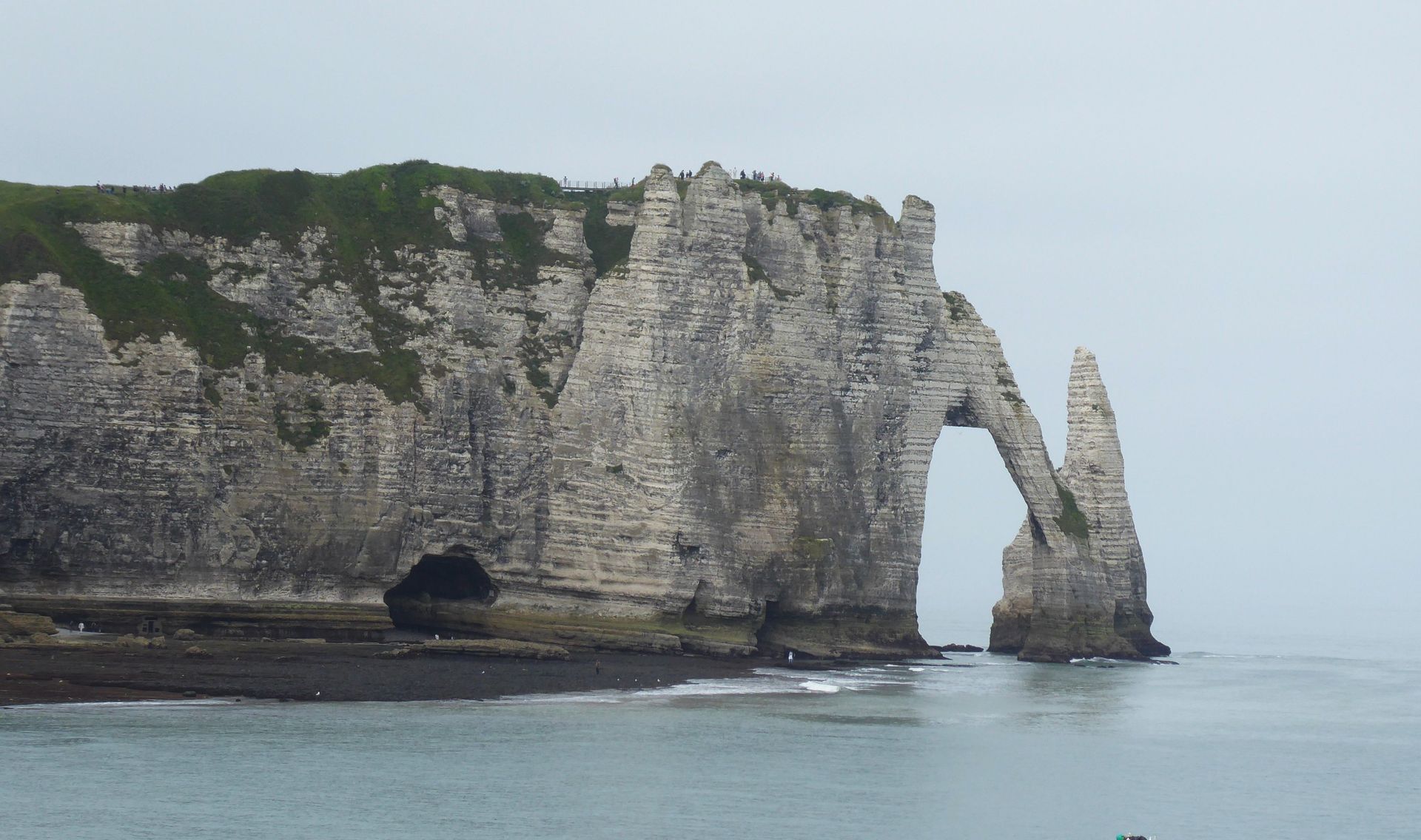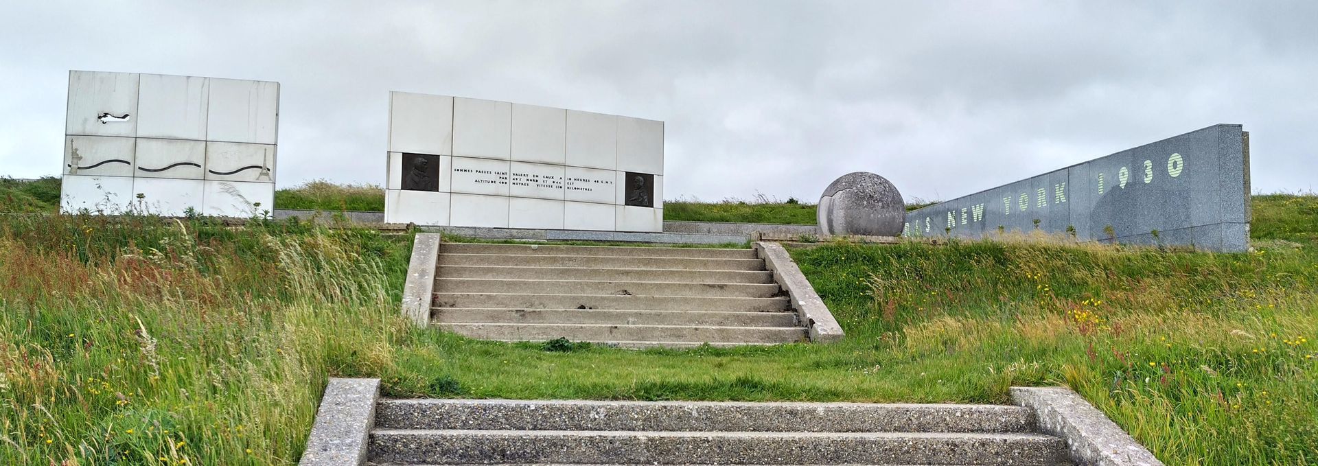 Etretat ist ein typischer und bekannter Touristenort. Dort waren schon viele Maler und Dichter und die Felsformation "Elefant" ist berühmt. Wir fahren mit dem öffentlichen Bus um 9 Uhr. Bei der Ankunft eine halbe Stunde später hat es schon viele Leute. Wir gehen zum Strand und steigen dann über viele Treppen auf die Falaise, ziemlich anstrengend. Das Museum für die beiden Atlantiküberquerer ist zu, aber es gibt ein Freiluftdenkmal, weil sie in Etretat zum letzten Mal gesehen wurden.