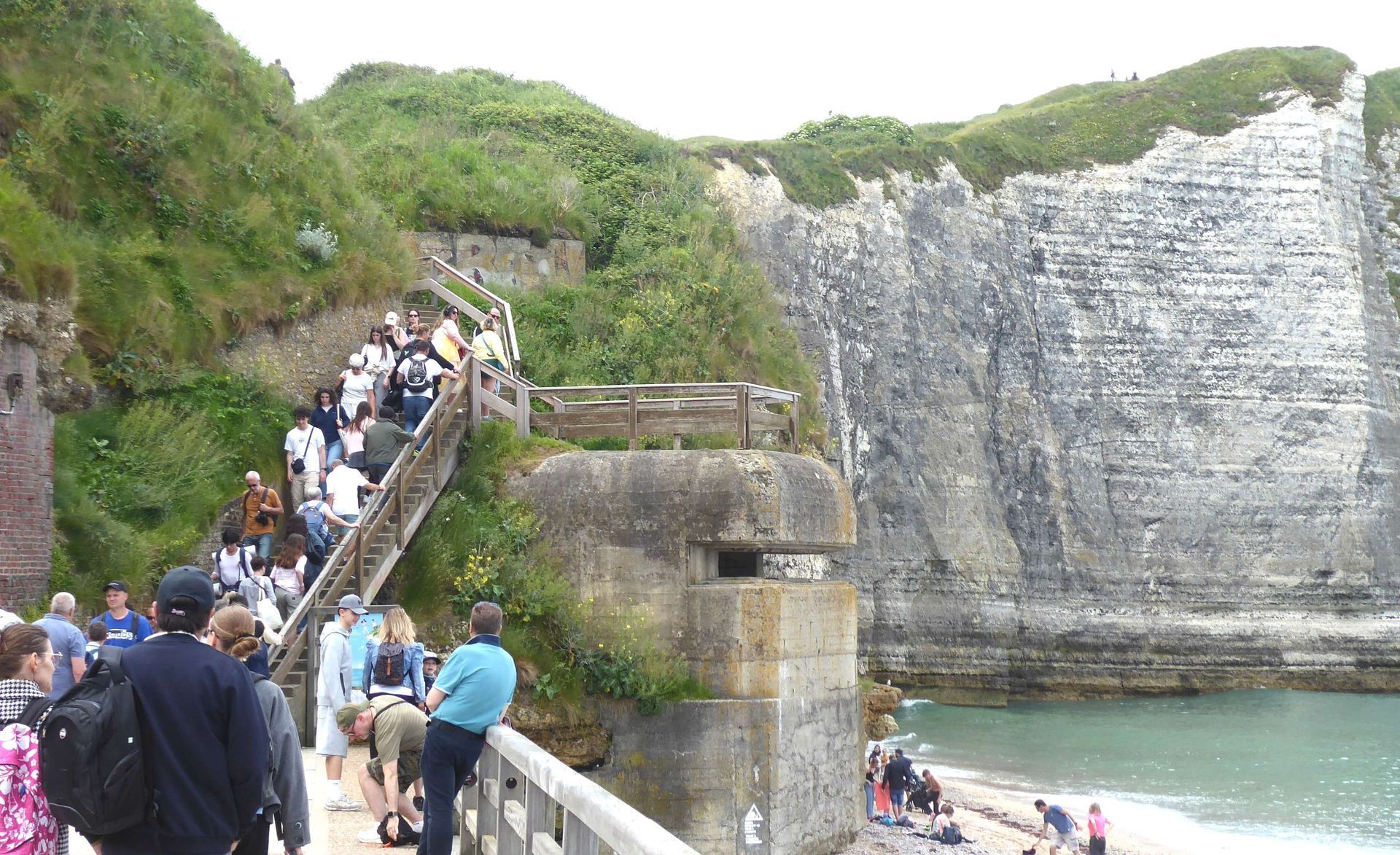 Als wir wieder an den Strand kommen, trauen wir unseren Augen nicht: OVERTOURISMUS. Die Leute stauen sich am Aufstieg zur anderen Falaise wie am Mt. Everest. Wir schlecken eine Glace und fahren viel früher zurück in die Stille und an die Sonne beim Bänz. Nun ja, wir waren ja gewarnt.