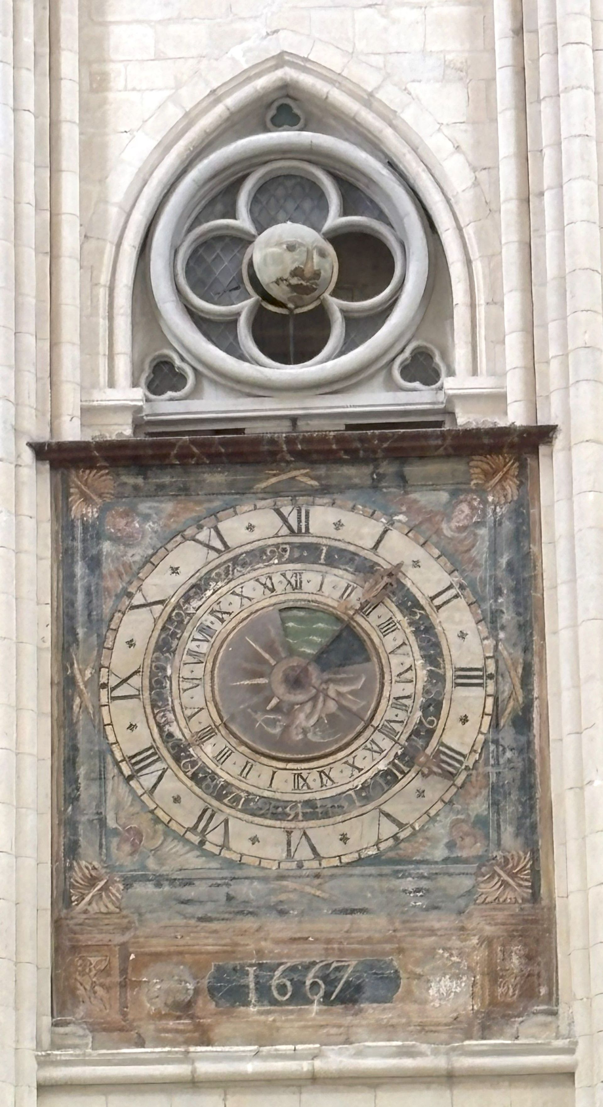 Die Abbey de la Trinité ist heute leer und wir nehmen uns Zeit auch die Uhr von 1667 zu bewundern, die als erste mit zwei Zeigern die Zeit anzeigt, sogar noch die Tiden und den Mondstand. Wir finden auch noch das Kästchen, in dem Blutstropfen von Jesus am Kreuz aufbewahrt sollen.