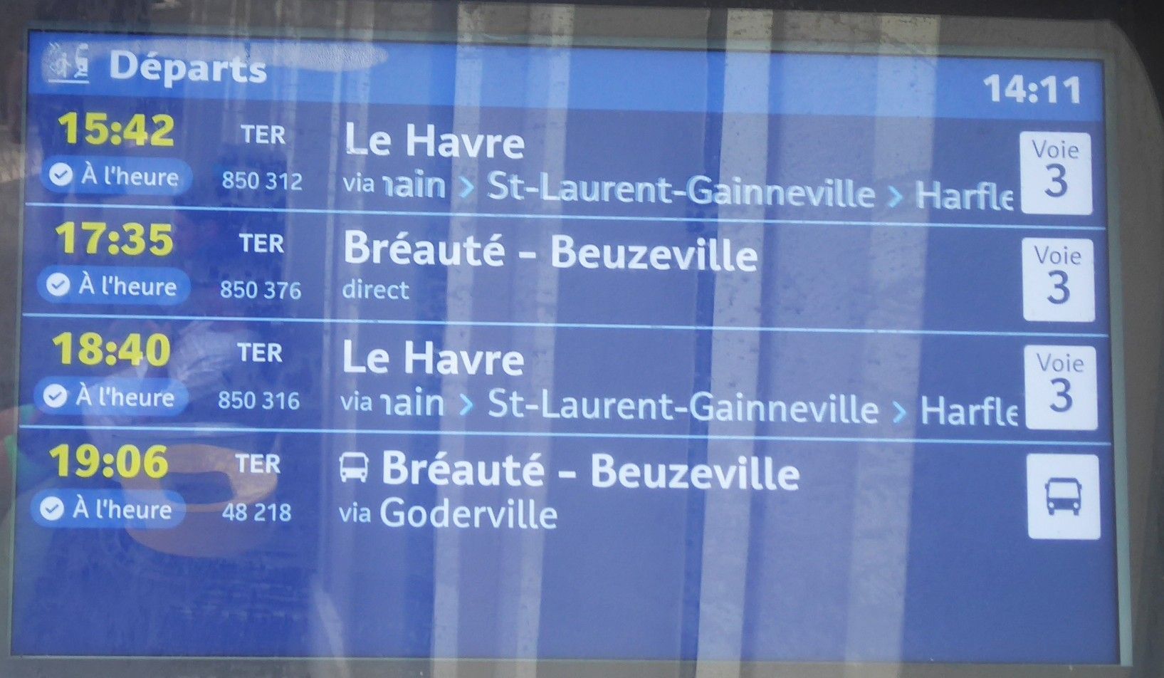 Der Bahnhof Fécamp hat genau ein Geleise, Nr.3. Es fahren sogar Züge nach Le Havre.