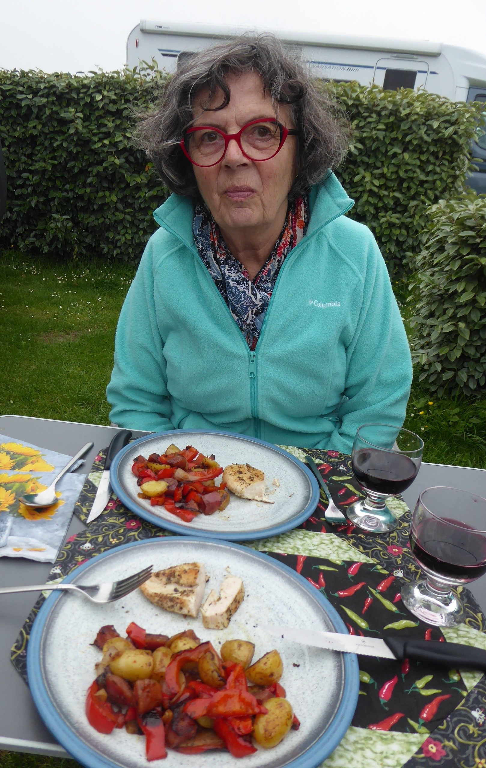Im Palais Bénédictine degustieren wir einen berühmten Likör. Wir finden ihn aber zu süss und nehmen keine Flasche mit. Nun meldet sich der Hunger, leider zur Unzeit, es ist erst 18 Uhr. Wir umrunden das Hafenbecken, brennen ein paar mal an, aber auf dem Heimweg kommen wir am La Plage vorbei. Das serviert uns Crevetten und Fleisch schon um 18.30 Uhr. Dann kämpfen wir uns durch den Wind auf den Campingplatz zurück.