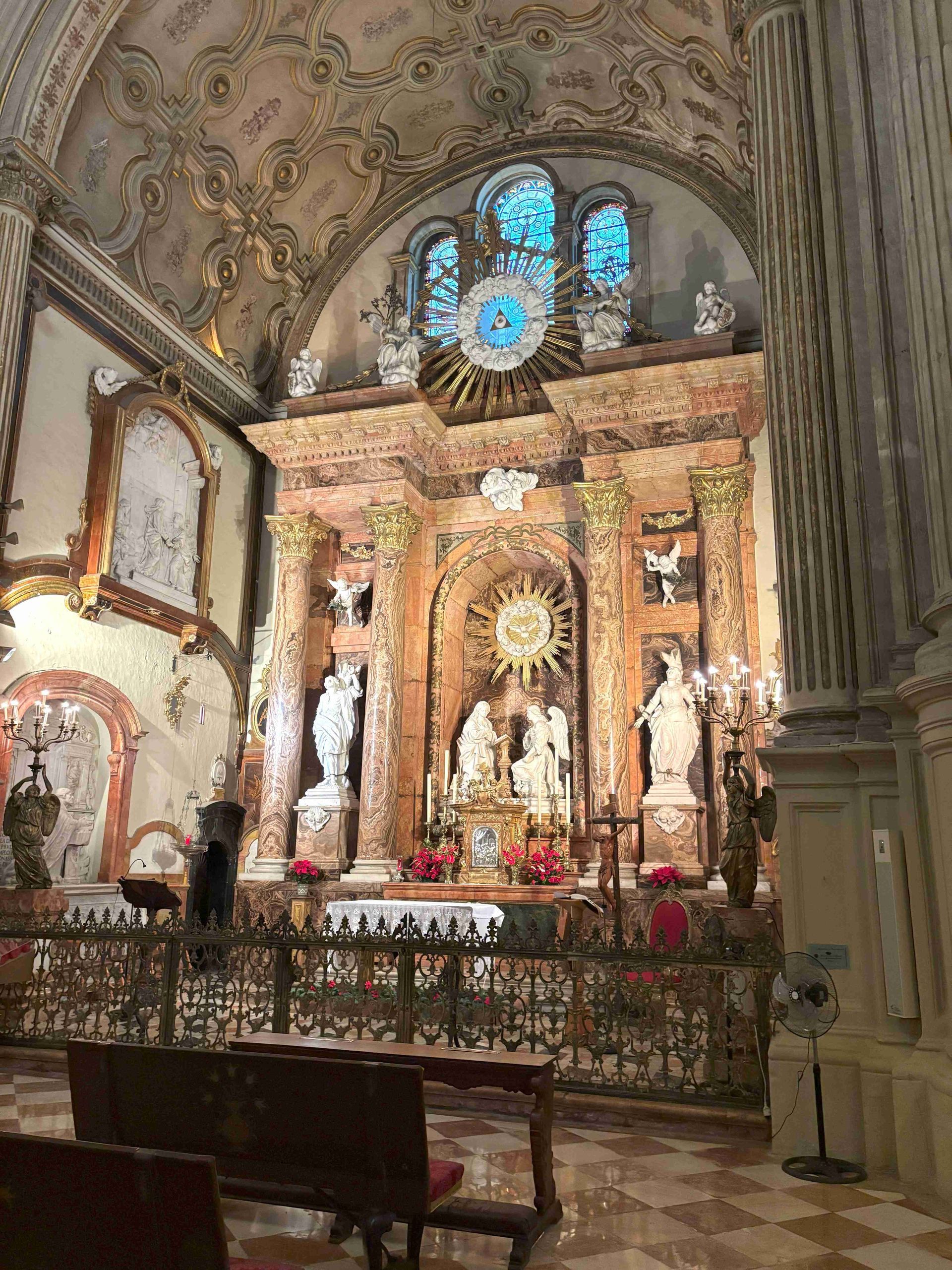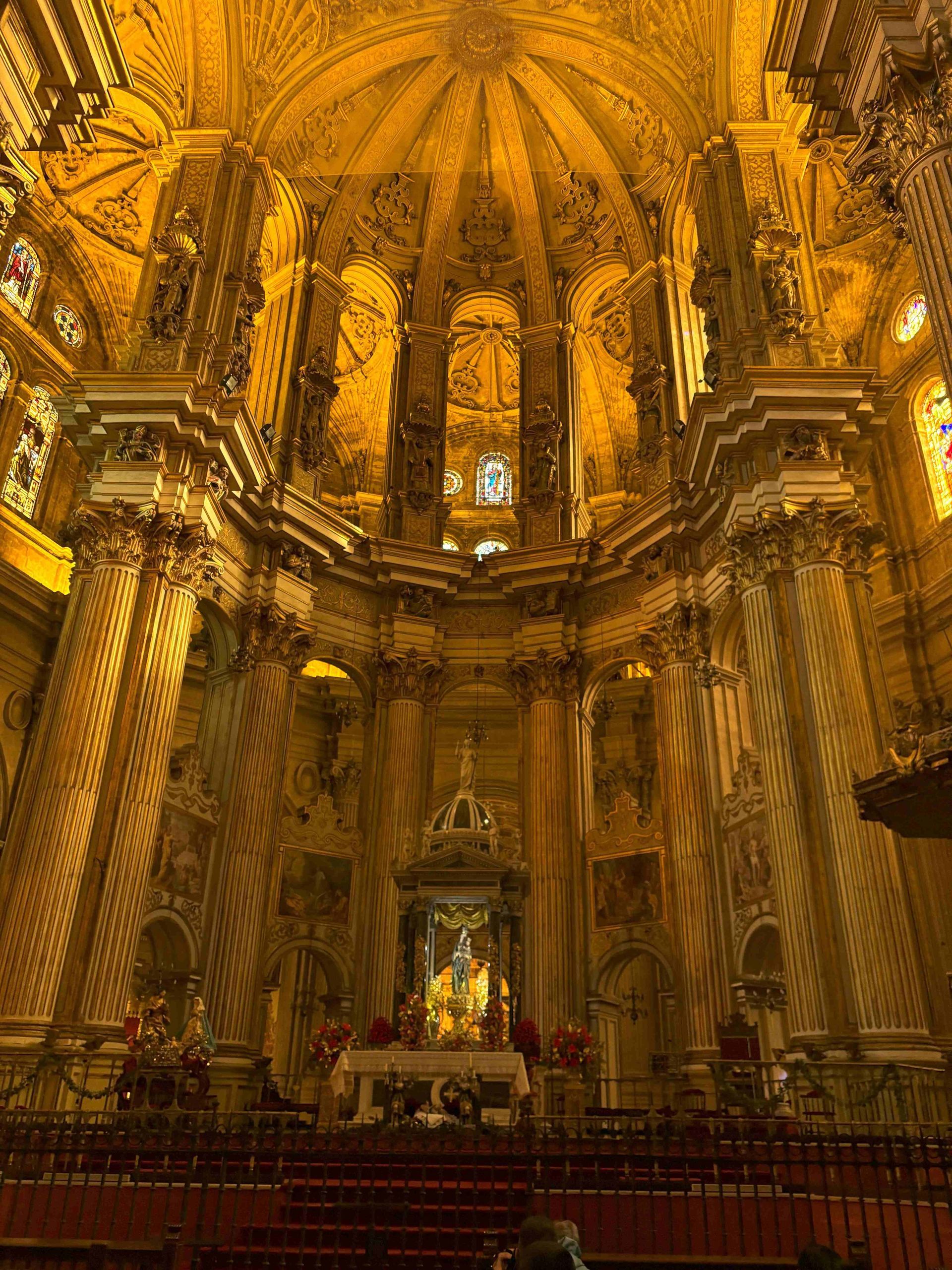 Am 27. Dezember fahren wir mit einem ALSA-Bus nach Malaga. Wir buchen eine Hopp on–Hopp off-Tour und steigen in der Nähe der Kathedrale aus. Diesmal zahlen wir die 9 Euro. Ein Riesenbau mit schönem Chorgestühl. Es sind Schnitzereien von Heiligen und biblischen Figuren. Sonst sind wir schon fast übersättigt und ich finde die Themen und die Bilder wiederholen sich endlos. Also sind wir bald wieder draussen.