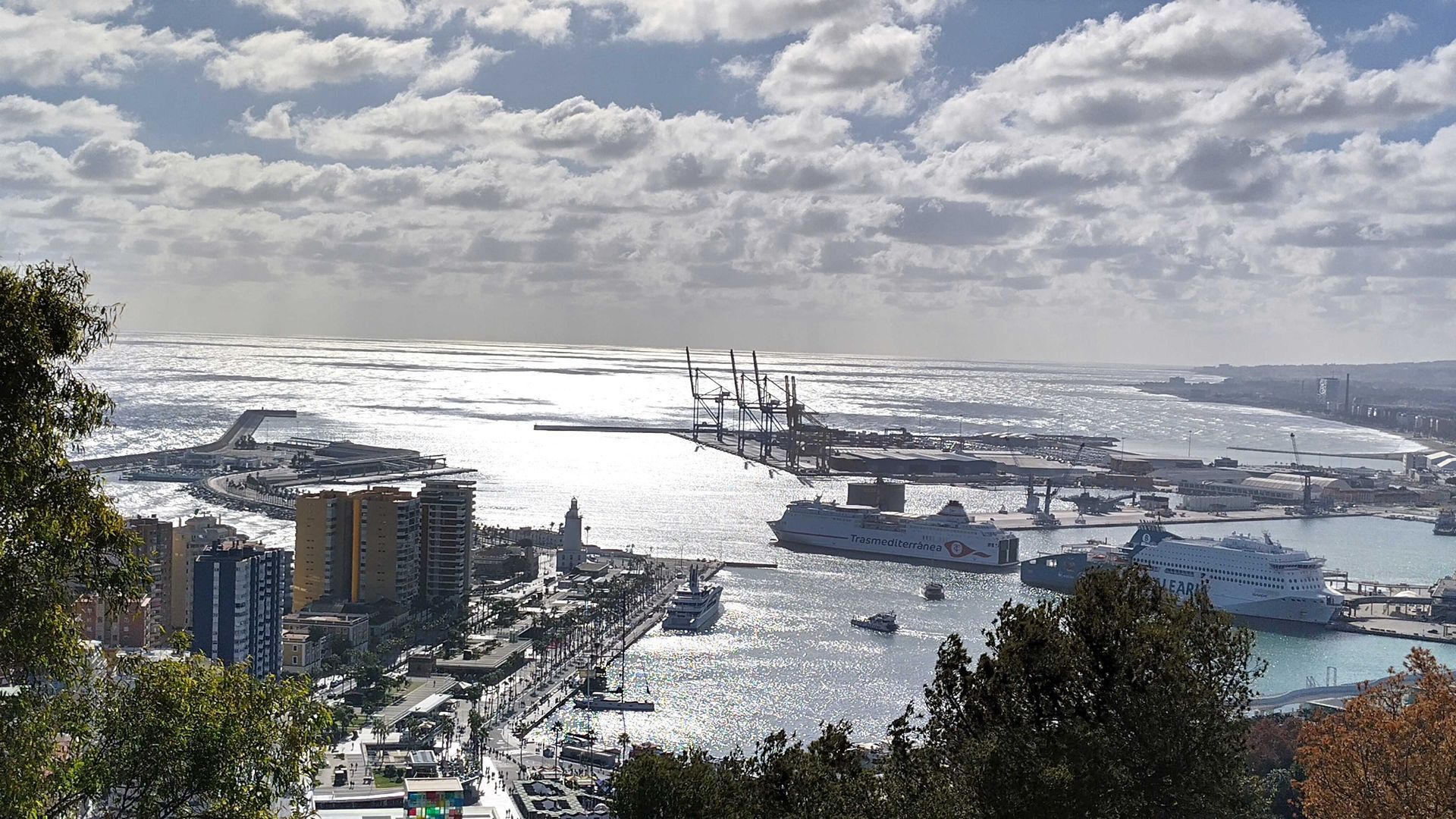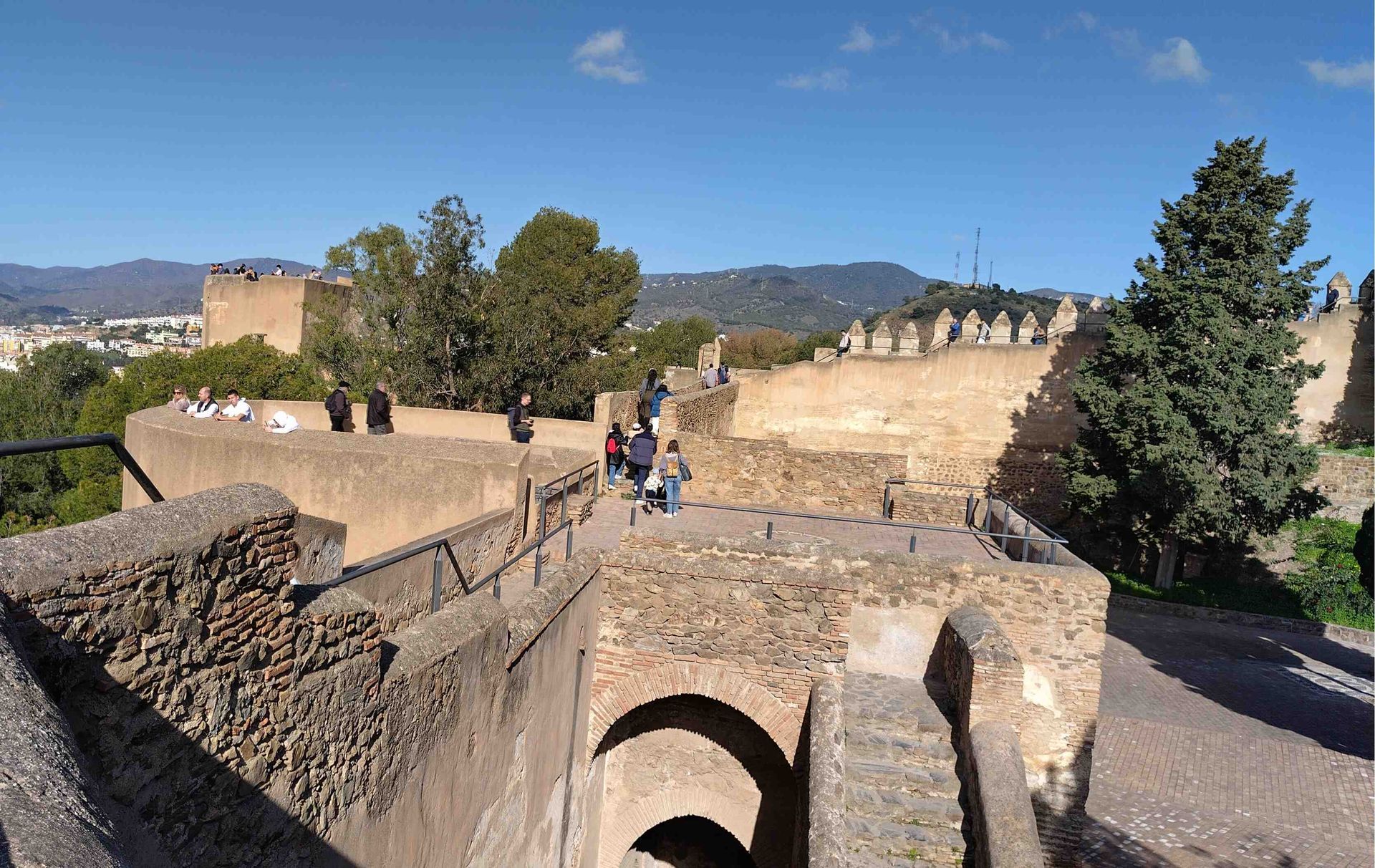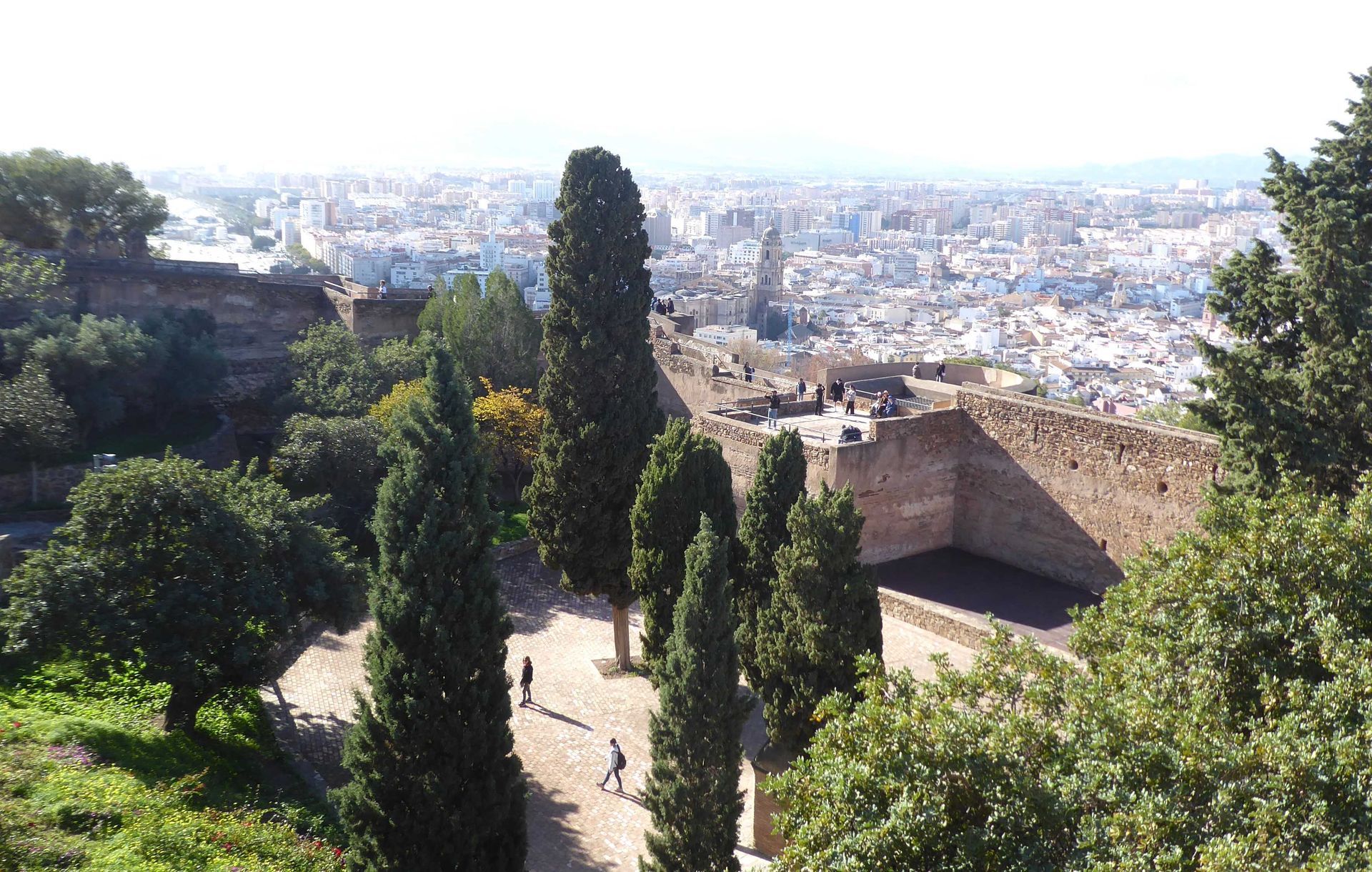 Weiter fahren wir auf die Festung Gibralfaro, eine super Aussicht. Allerdings ist das Meer silbrig und nicht blau wie im Führer beschrieben. Wir umrunden die Festungsmauer und fotografieren die Aussicht.