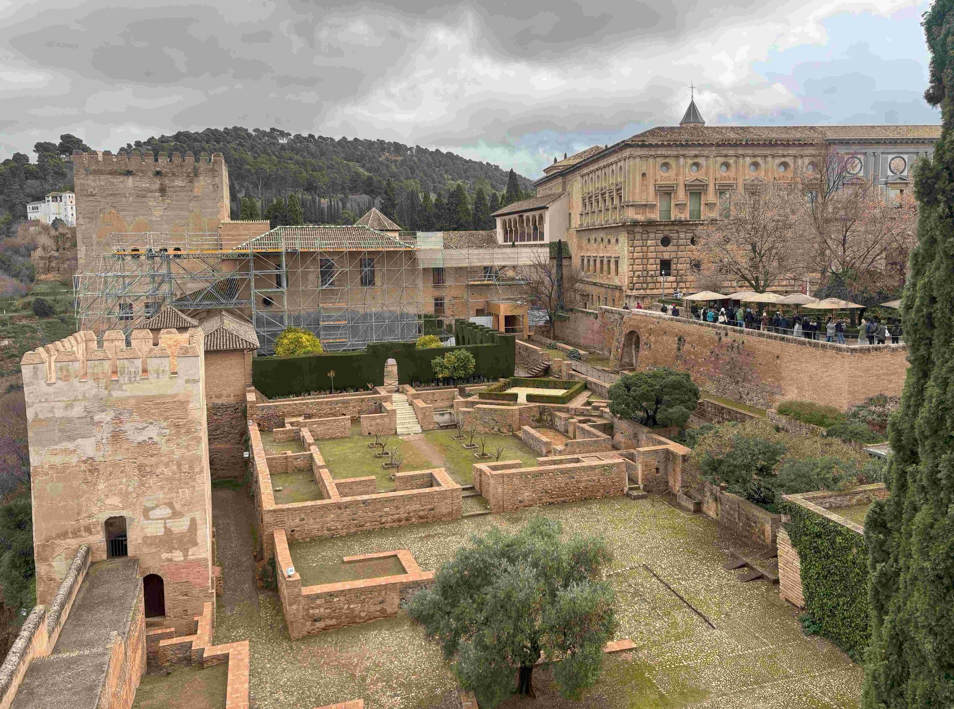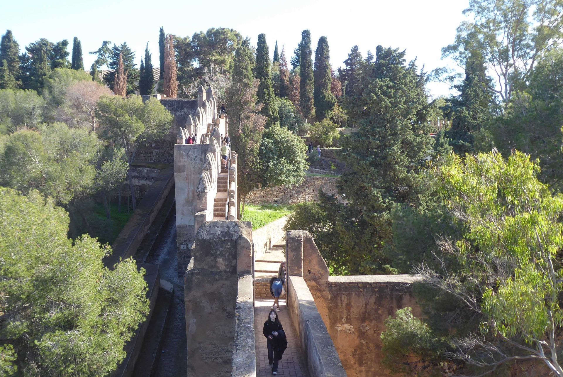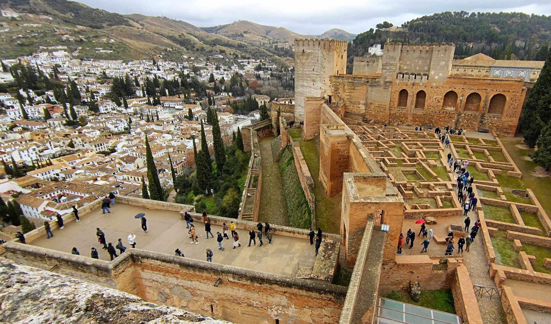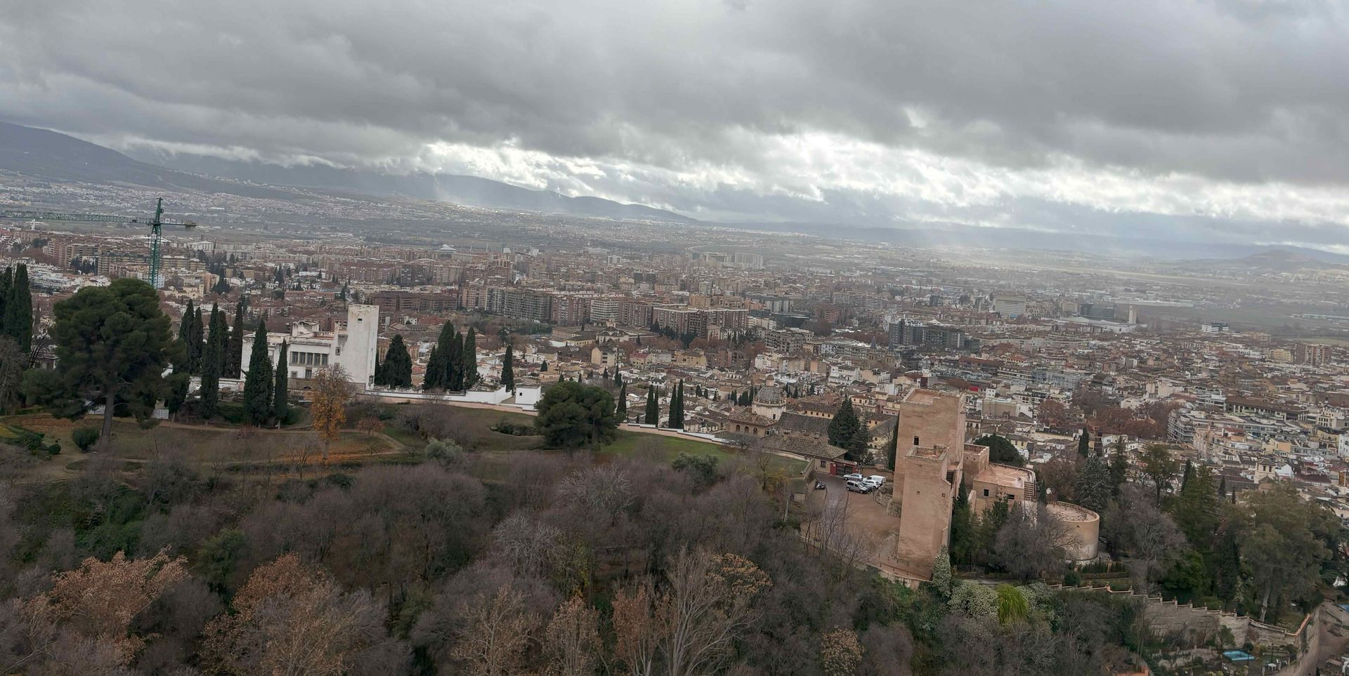 Nach den Palästen steigen wir auf der Festung herum. Das Wetter ist windig und für uns "unspanisch" kalt, die Aussichten und das Wolkenspiel sind spannend.
