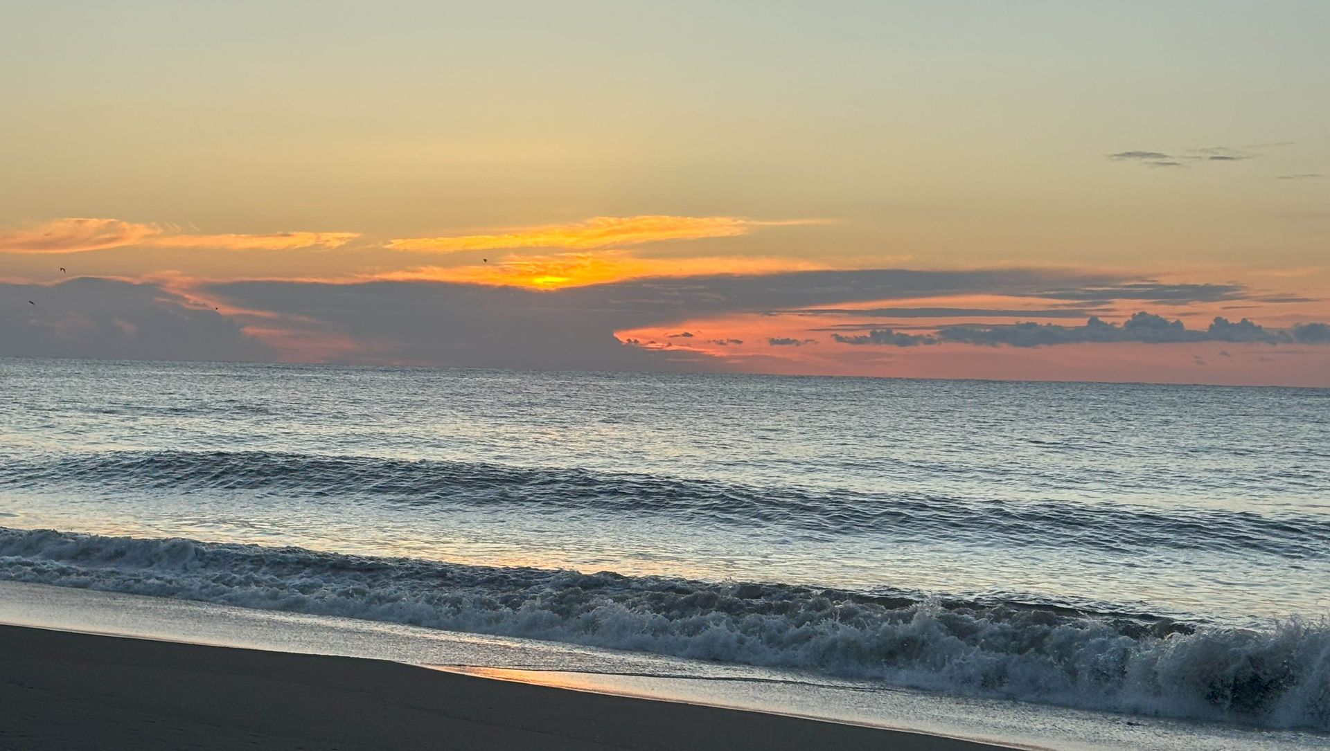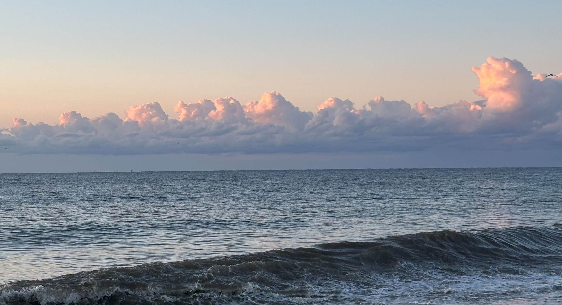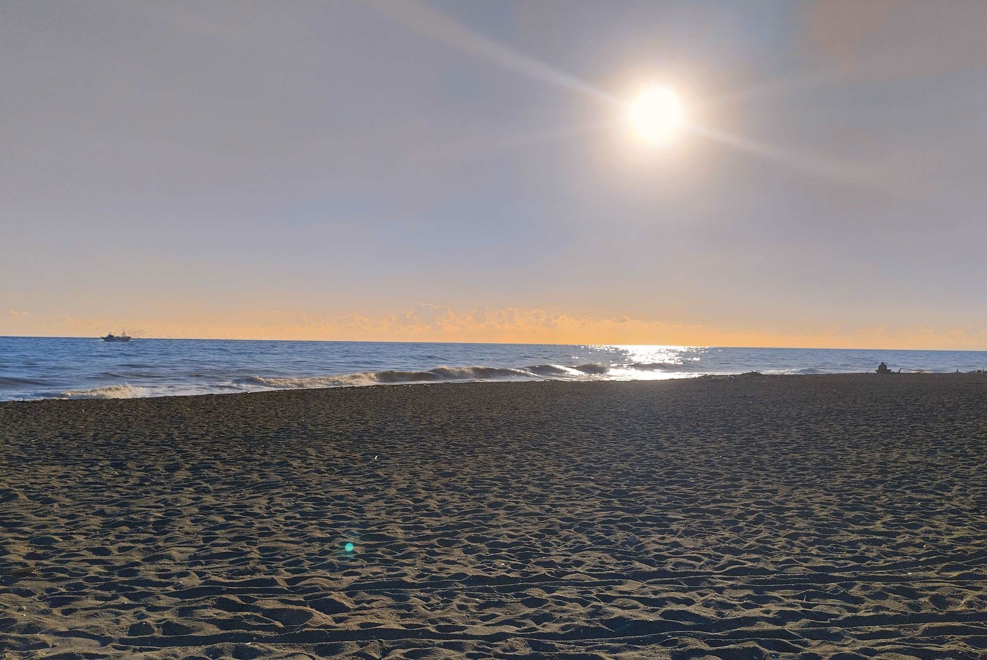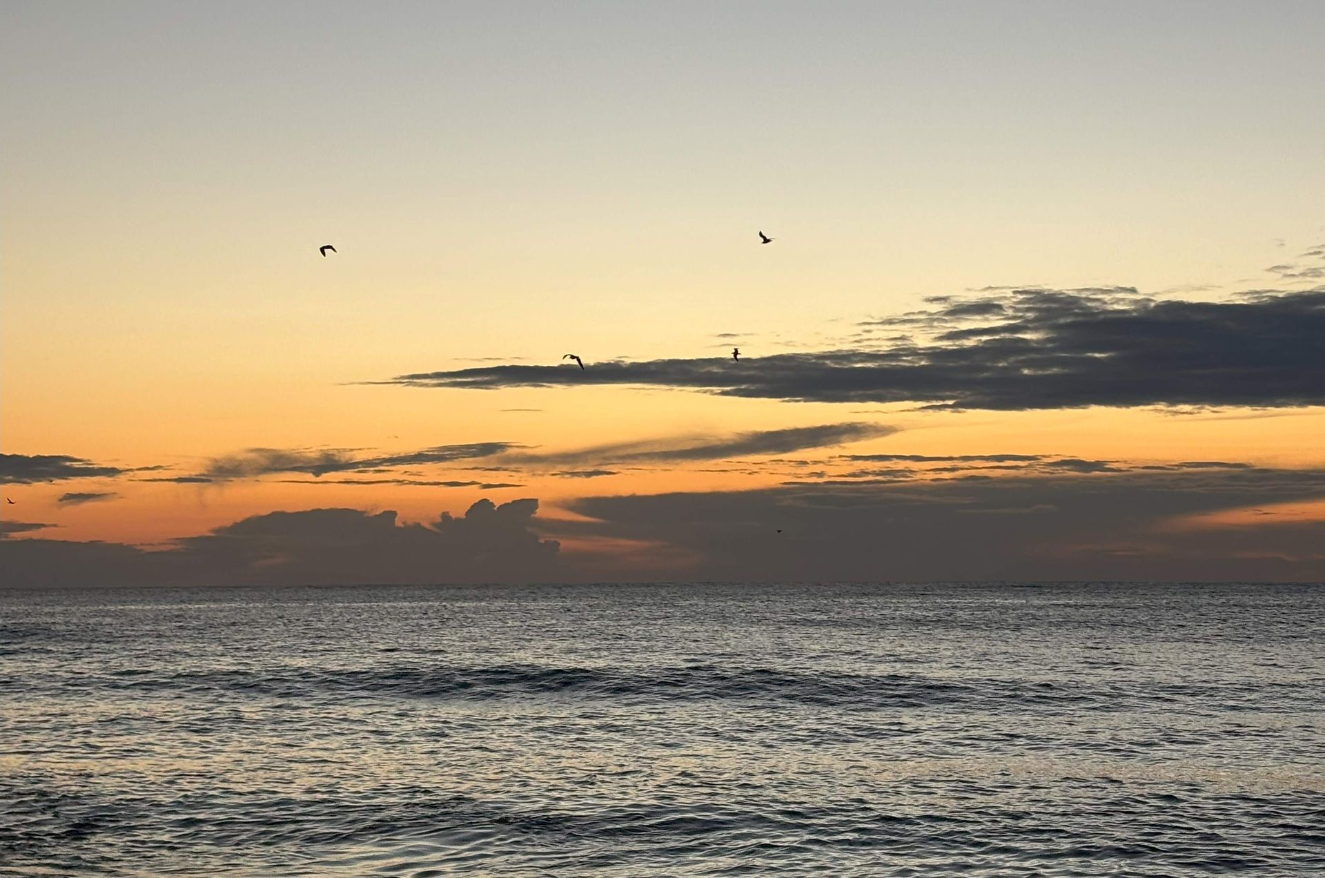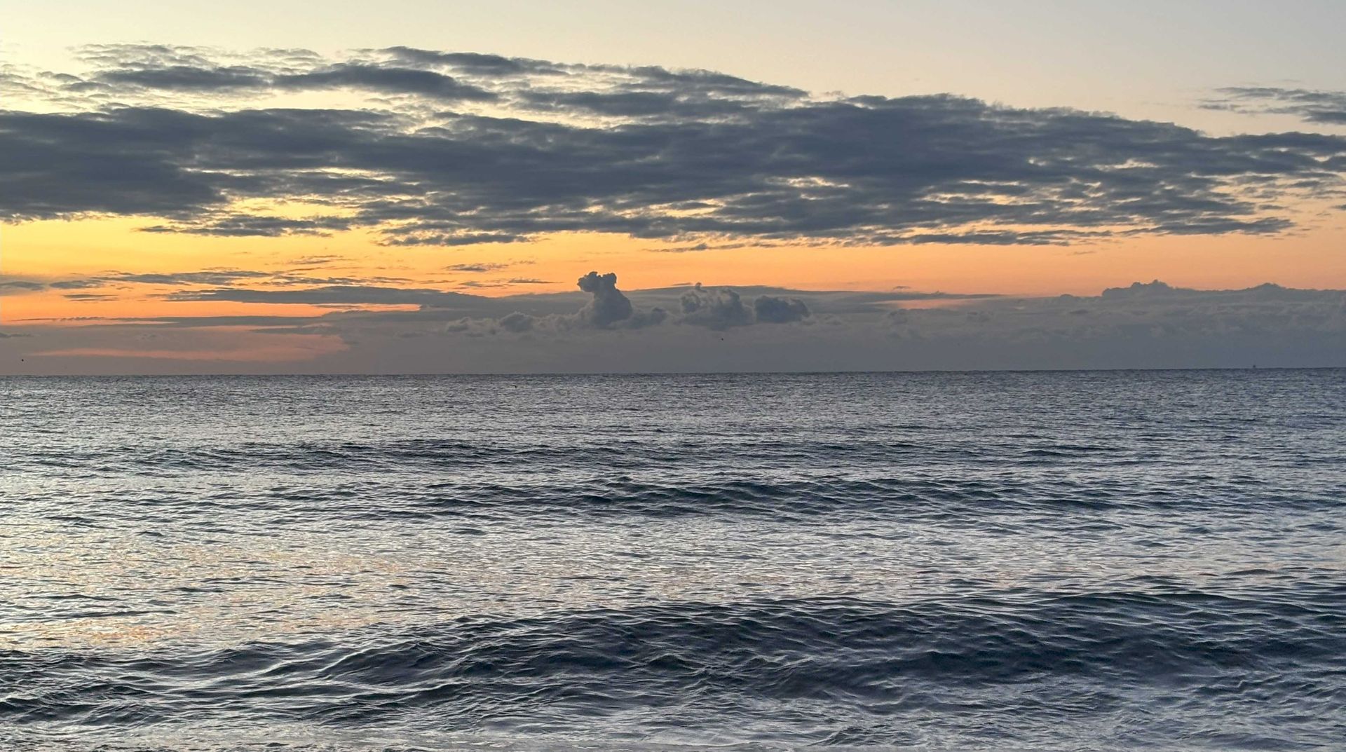 Am ersten Morgen im neuen Jahr möchte ich die Sonne am Meer begrüssen. Ihr Aufgang ist um 8.30 Uhr. Allerdings lässt sie sich Zeit – es schweben noch einige Wolken über dem Wasser.