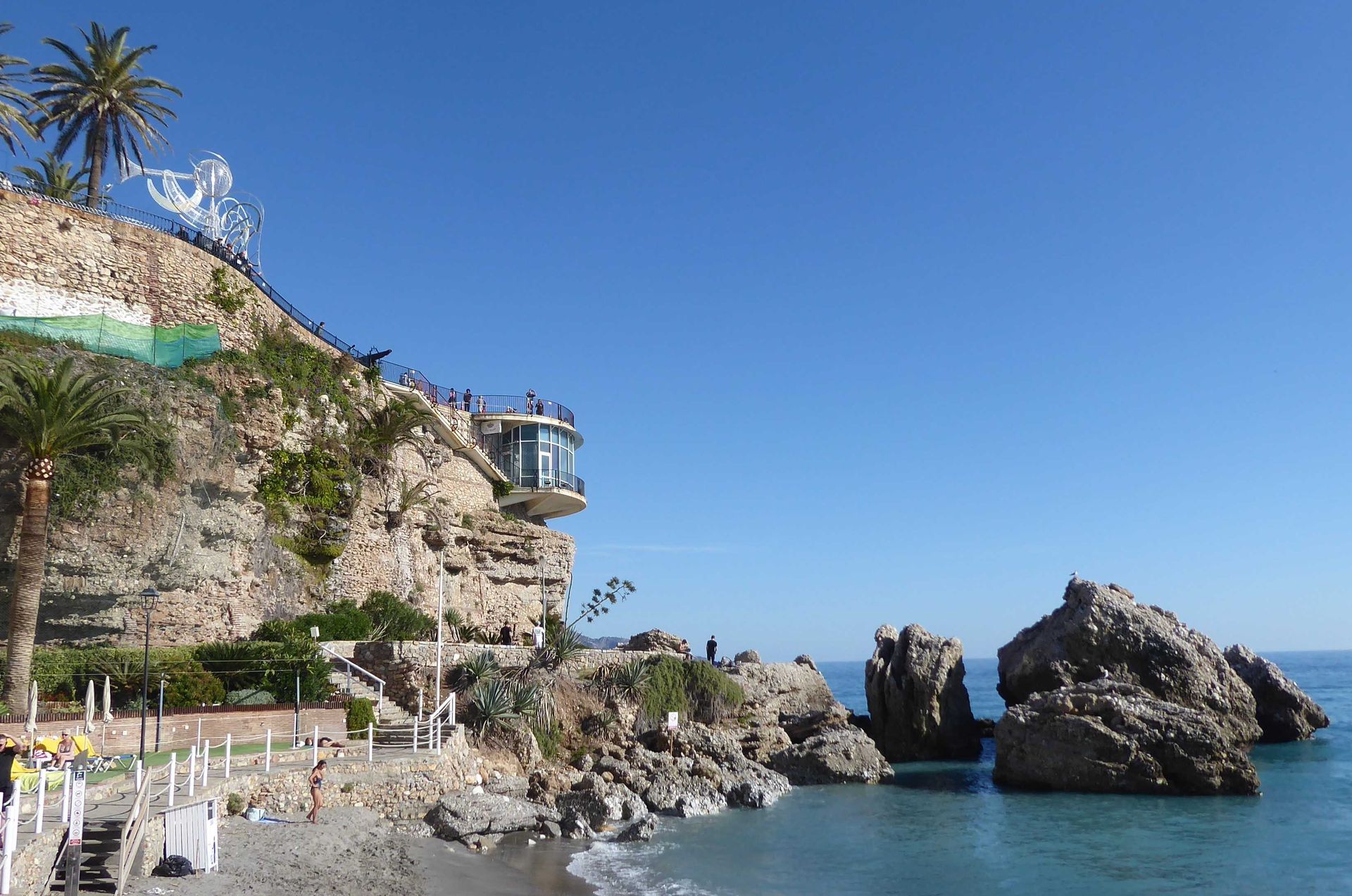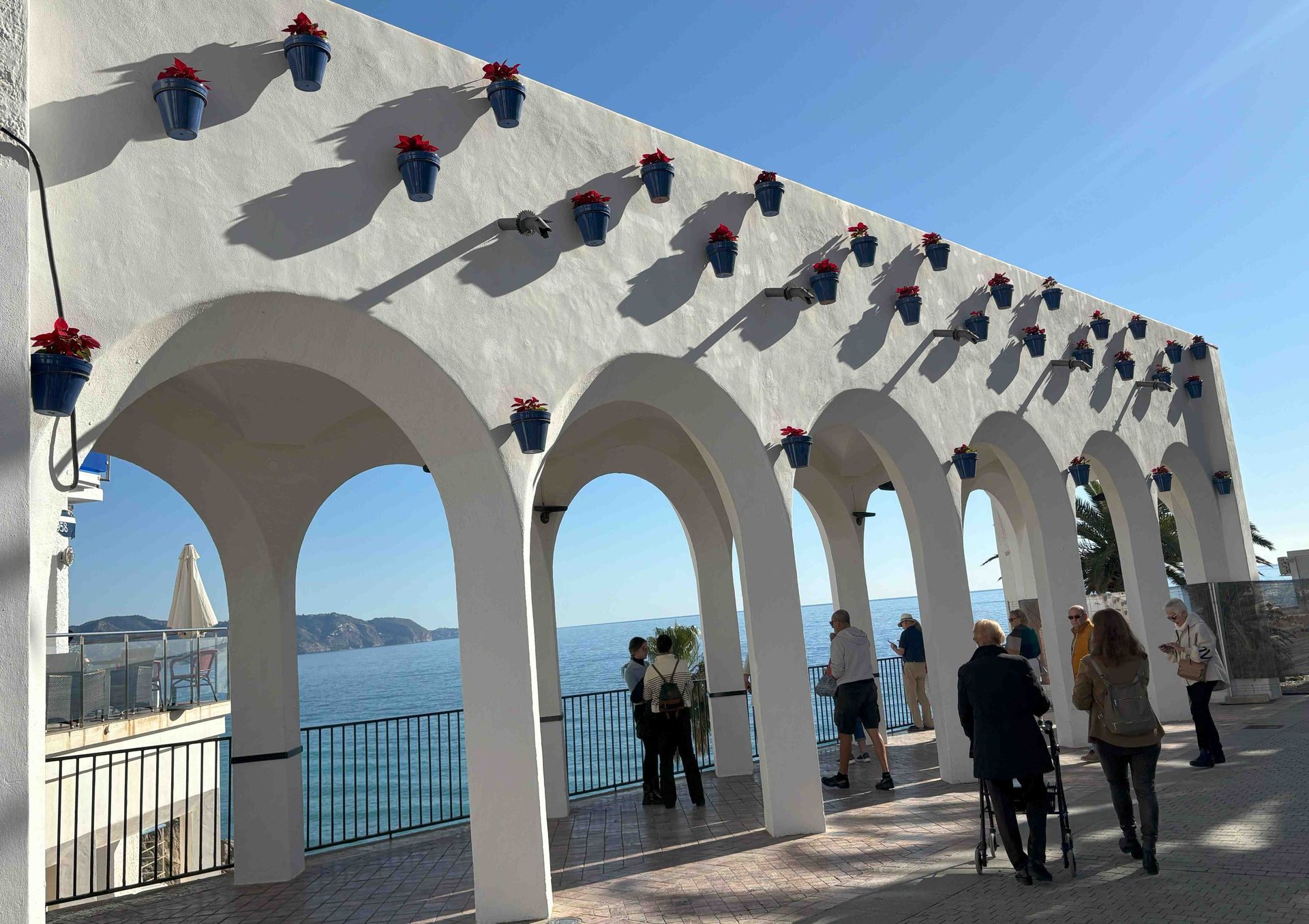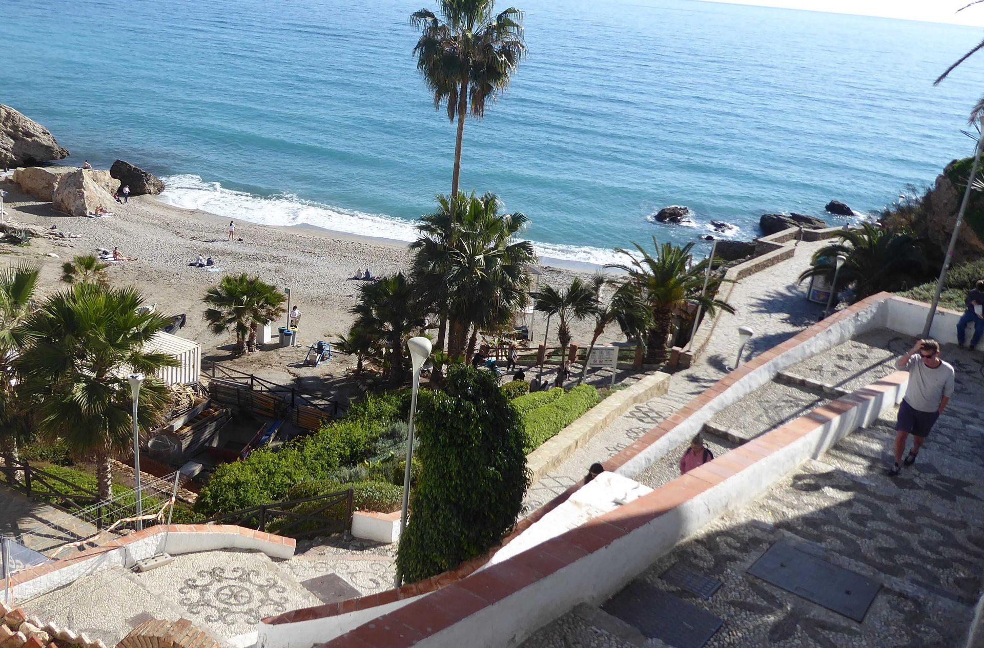 Auf dem Weg zu unserer nächsten Station, Granada zum Zweiten, machen wir Halt in Nerja. Ganz nahe des Ortskerns gibt es einen grossen Parkplatz auf dem wir den Bänz abstellen und zum Balcon de Europa spazieren. Dort spielt ein Gitarrist spanische Musik. Hans ist verzückt. Auf dem Hauptplatz vor der Kirche ist ein Konzert mit Chor und Orchester. Grad daneben erobern wir einen Platz in einem Café und lauschen dem Konzert bei Toast und Bier/Mineralwasser. Wir spazieren dem Meer nach und durch die Gassen. Zum Schluss nehmen wir einen Drink bei der Musik von Pablo Alcazar, der noch viel schöner spielt.