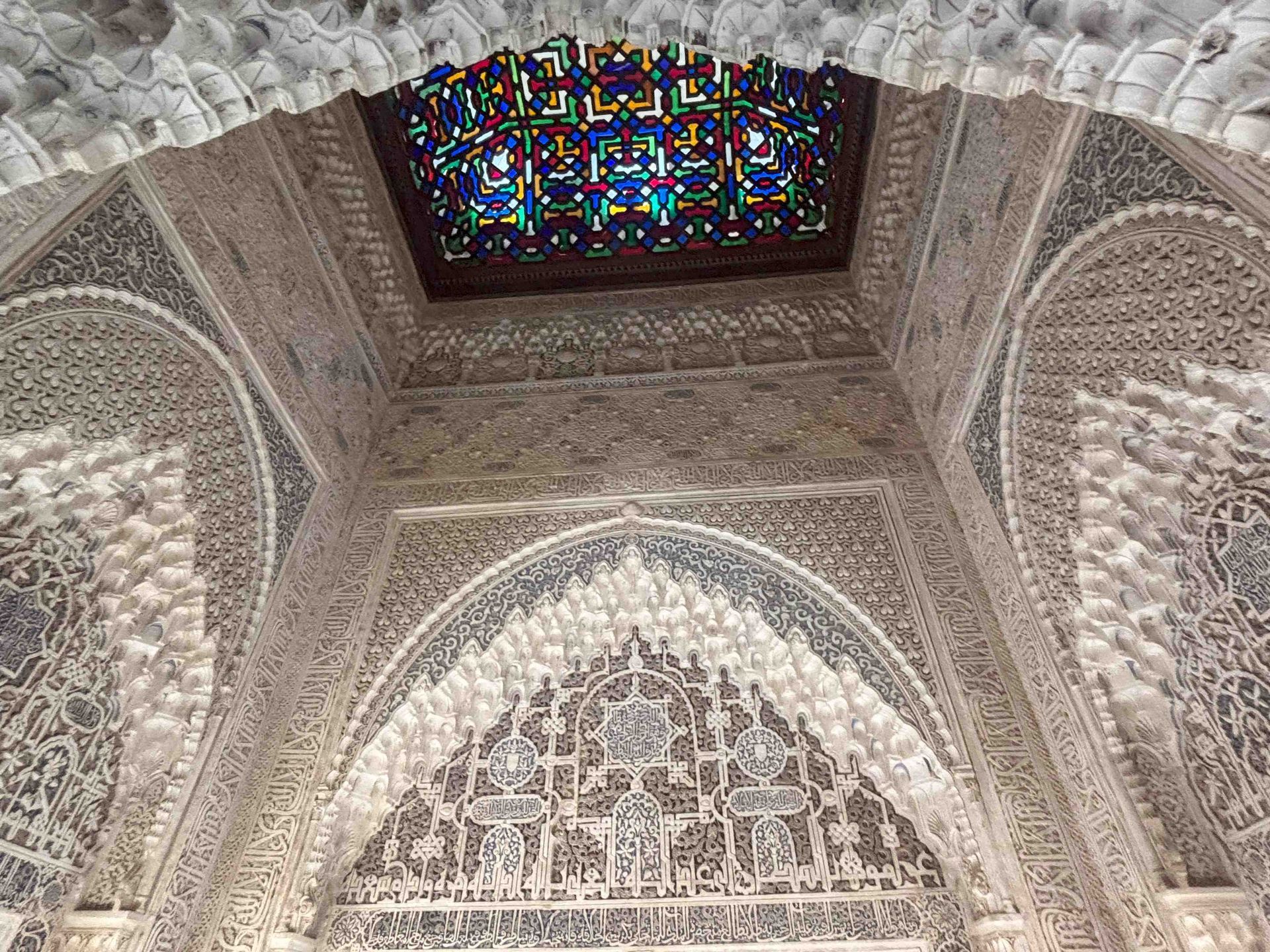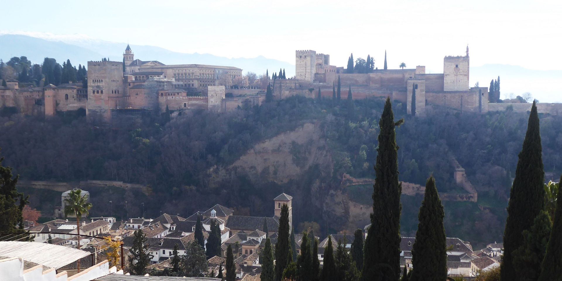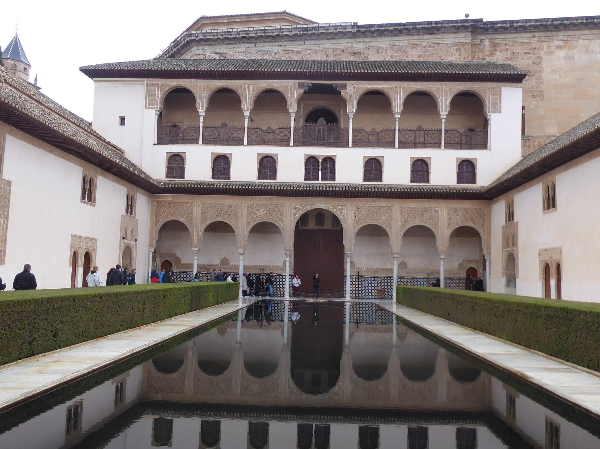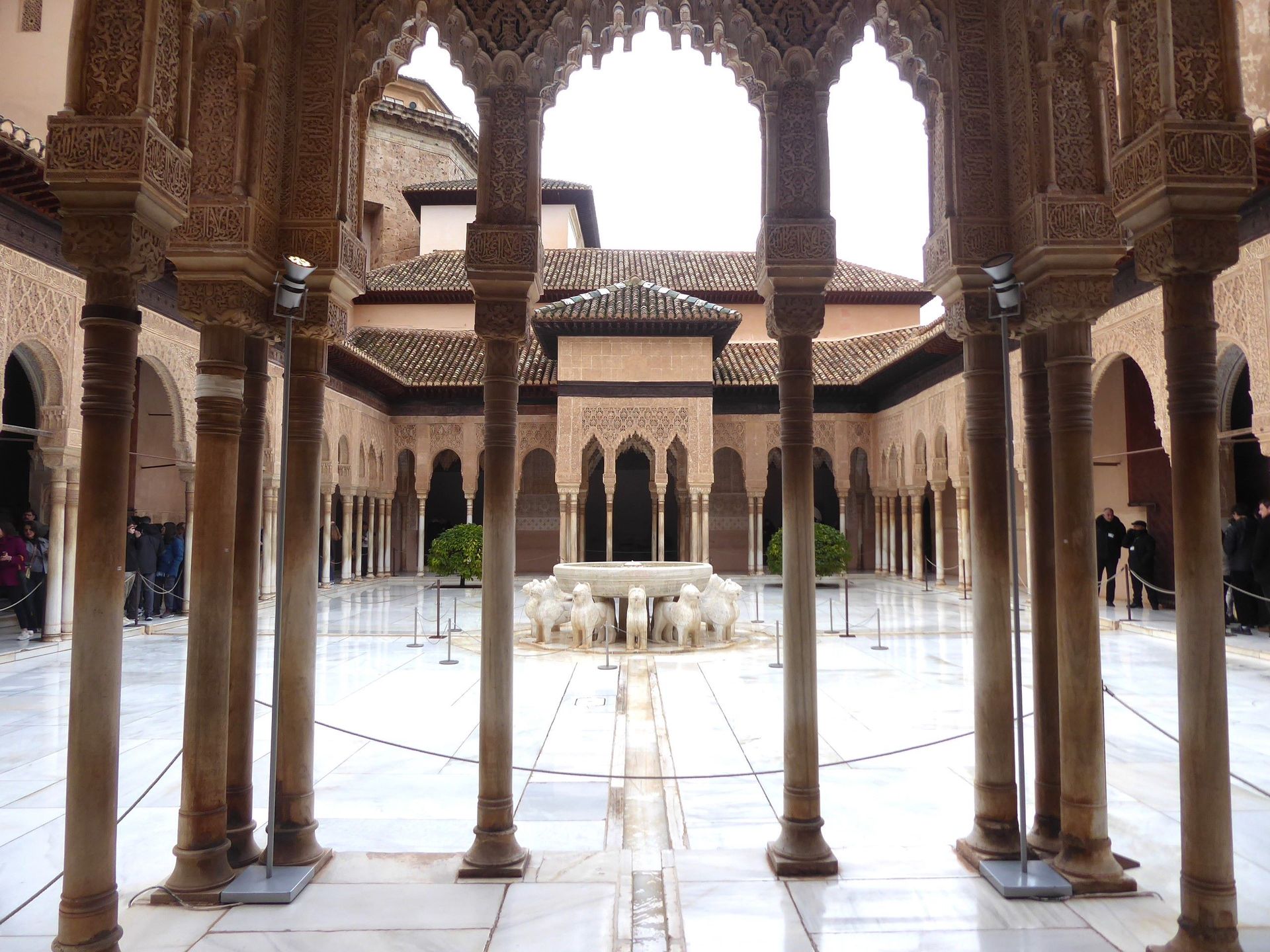 Im 8. Jahrhundert wurde Spanien von Nordafrika, den Mauren, her erobert und 756 war es muslimisch und hiess Al-Andalus, was dem heutigen Andalusien den Namen gab. Es gab verschiedene Dynastien. Eine davon waren die Nasriden, die diese Stadt in der Stadt (Medina al-Hamra = die rote Stadt) bauten. Es gab sieben Paläste, einfache Wohngebäude, einen Verwaltungsapparat, Gärten, Bäder, Moscheen, Kasernen und Gefängnisse. Die nasridischen Paläste sind die grossartigsten Zeugnisse muslimischer Baukunst.
