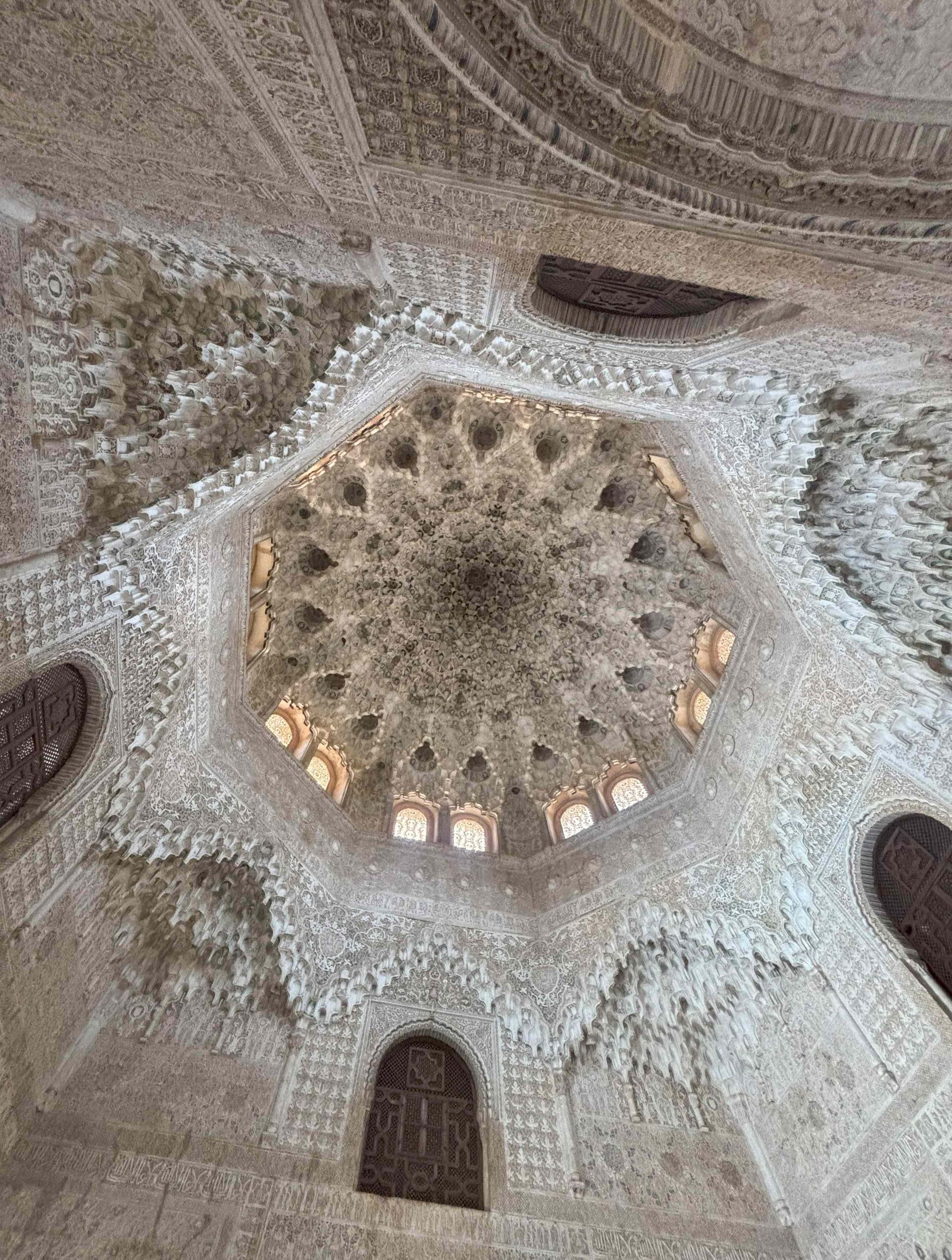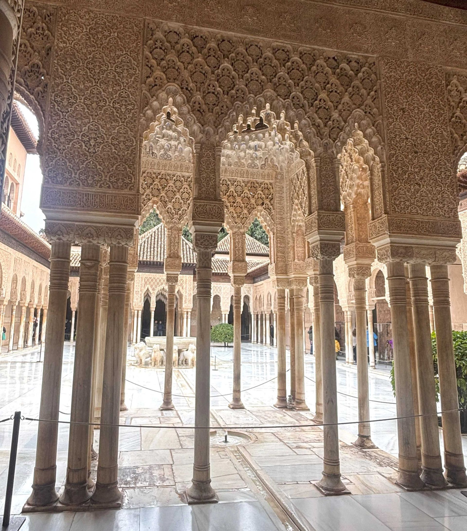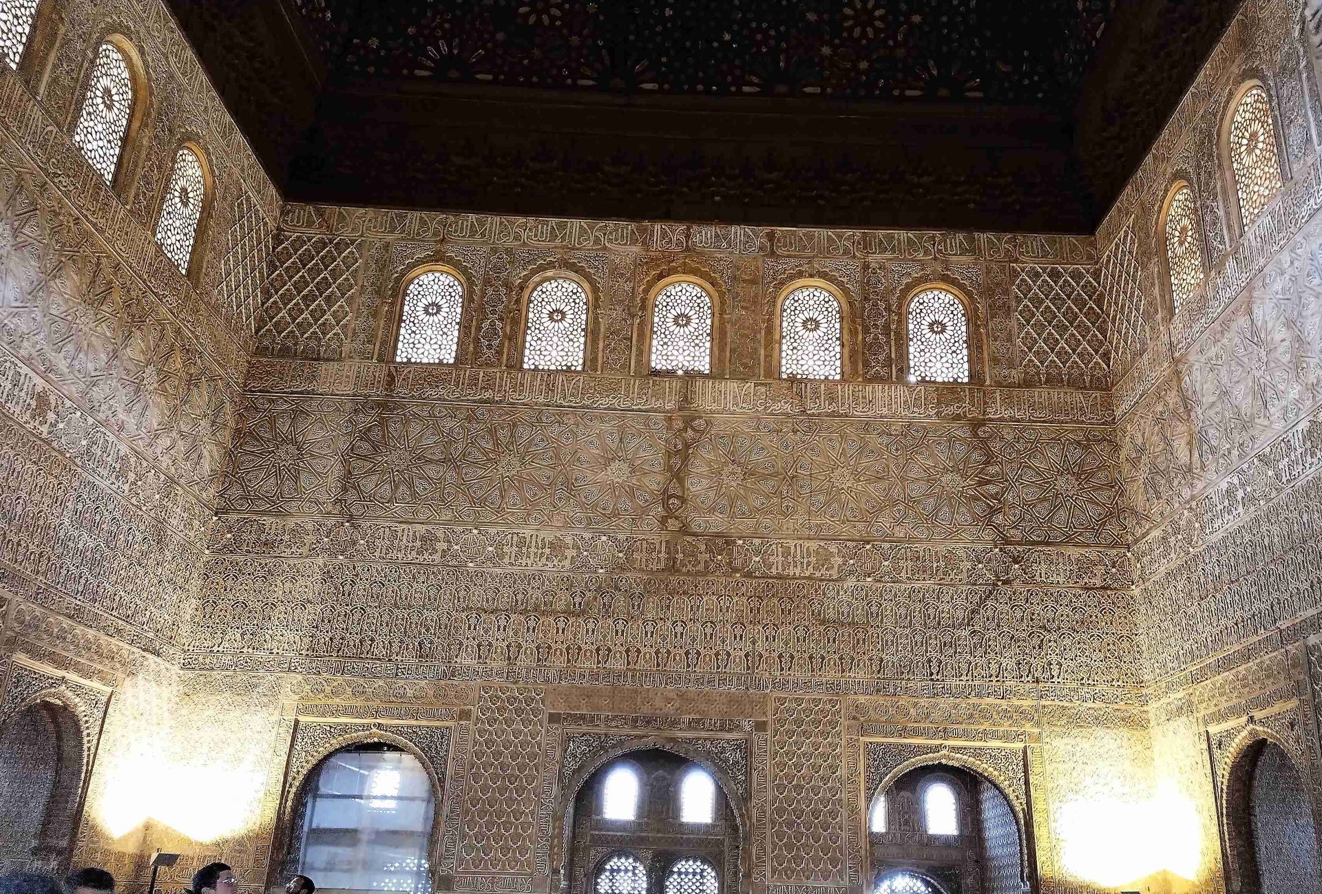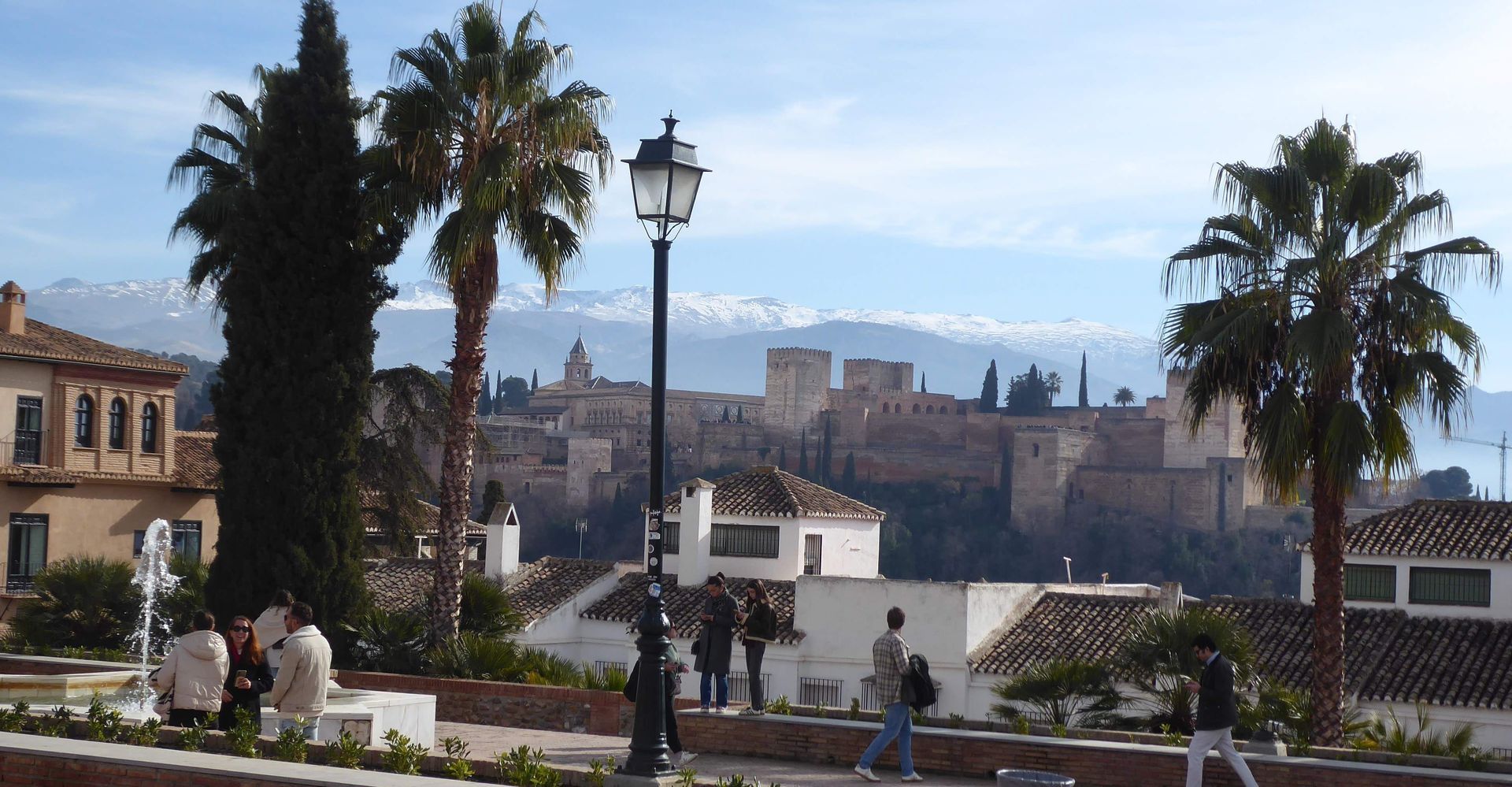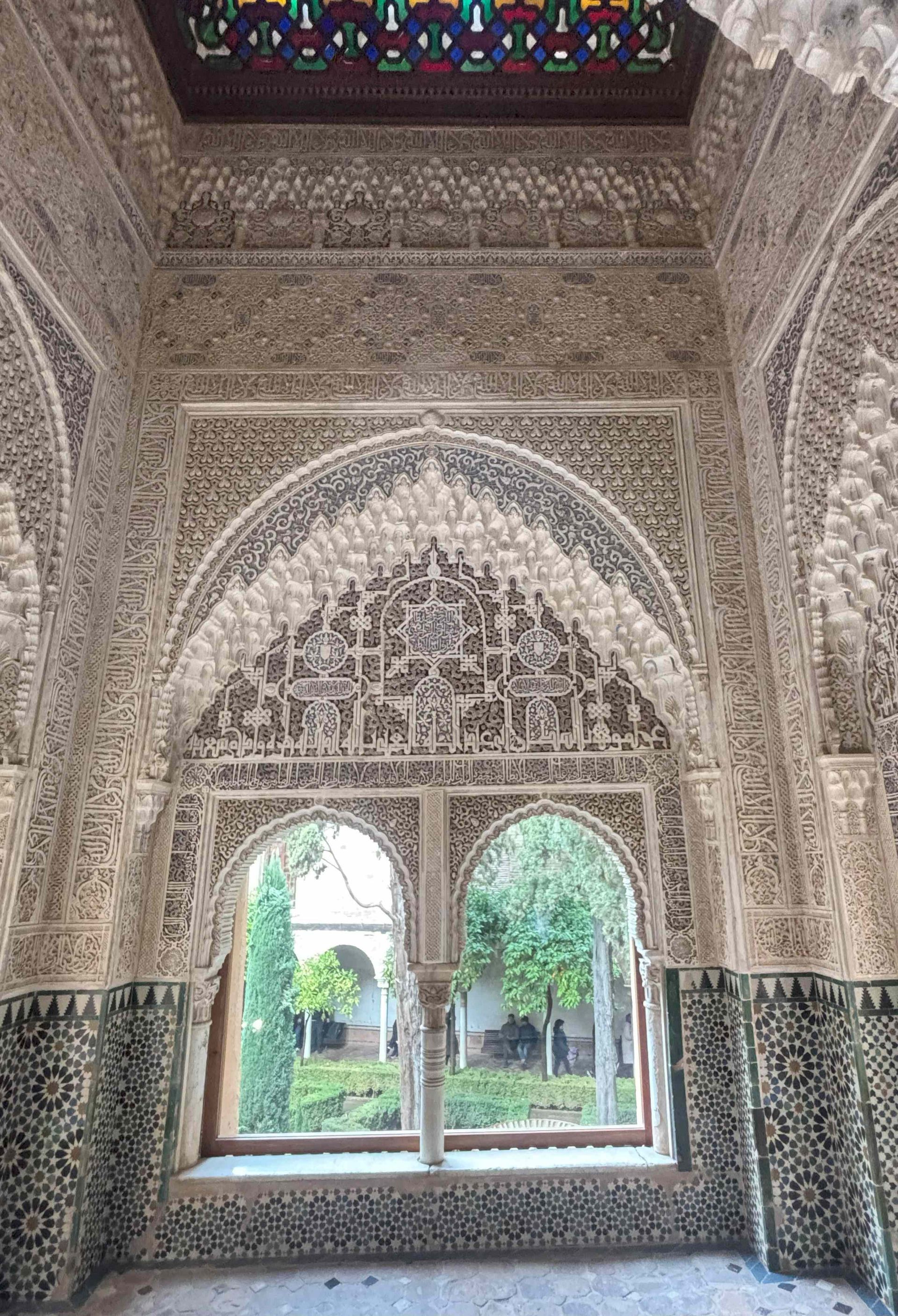 Im 8. Jahrhundert wurde Spanien von Nordafrika, den Mauren, her erobert und 756 war es muslimisch und hiess Al-Andalus, was dem heutigen Andalusien den Namen gab. Es gab verschiedene Dynastien. Eine davon waren die Nasriden, die diese Stadt in der Stadt (Medina al-Hamra = die rote Stadt) bauten. Es gab sieben Paläste, einfache Wohngebäude, einen Verwaltungsapparat, Gärten, Bäder, Moscheen, Kasernen und Gefängnisse. Die nasridischen Paläste sind die grossartigsten Zeugnisse muslimischer Baukunst.