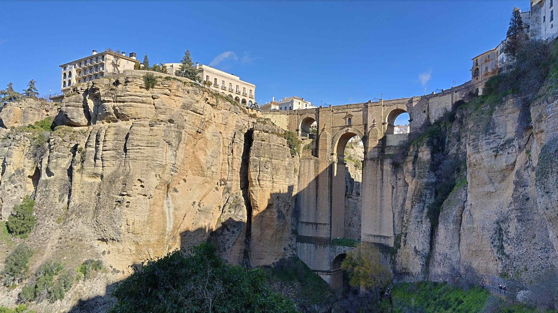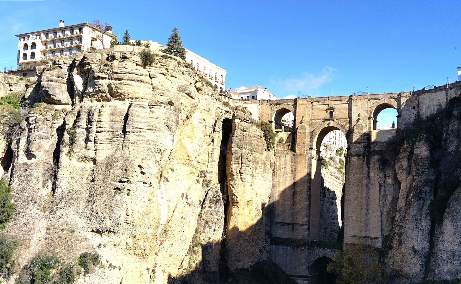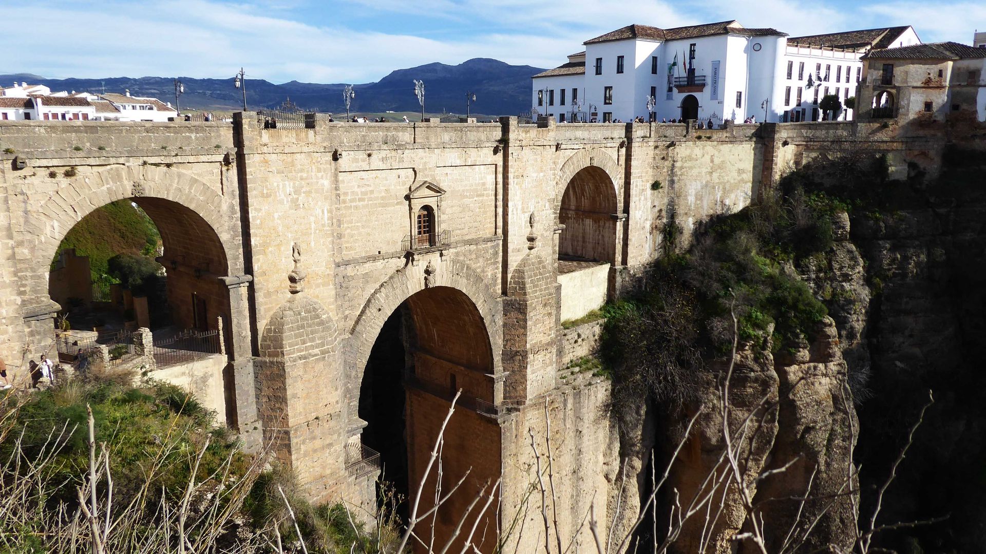 Am Mittwoch, 8.1. marschieren wir strammen Schrittes die zwei Kilometer nach Ronda für einen ersten Eindruck. Die Stadt ist schon sehr alt, 900 aC siedelten die Kelten dort. Unter den Mauren erlebte die Stadt eine grosse Blüte. 1736 wurde eine Brücke über den Fluss Guadalevin eingeweiht, die aber nur sechs Jahre später einstürzte. 1757-1787 wurde die Ponte Nueve, 100 m hoch über dem Fluss gebaut. Sie gibt Ronda ihr spezielles Aussehen. Von der Touristeninformation gehen wir die belebte Fussgängergasse hinauf, vorbei an mindestens fünf Optikergeschäften. In einem kann Hans seine Brille flicken lassen. In der Sonne essen wir Salat, kaufen ein Billett für sechs Museen/Sehenswürdigkeiten. Auf dem Weg zurück zum Bänz besuchen wir die wahrscheinlich best erhaltenen arabischen Bäder. Sie stammen aus dem 13. Jahrhundert. Auf dem Camping El Sur haben wir mit Monica und Peter abgemacht. Wir verbringen einen gemütlichen Abend zusammen mit feinen Tapas und Sangria.