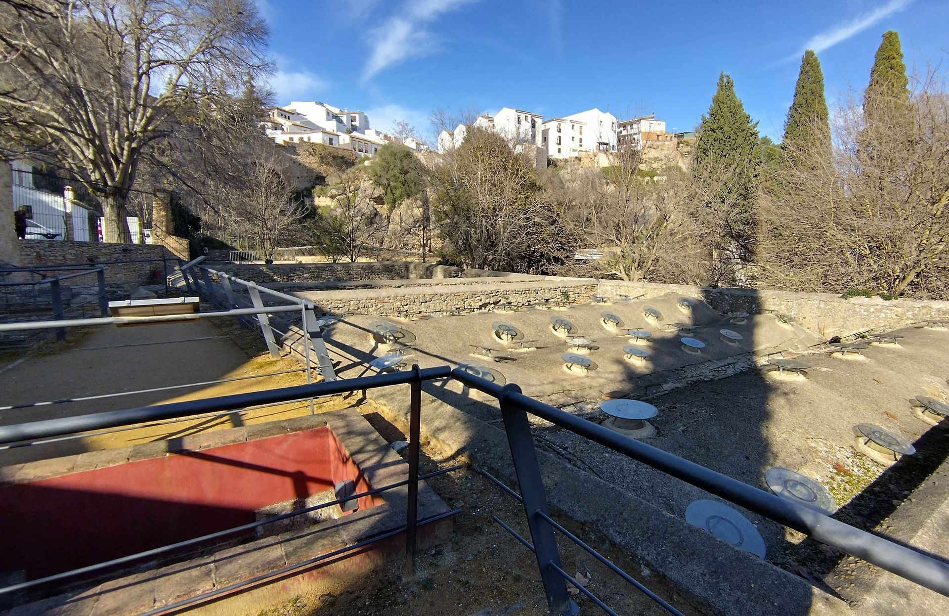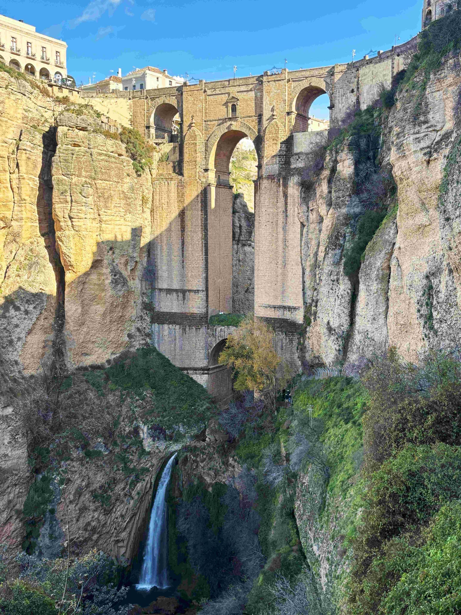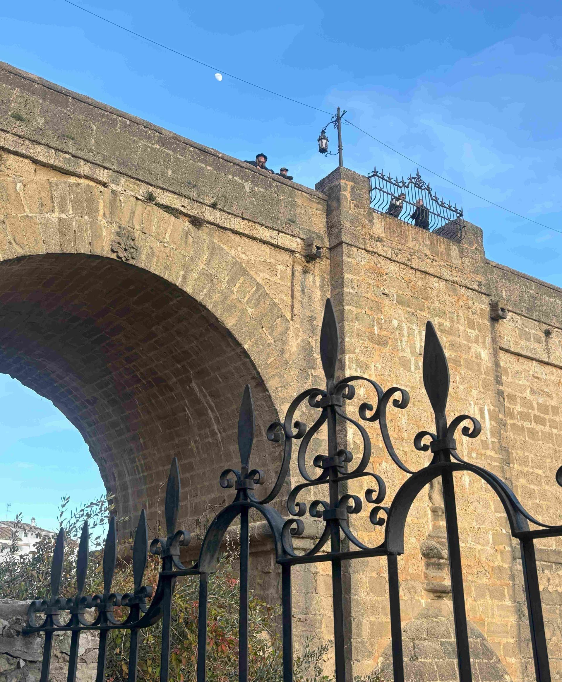 Am Mittwoch, 8.1. marschieren wir strammen Schrittes die zwei Kilometer nach Ronda für einen ersten Eindruck. Die Stadt ist schon sehr alt, 900 aC siedelten die Kelten dort. Unter den Mauren erlebte die Stadt eine grosse Blüte. 1736 wurde eine Brücke über den Fluss Guadalevin eingeweiht, die aber nur sechs Jahre später einstürzte. 1757-1787 wurde die Ponte Nueve, 100 m hoch über dem Fluss gebaut. Sie gibt Ronda ihr spezielles Aussehen. Von der Touristeninformation gehen wir die belebte Fussgängergasse hinauf, vorbei an mindestens fünf Optikergeschäften. In einem kann Hans seine Brille flicken lassen. In der Sonne essen wir Salat, kaufen ein Billett für sechs Museen/Sehenswürdigkeiten. Auf dem Weg zurück zum Bänz besuchen wir die wahrscheinlich best erhaltenen arabischen Bäder. Sie stammen aus dem 13. Jahrhundert. Auf dem Camping El Sur haben wir mit Monica und Peter abgemacht. Wir verbringen einen gemütlichen Abend zusammen mit feinen Tapas und Sangria.