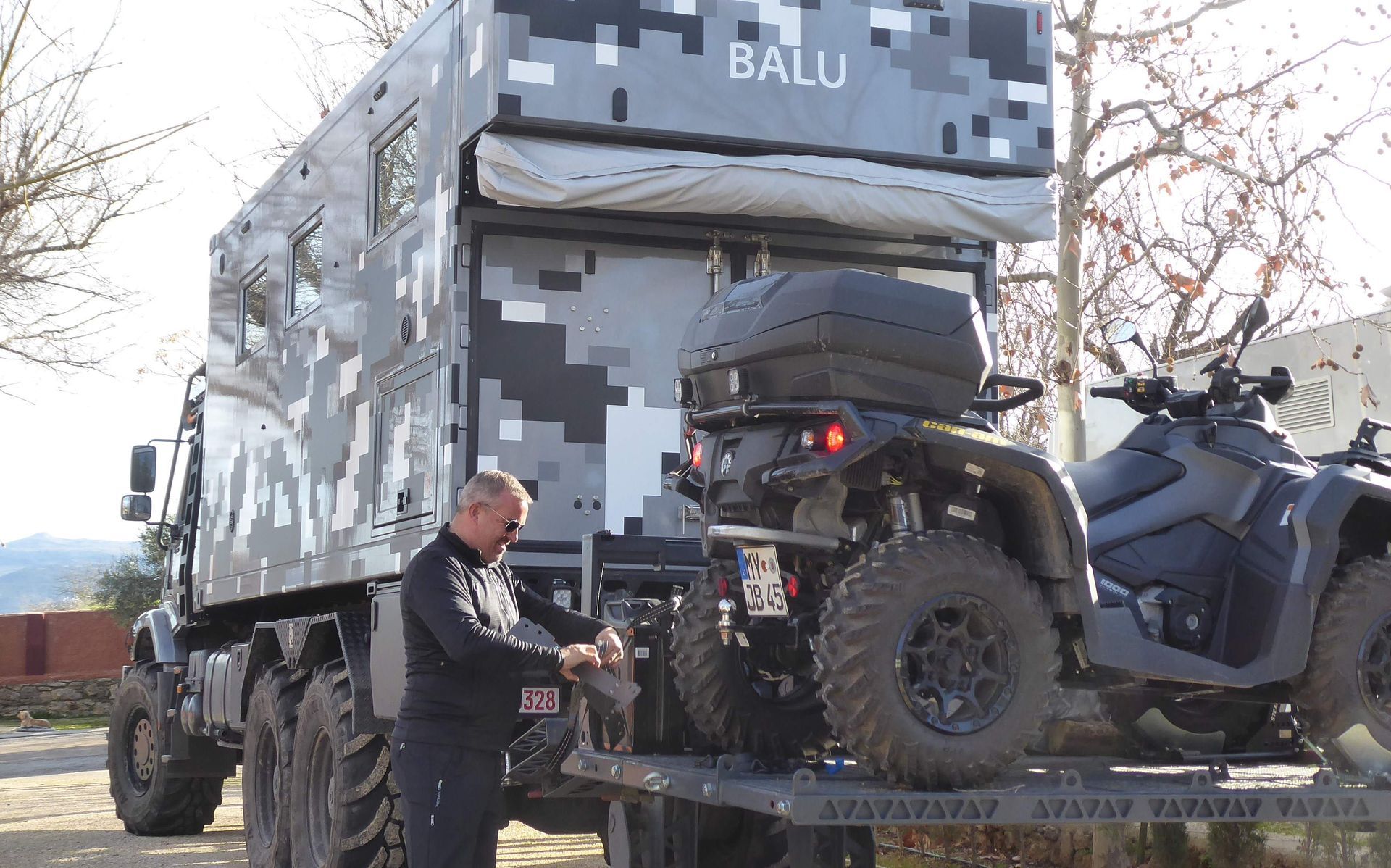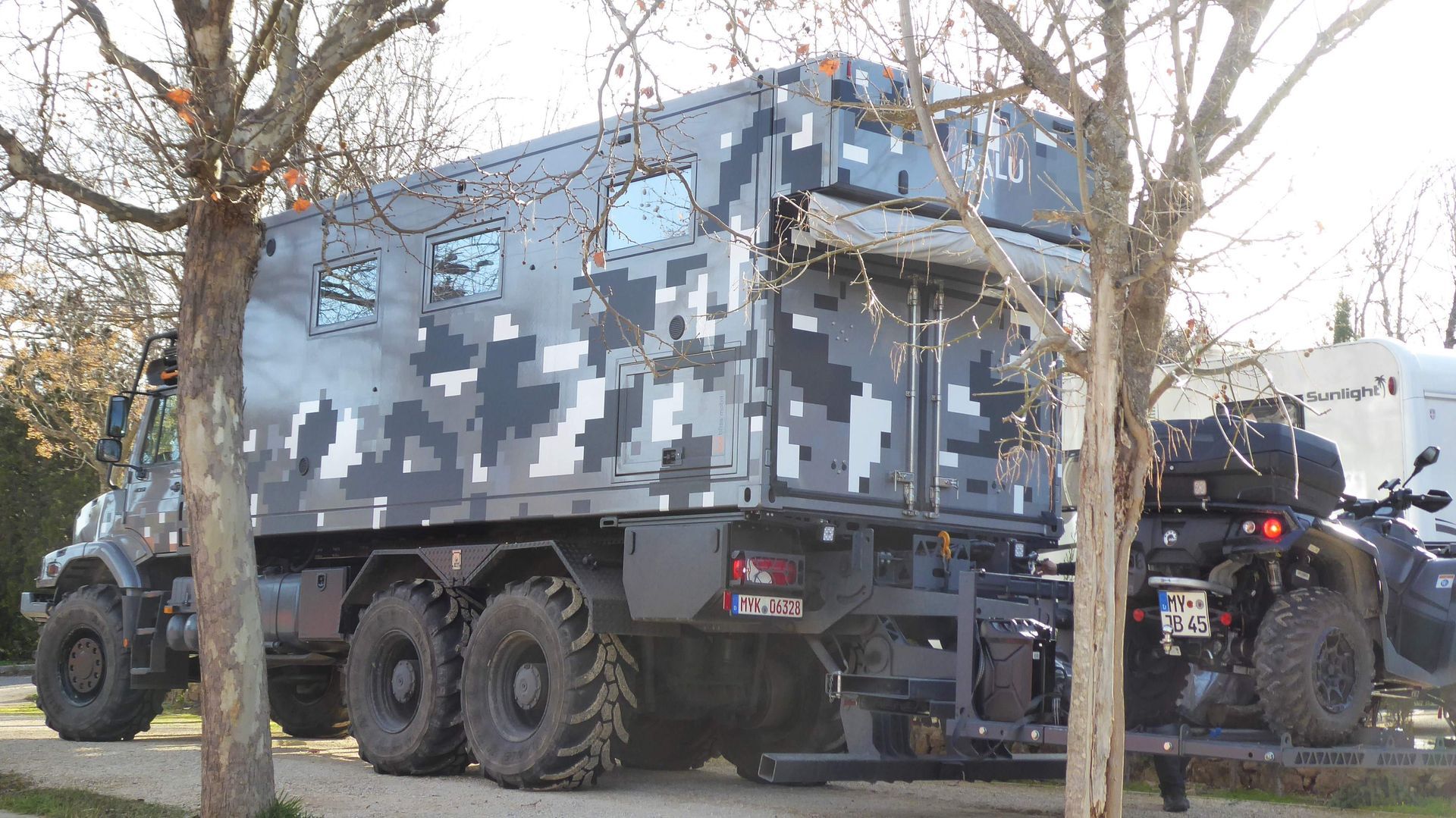 Wir lernen neu kennen, wie man auch noch campen kann. Neben uns steht nämlich ein «Panzer». Als der Fahrer seinen Quad aufbindet, sind wir neugierig und unsere Fragen werden bereitwilligst beantwortet. Energie kommt von Lithium-Batterien mit 1200 Ah. Er fasst 1000 l Wasser, das 11 mal aufbereitet werden kann. Solarzellen sind auf dem ganzen Dach, seitlich ausfahrbar. Alles ist elektrisch, kein Gas. Er kann einen Monat autonom reisen. Neben dem Quad haben sie noch Bikes dabei. Wie wohl so ein «Panzer» von innen aussieht? Wir erhalten eine Führung: Da hat es Abwasch-, Waschmaschine und Tumbler, grosser Kühlschrank, Tiefkühler, normale Duschkabine. Der «Panzer» ist auf einer Testfahrt und wird später mehrere Jahre in Australien verbringen. Wir sind sehr beeindruckt.