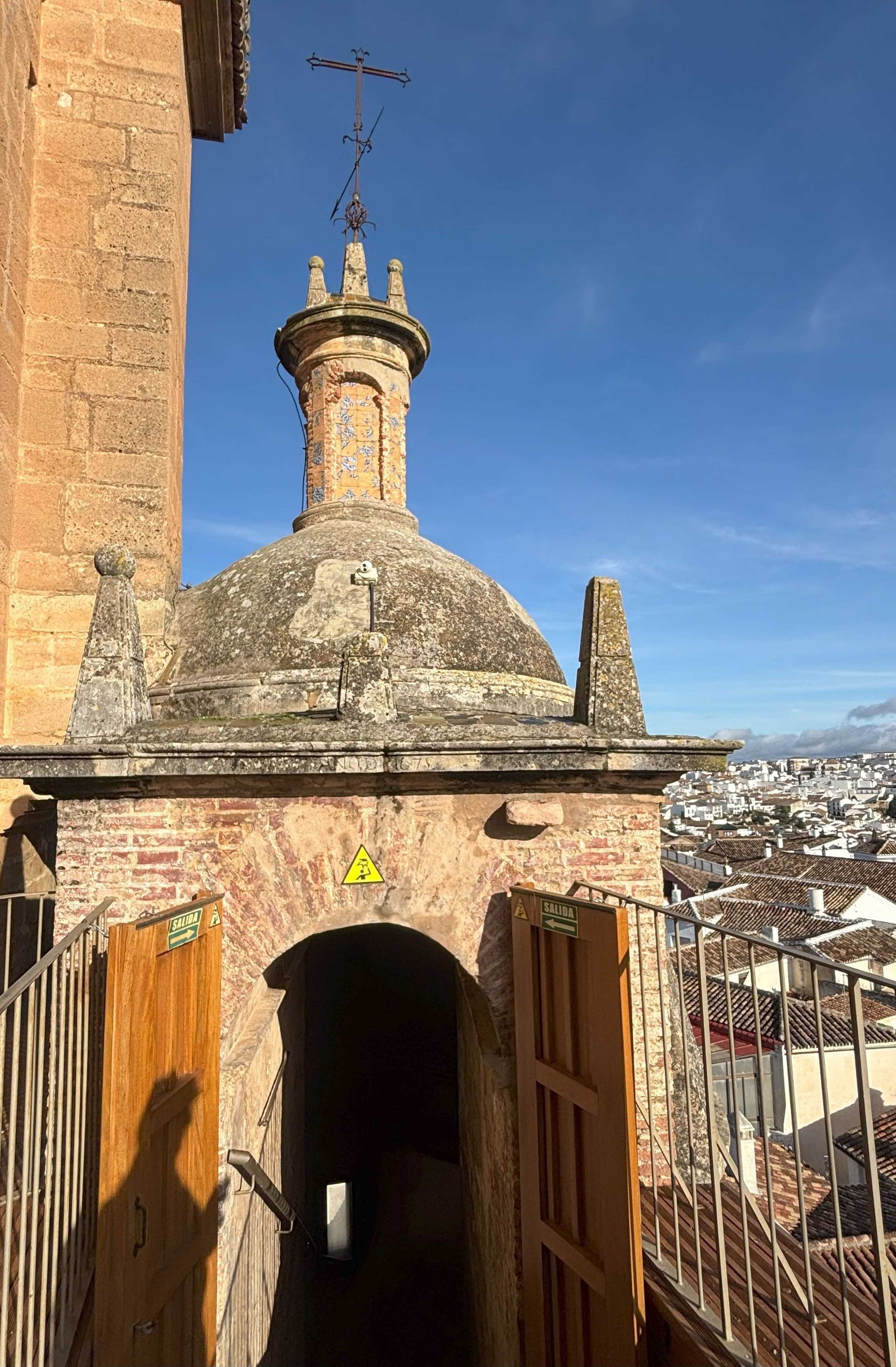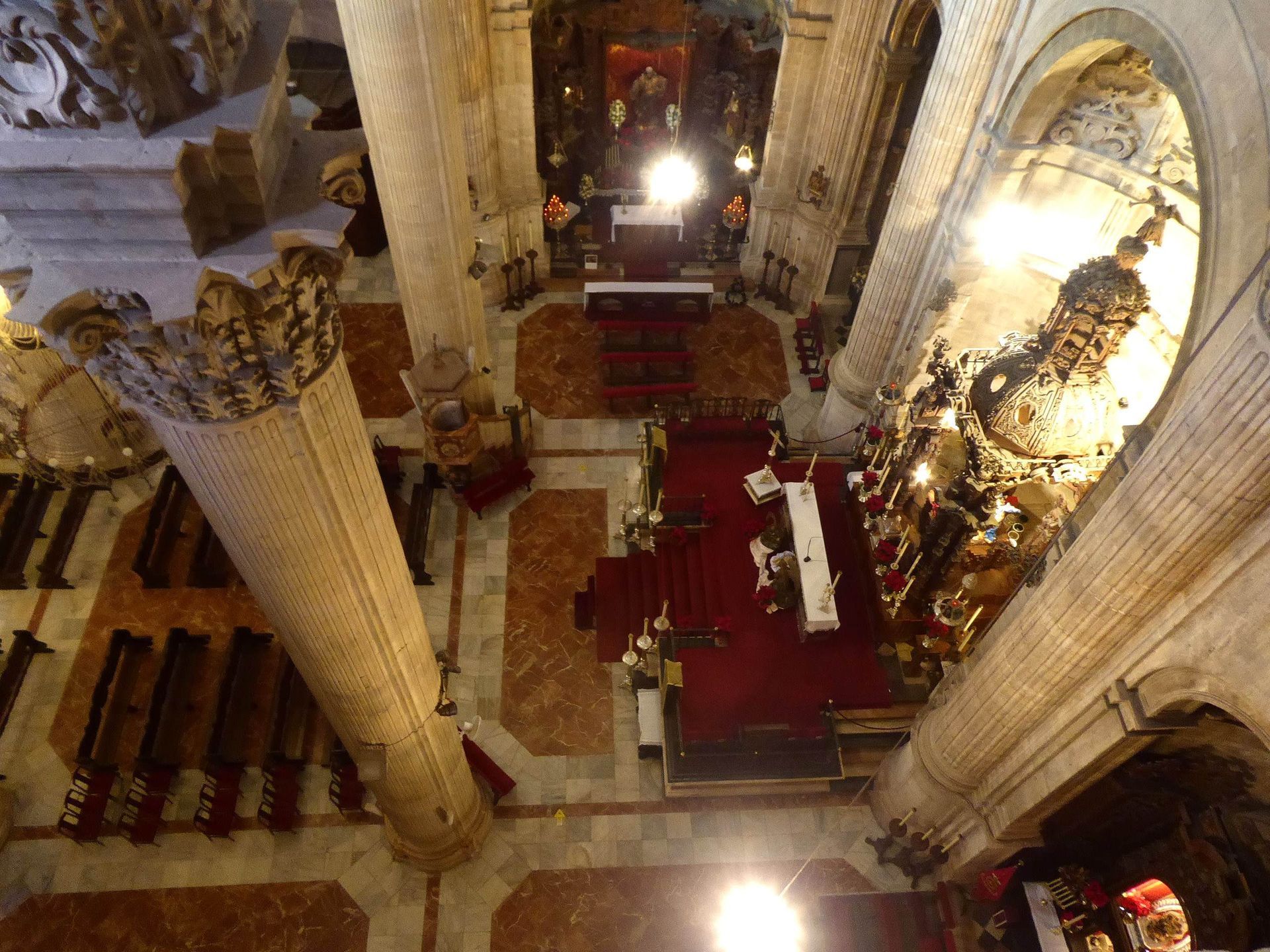 Am Donnerstag, 9.1. werden wir echte Kulturjäger. Wir fahren mit dem Taxi in die Stadt und besuchen zuerst die Stadtkirche Santa Maria la Mayor. Sie war früher eine Moschee. Innen sieht man das kaum mehr, dafür entdecken wir einen Aufgang auf das Kirchendach mit höchst interessanten Ausblicken ins Innere und auf die Stadt. Am Glockenturm erkennen wir die Reste des Minaretts. Wir sind begeistert.