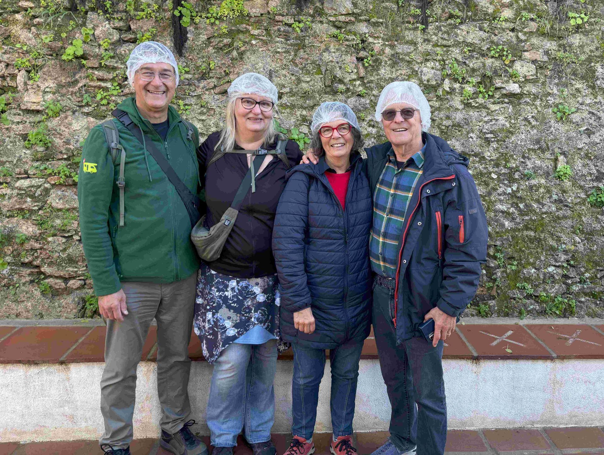 Dann besuchen wir kurz das Museum von Joaquin Peinado, einem Freund von Picasso. Von dort aus wandern wir die Schlucht hinunter, nahe an die Brückenpfeiler. Wir müssen alle einen Helm tragen. Mit dem Haarschutz darunter wird das Föteli viel lustiger.