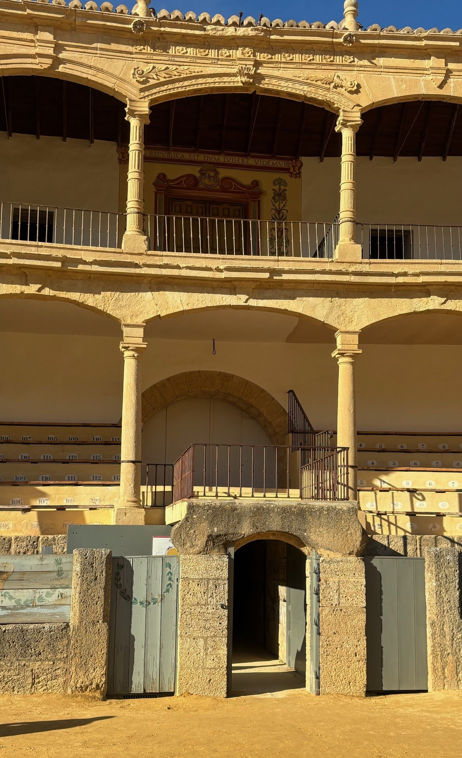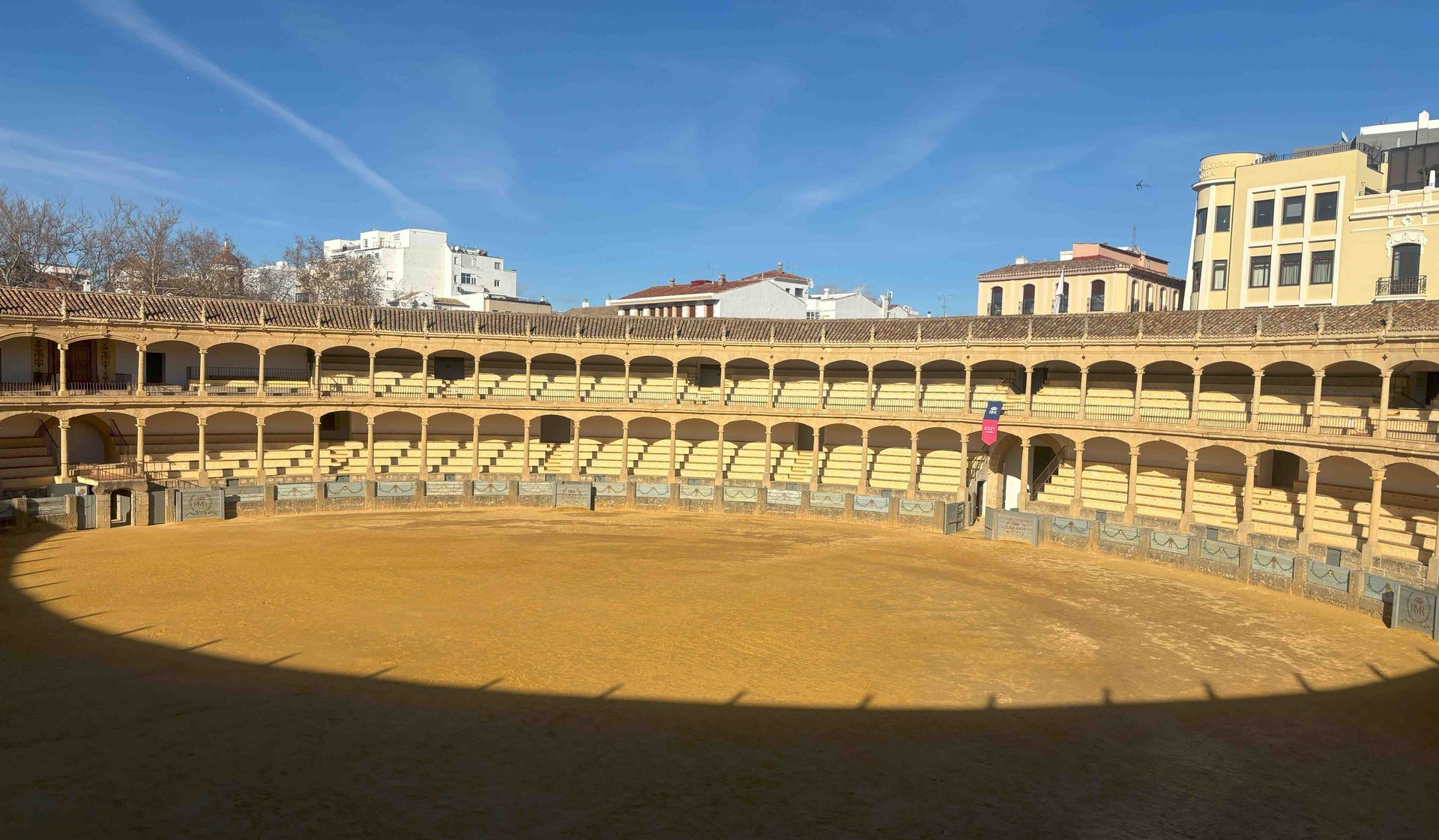 Nun meldet sich der Hunger und wir essen fein an der Sonne. Wir haben nämlich noch etwas speziell spanisches vor. Wir besuchen die Stierkampfarena, eine der fünf der wichtigsten in Spanien. Die Arena hat 60 m Durchmesser, was sich als schwierig für den Kampf erwies. Sie bietet 4000 Leuten Platz. Früher ritten die Matadore, bis Pedro Romero kam und den Kampf mit dem Stier zu Fuss aufnahm. Neben der Romero-Familie gibt es die Ordonez-Familie. Ihr berühmtester Sohn tötete über 5000 Stiere. Was wohl mit deren Fleisch geschah? Sie waren ja die am besten gehaltenen Tiere in Spanien.