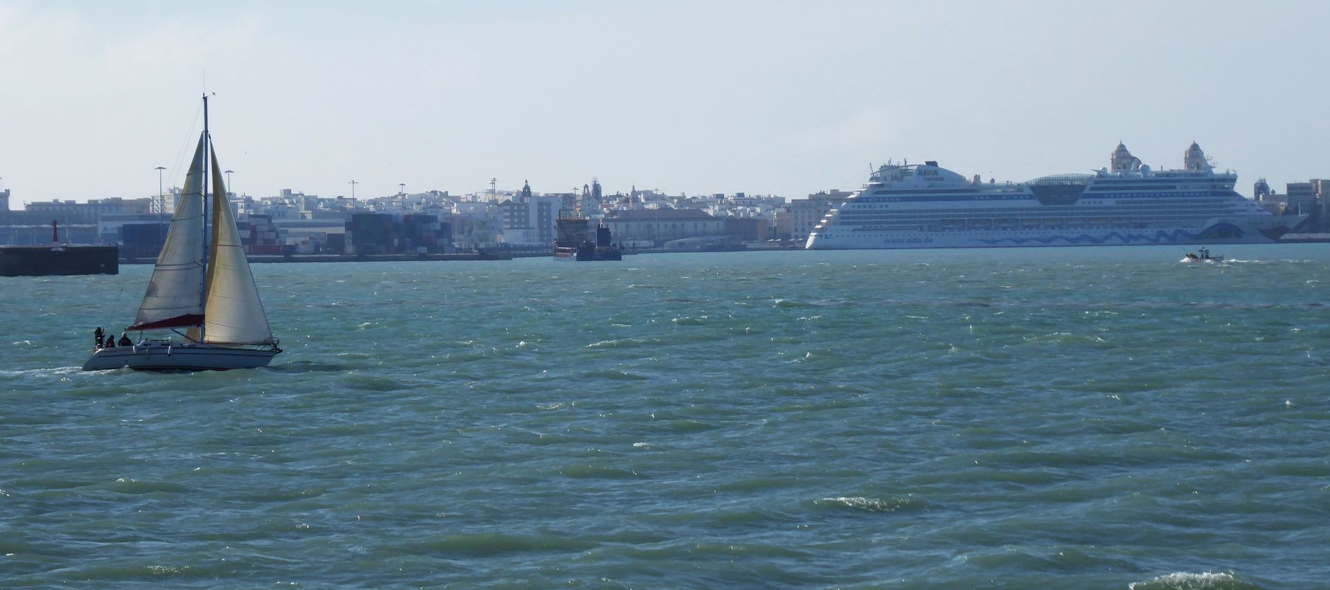 Am Sonntagmorgen lichtet sich der Nebel und am Mittag tuckern wir mit dem Katamaran in 40 Min. nach Cadiz. Es ist eine der ältesten Städte Europas. Schon die Römer waren hier, unter den Mauren gelangte die Stadt zu neuem Ruhm und sie verteidigte sich erfolgreich gegen die napoleonischen Truppen. 1812 wurde hier eine liberale Verfassung ausgerufen, die 3 Jahre Gültigkeit hatte. Der Hafen noch immer sehr gross, auch für die Aida, die wir schon in Norwegen gesehen haben.