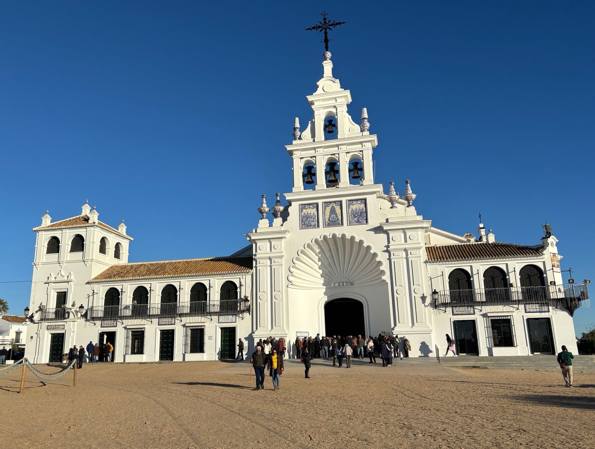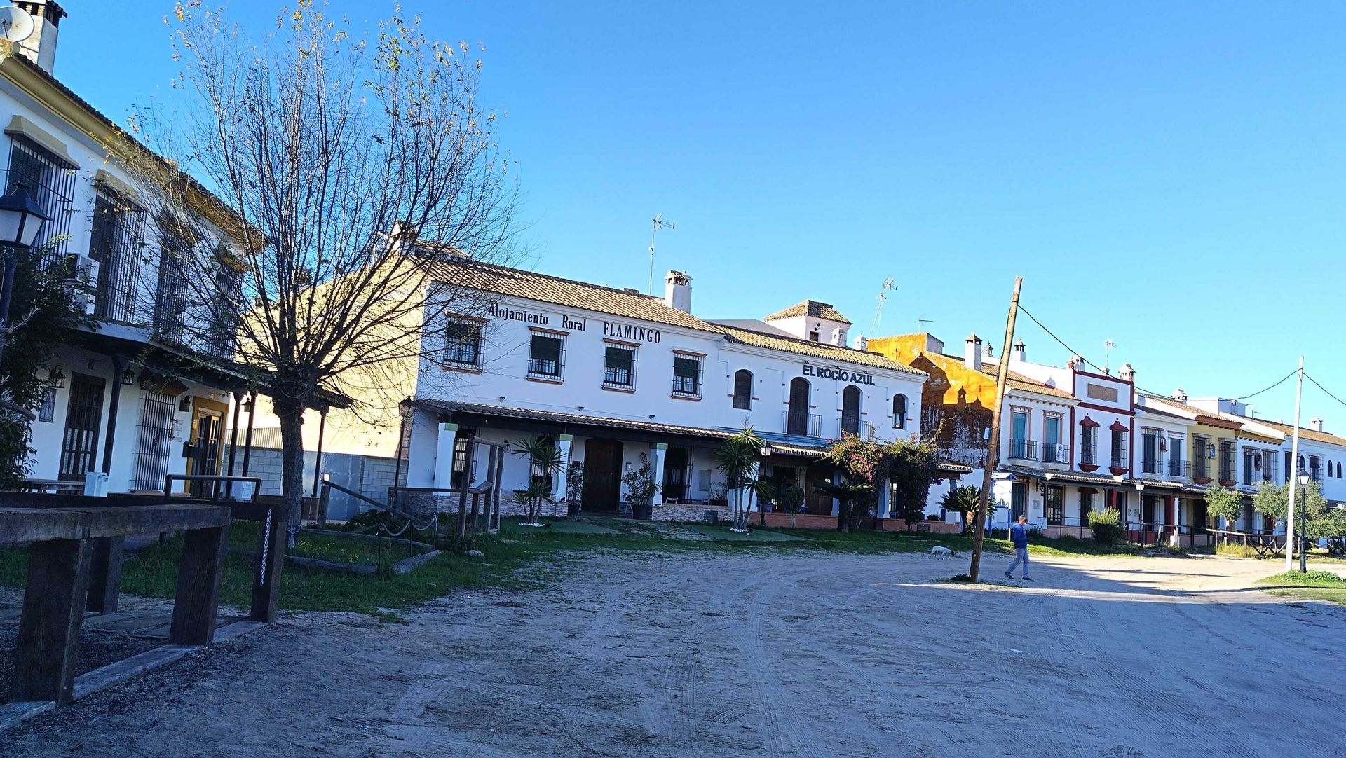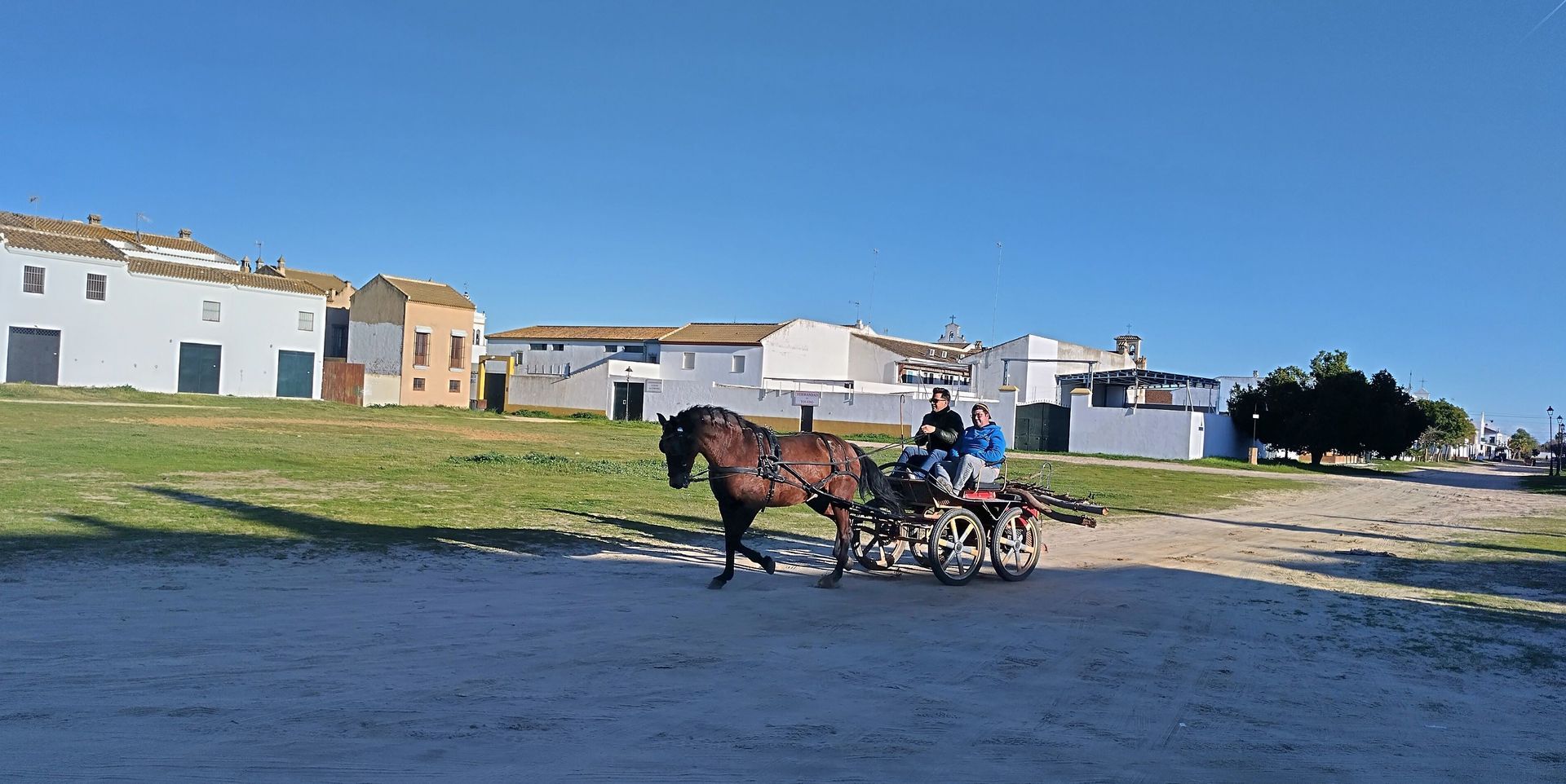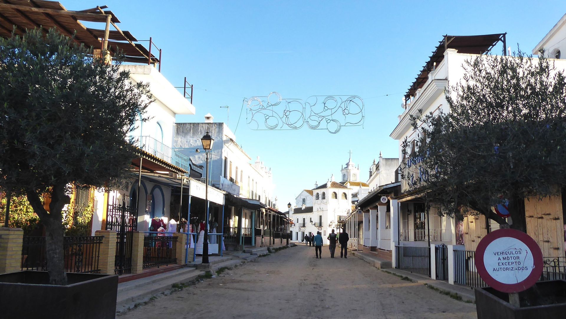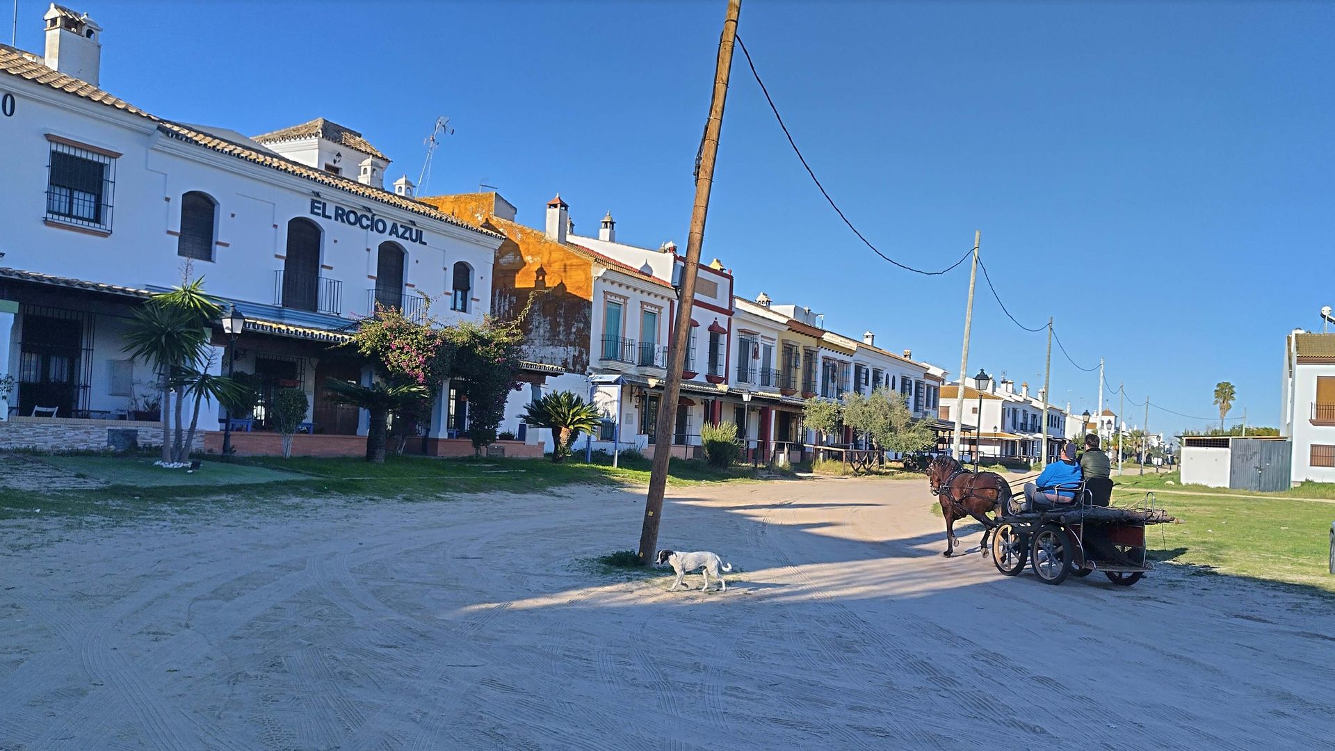 Den Tipp haben wir von Monica und Peter. El Rocio erscheint wie ein mexikanisches oder Western-Dorf. Die Strassen sind gestampfter Sand, am Wochenende sind die Leute nur mit Pferd und Wagen unterwegs. Leider ist Montag, trotzdem erhaschen wir ein Gespann. Die Wege sind viel weicher und sehr angenehm zu gehen, wenn man vom feinen Sand zwischen den Zehen absieht. El Rocio ist bekannt für sein Pfingstfestival. Da kommen die Leute zu Tausenden von überall her.