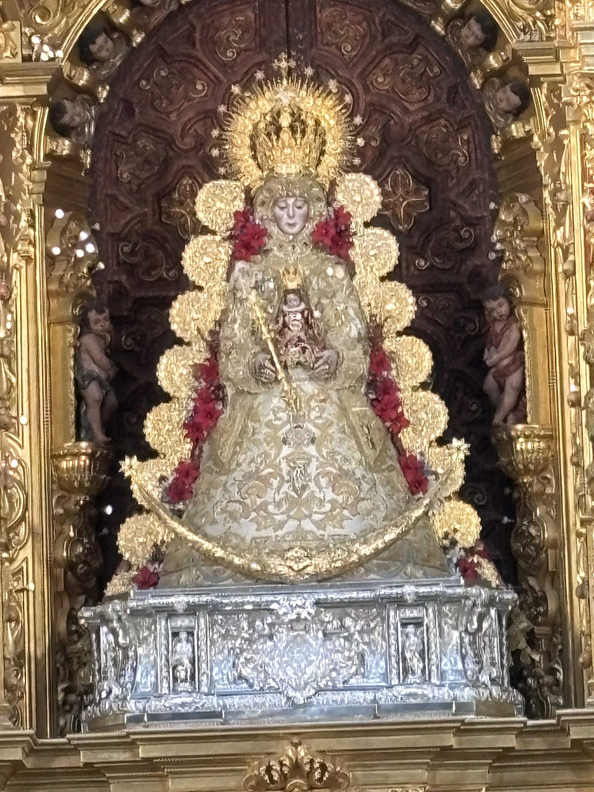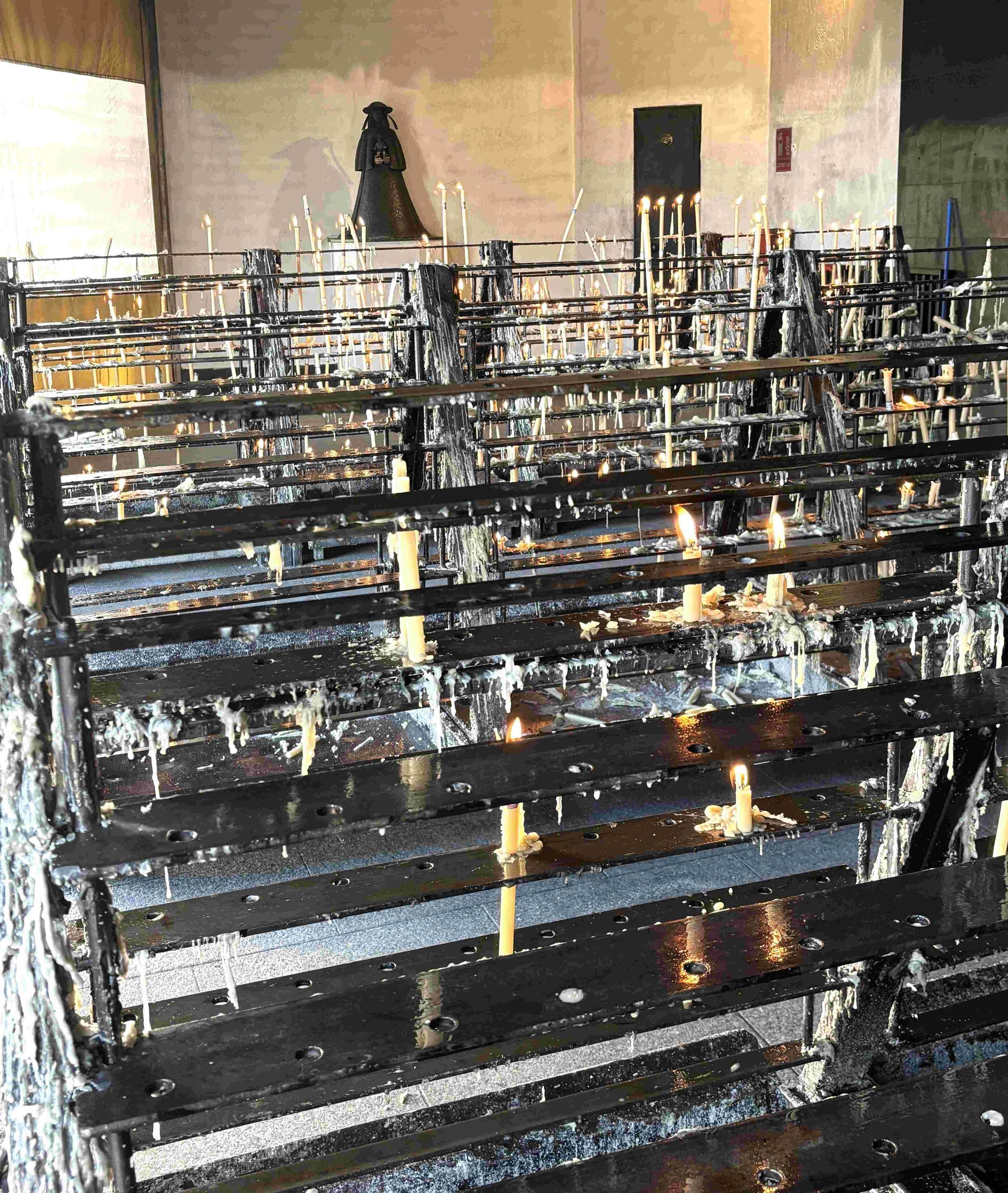 Wir kommen zum Zentrum mit einer grossen Wallfahrtskirche. Gerade ist eine Beerdigung zu Ende und viele Leute stehen herum. So besuchen wir nur einen Nebenraum, wo die Leute Kerzen anzünden für eine Bitte oder ein Anliegen an die schwarze Madonna.