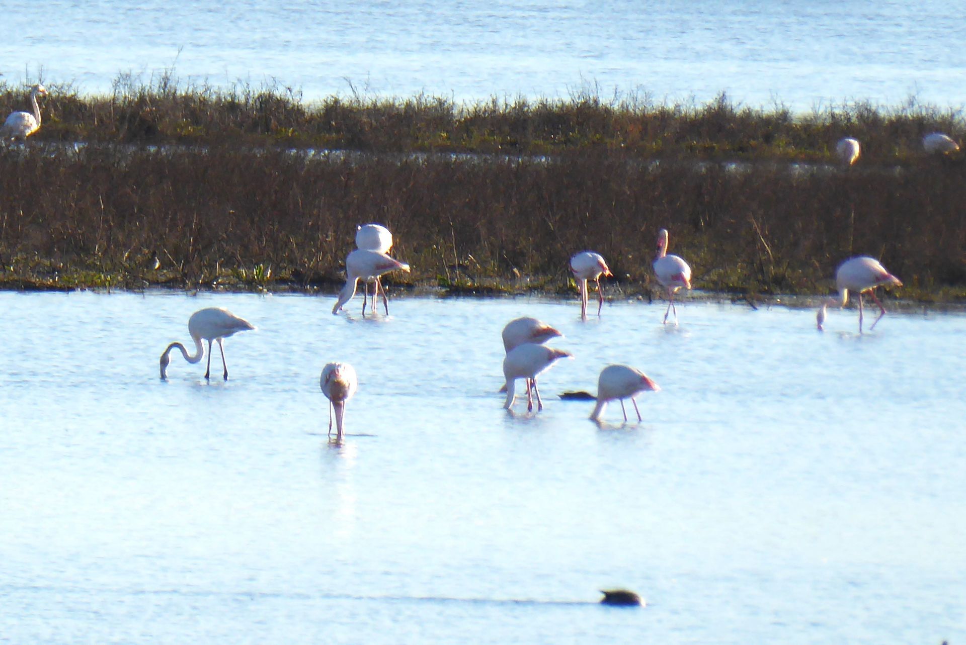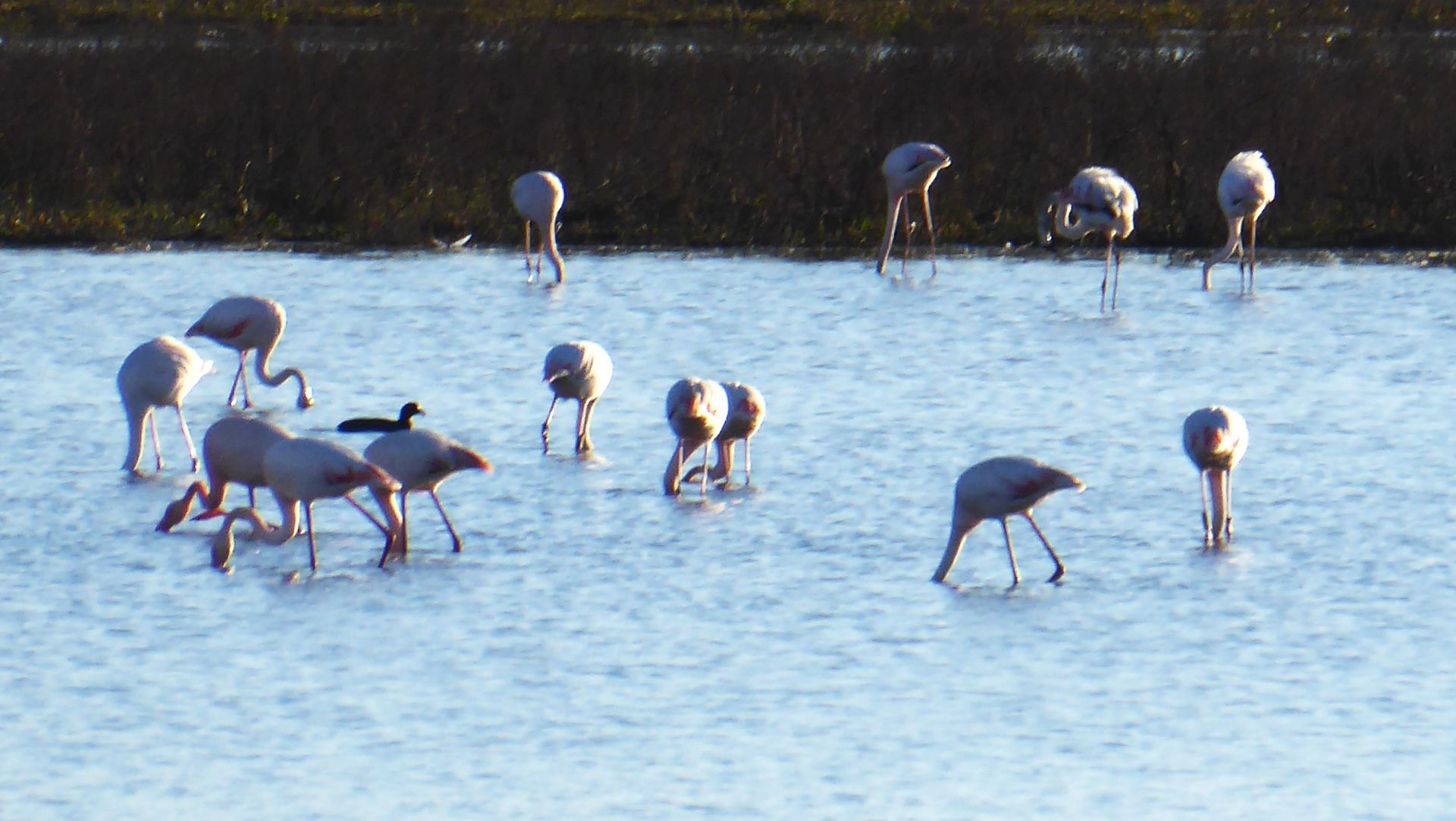 Dann entdecken wir im See die Flamingos und versuchen sie fotografisch einzufangen.