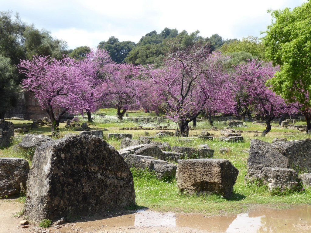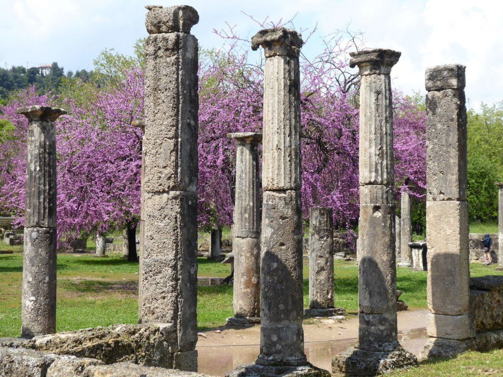 In Ancient Olympia wird unser Vorstellungsvermögen sehr herausgefordert. Das Modell hilft uns viel mehr. Wir bewundern die Kunst, die grosse Anlage, aber die vielen blühenden Bäume bereichern die vielen alten Steine. Im Museum der olympischen Spiele gibt uns einen guten Eindruck in ihre Entstehung. Das Olympische Feuer wurde 1936 wieder entzündet für die Spiele in Berlin. So spannend.Von Olympia aus fahren wir auf der Nr 33 quer durchs Land, zum Teil auf abenteuerlichen Strassen. Verkehr hat es fast keinen.