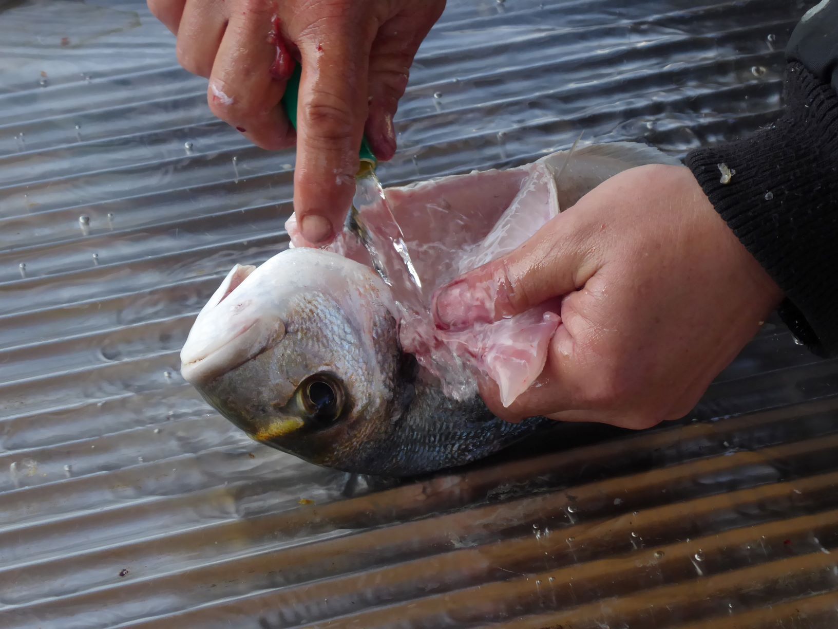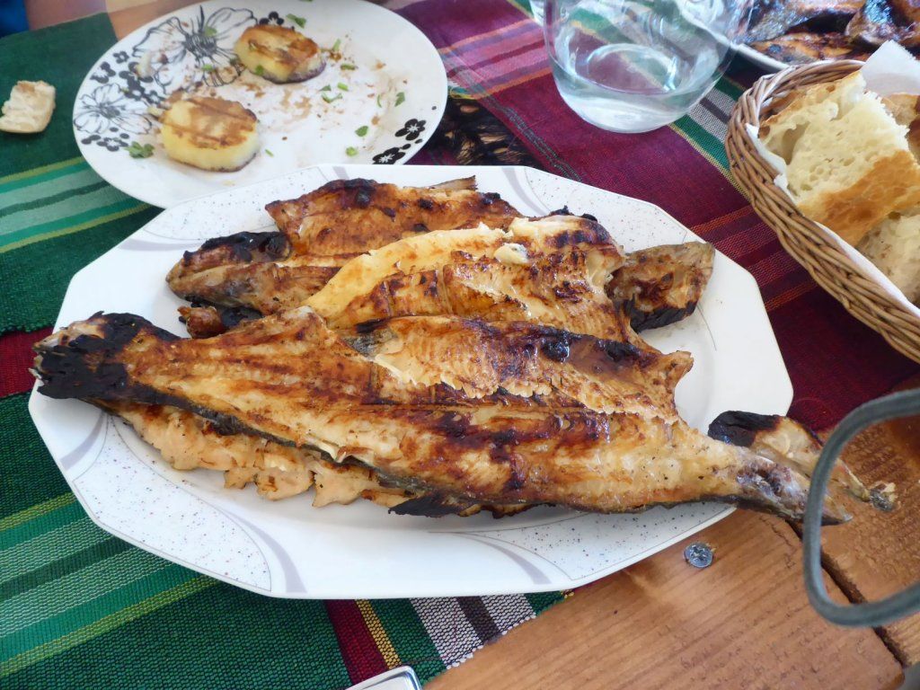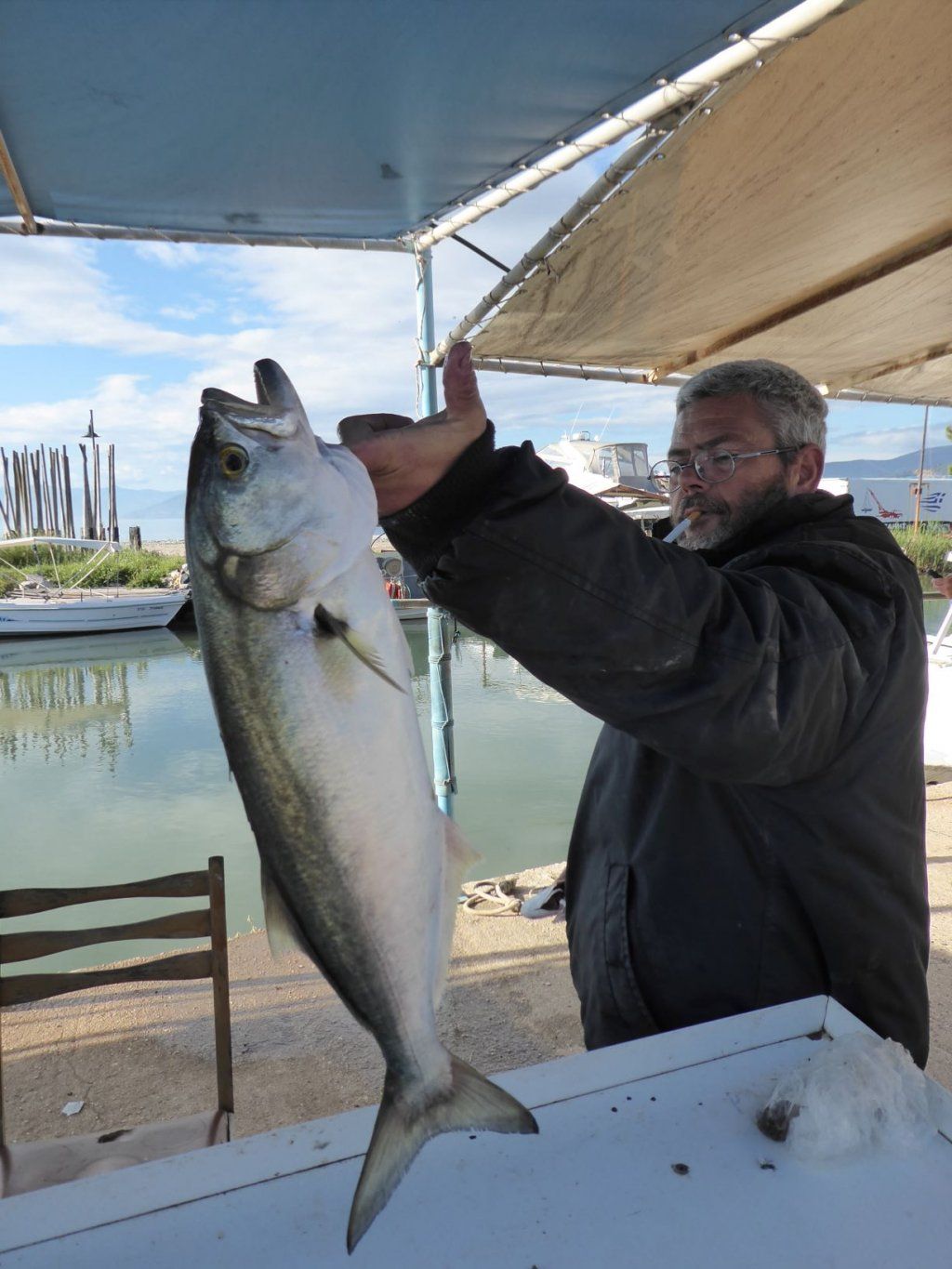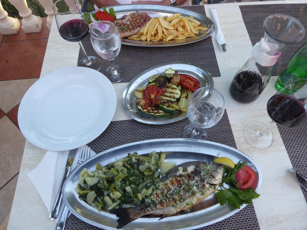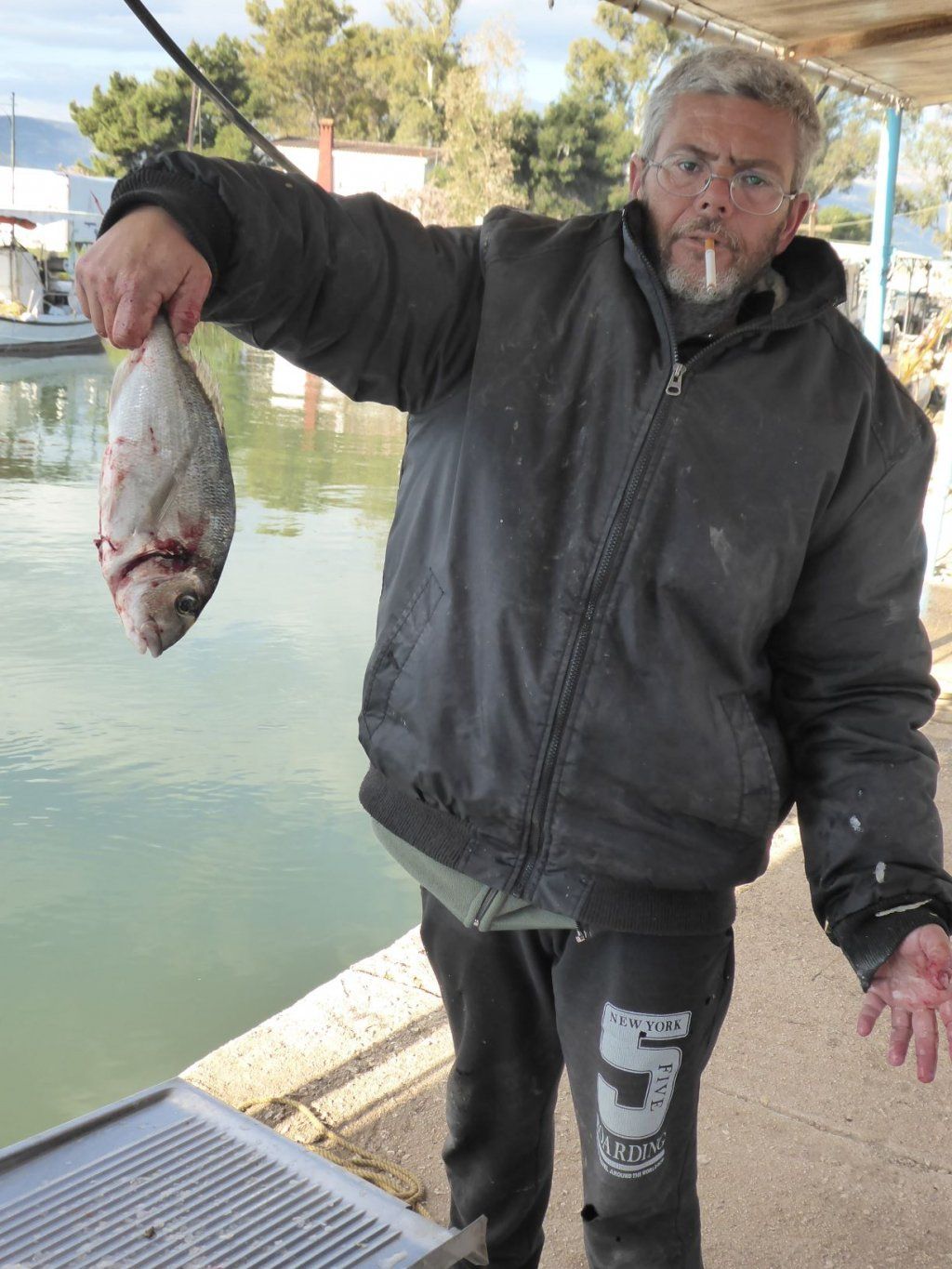 Dreimal suchen wir Campingplätze, die zwar auf der Karte sind, aber nicht in Natura. Schliesslich landen wir auf der Westseite am Golf von Argolis wieder am Meer. Schon bei Dunkelheit parkieren wir am Yachthafen von Nea Kios. Das ist echt ein Glück, denn am andern Morgen kaufen wir den frischesten Fisch, eine Dorade, den wir je hatten. Der Fischer nimmt ihn für uns aus.