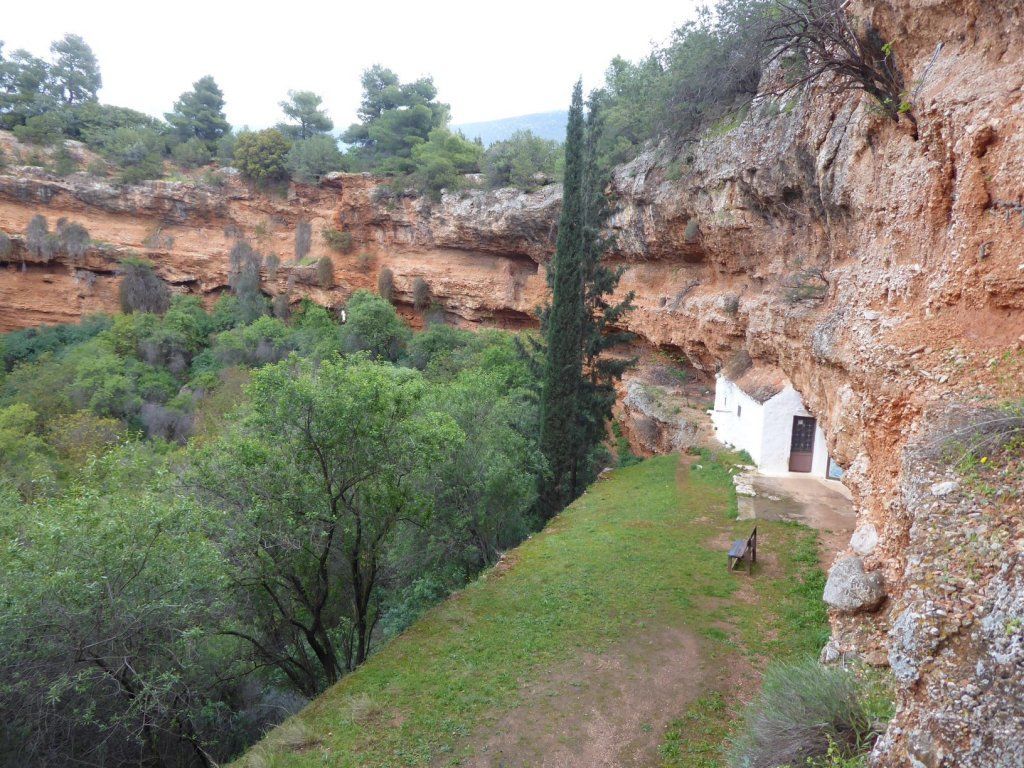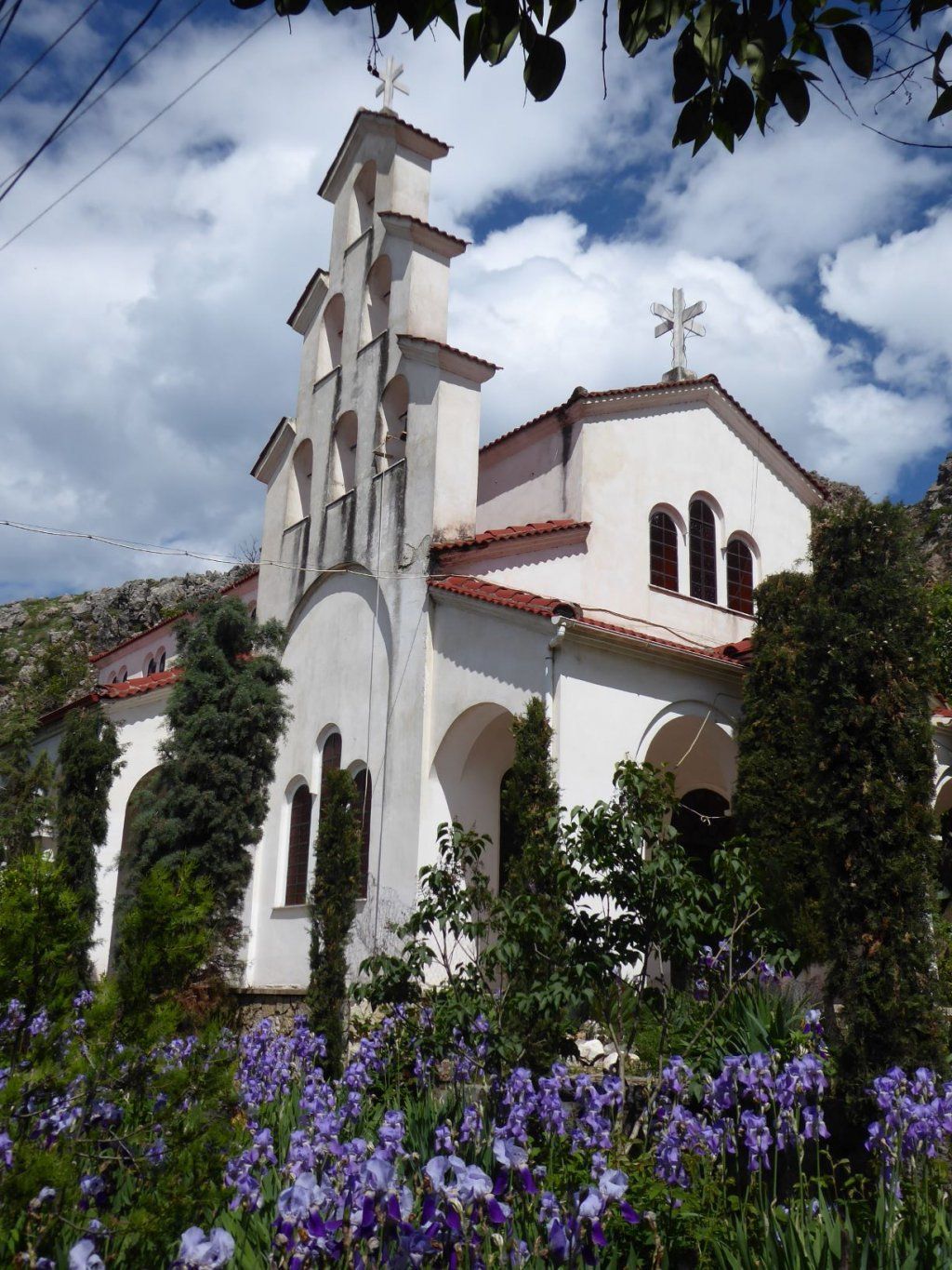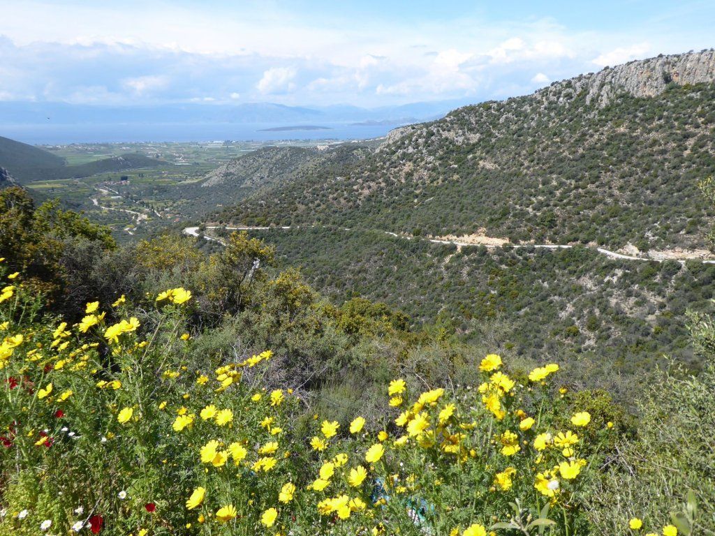 Die Strasse führt in die Berge und da blüht es um die Wette. Unser Ziel ist der südlichste Ort der Argolisbucht, Kostas mit einem Camping. Unterwegs besuchen wir die Doline von Didimon und umrunden sie auf halber Höhe und kommen an drei Kapellen vorbei. In der Höhle von Frachthi lebten die ersten sesshaften Menschen, vor 10`000-6000 vC. In Kostas gibt es auch wieder keinen Camping, aber unsern Stellplatz Panaghitsa finden wir direkt vor dem Gewitter und er liegt traumhaft am Meer.