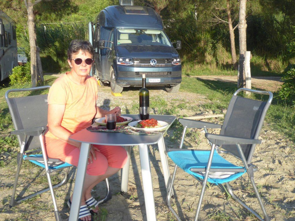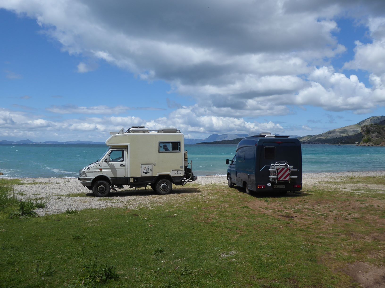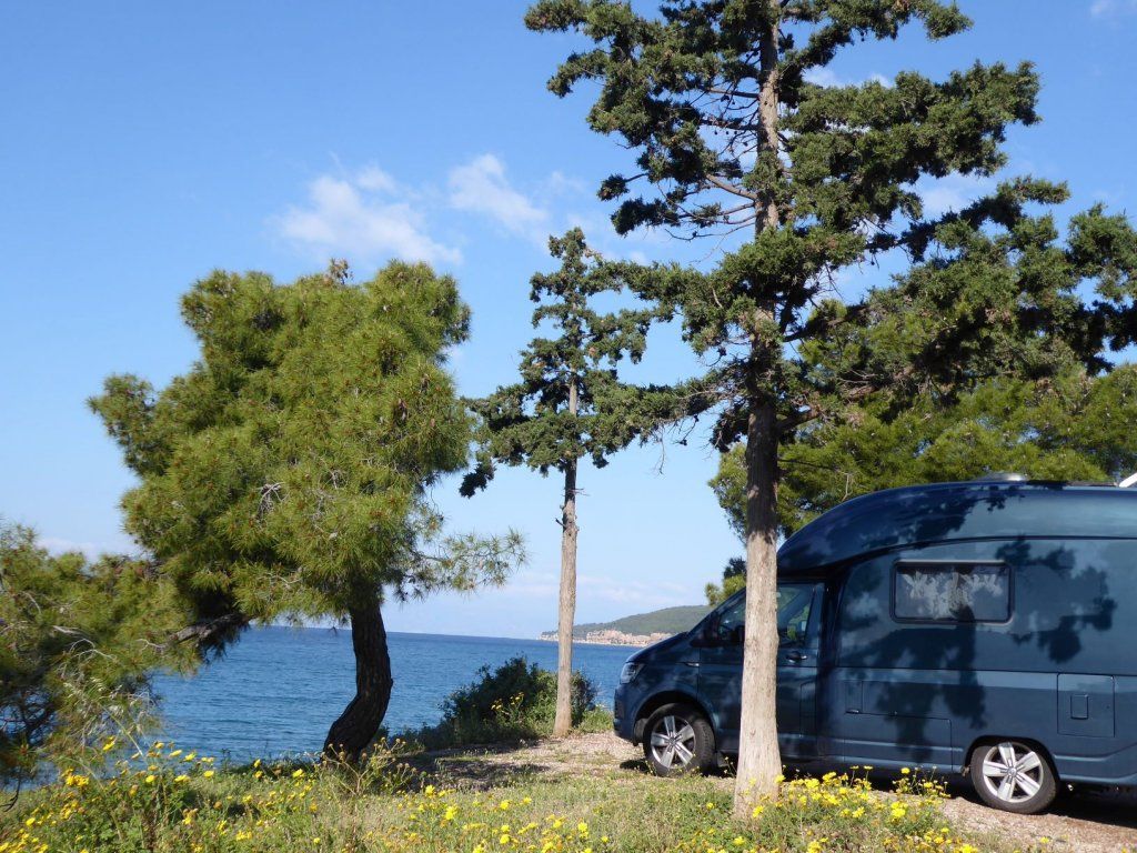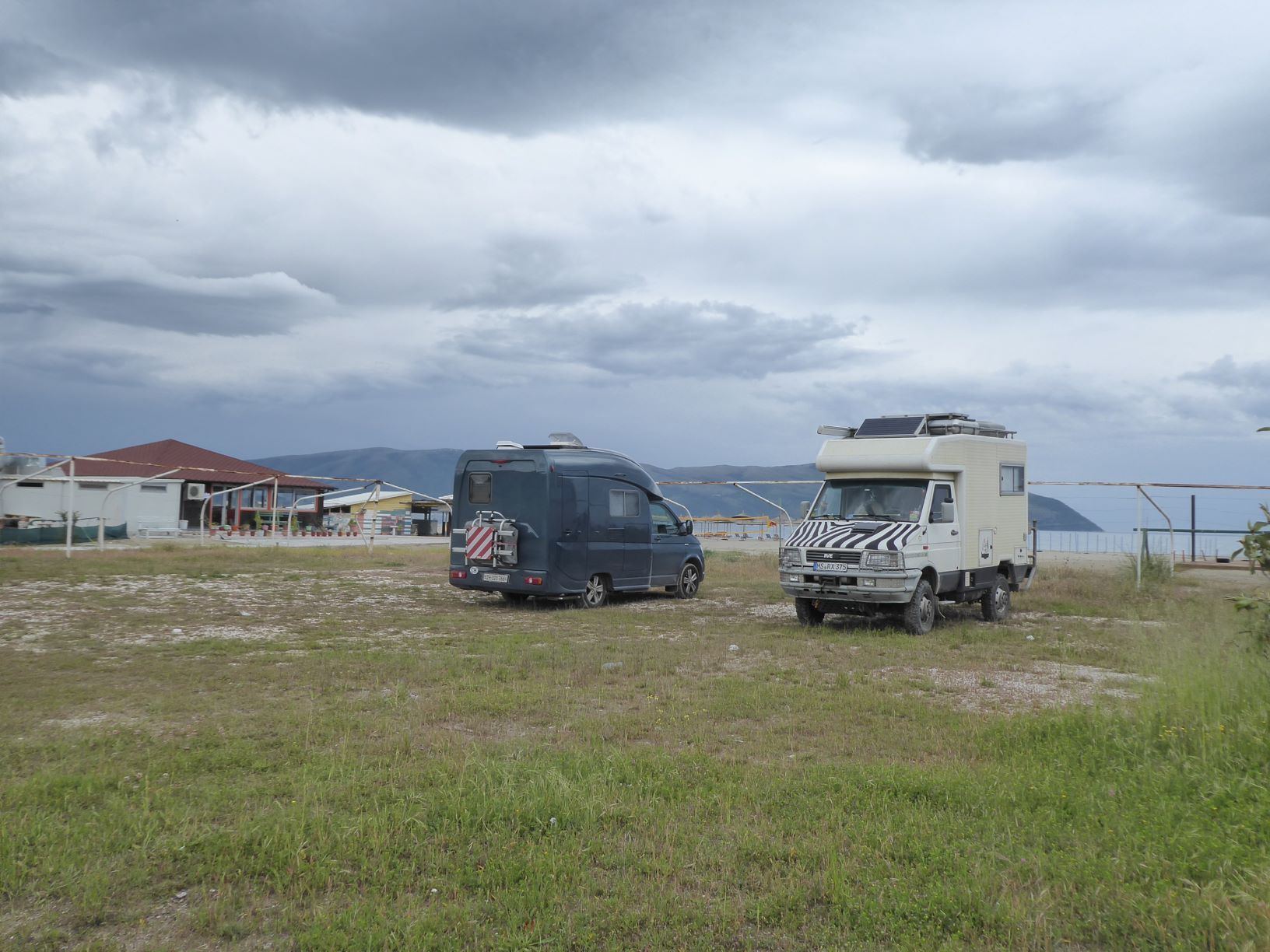 In Thermisia stehen wir in Hydras Wave, einem schönen Platz. Auf der Wiese kommen andere Schweizer und Deutsche und sofort beginnen Gespräche und Nachbarschaft. Es ist echt gemütlich und wir erfahren viel Neues über Plätze und Albanien.