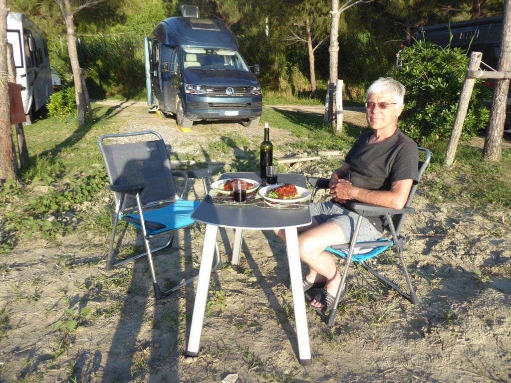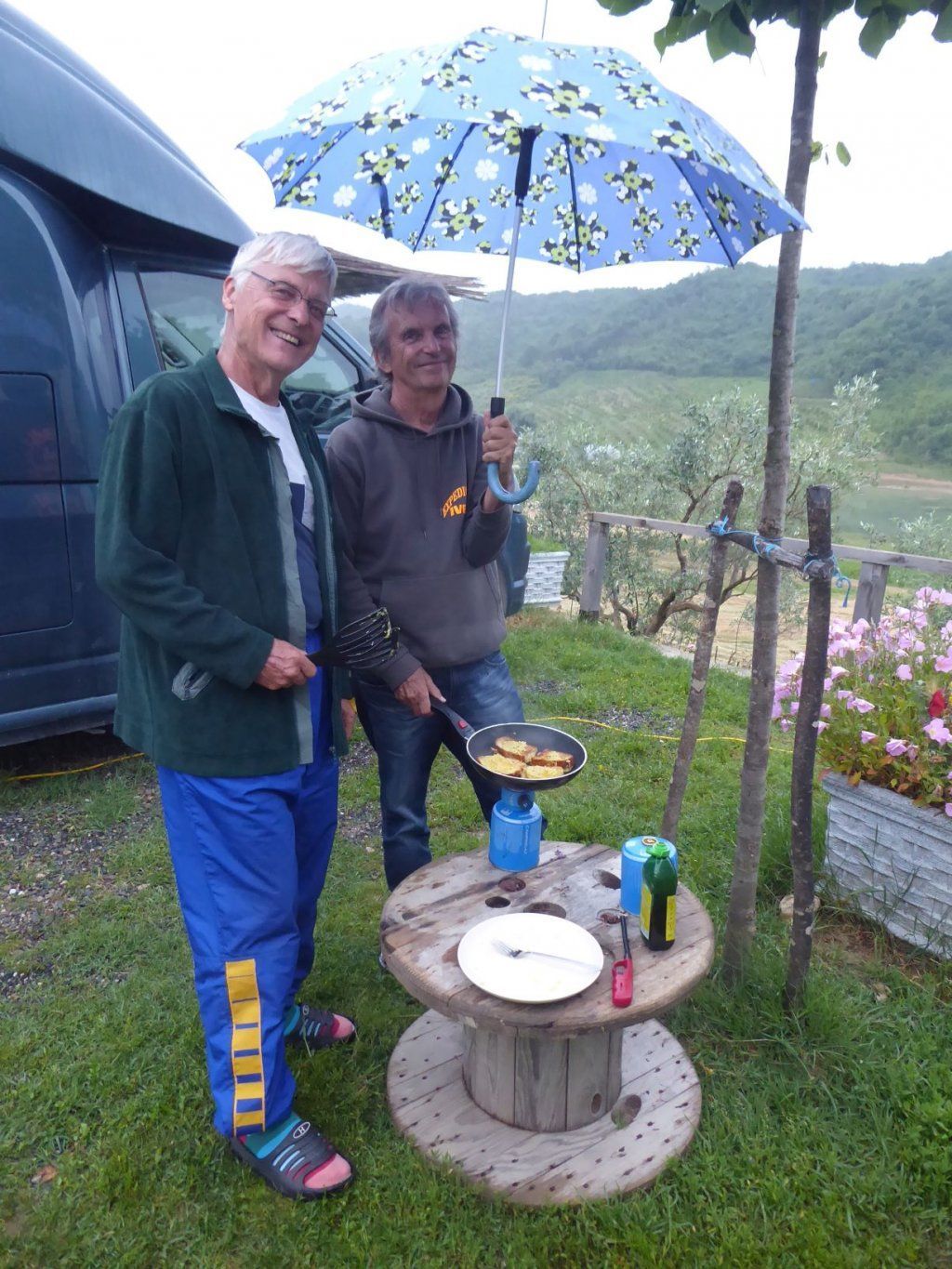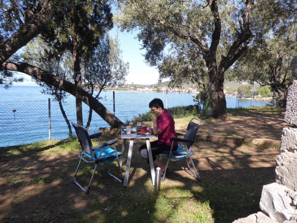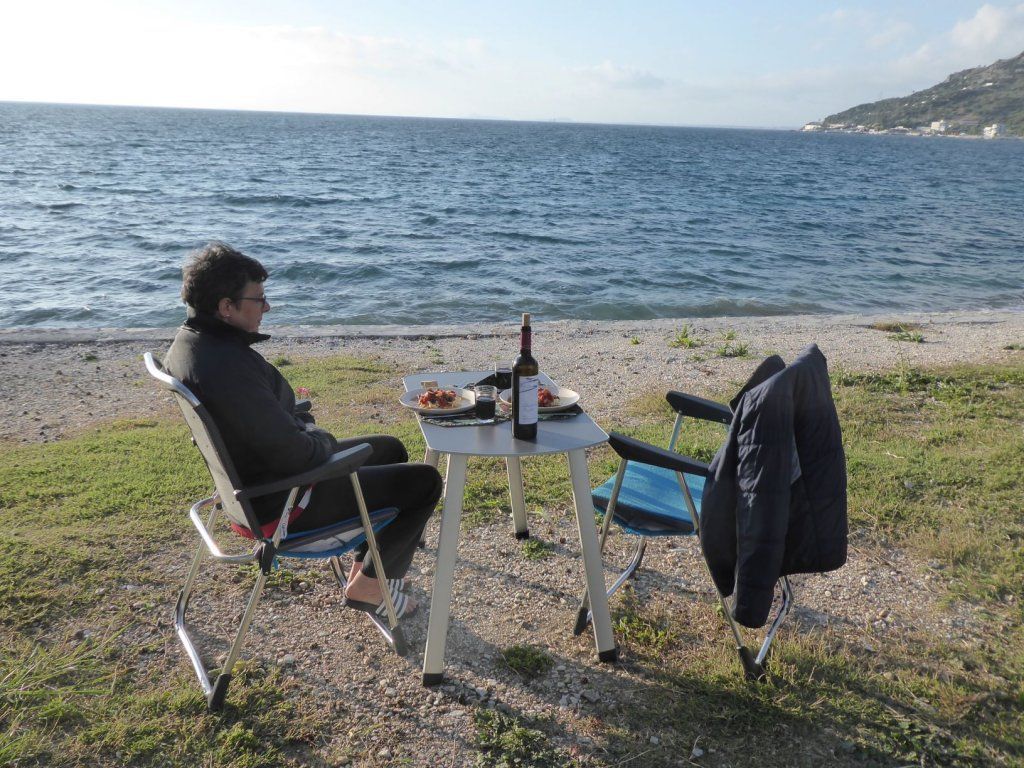In Thermisia stehen wir in Hydras Wave, einem schönen Platz. Auf der Wiese kommen andere Schweizer und Deutsche und sofort beginnen Gespräche und Nachbarschaft. Es ist echt gemütlich und wir erfahren viel Neues über Plätze und Albanien.