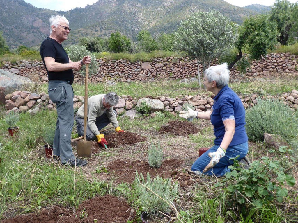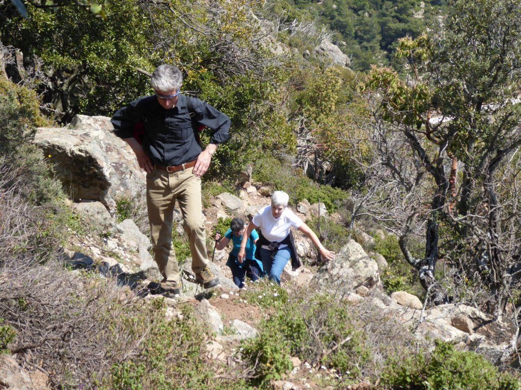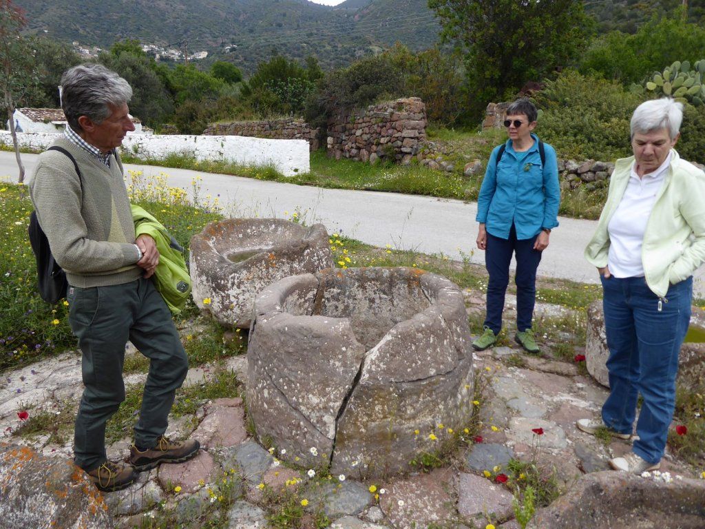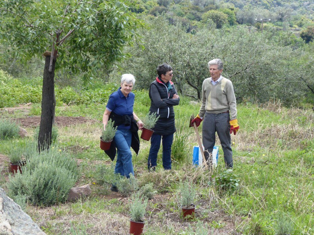 Dann besuchen wir Eva und Georgios in Vathy. Wir arbeiten auf ihrem Land und bekommen eine Ahnung vom steinigen Boden und vom Unkraut, das das Land verwildert. Wir jäten um Olivenbäume, damit sie im Unkraut nicht ersticken, harte und schöne Arbeit.