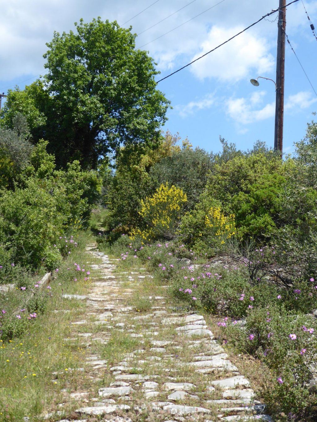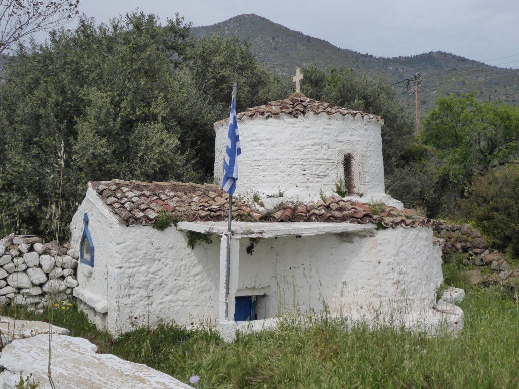 Wir wandern vom Kalogriastrand zu einer Kapelle und hoffen, von dort auf den Hügel zu kommen. Leider Pech, wir hätten klettern müssen. Der Weg ist fantastisch, es summt und brummt, die Bienen haben viel Arbeit und Salbeidüfte ziehen um unsere Nasen.