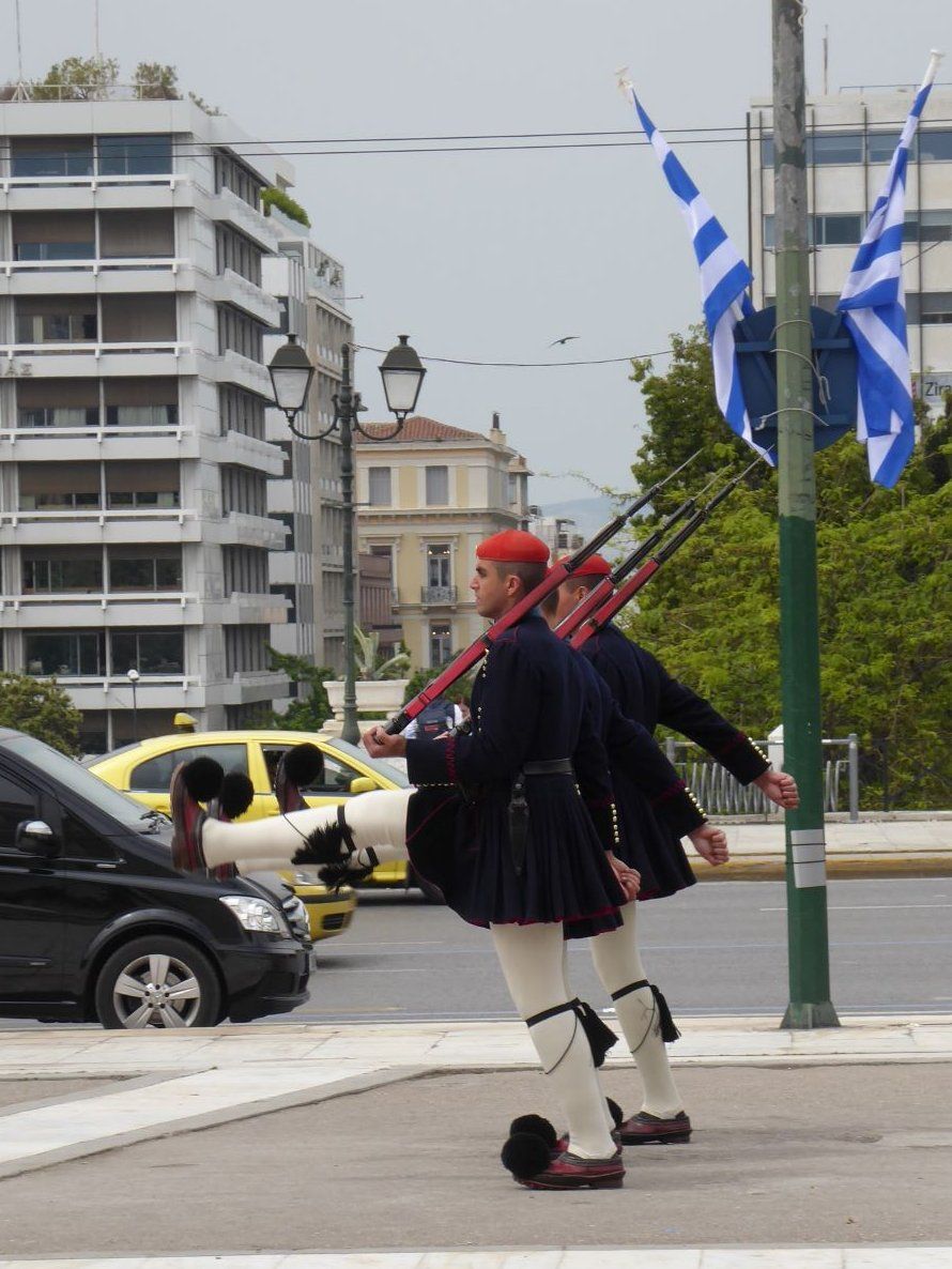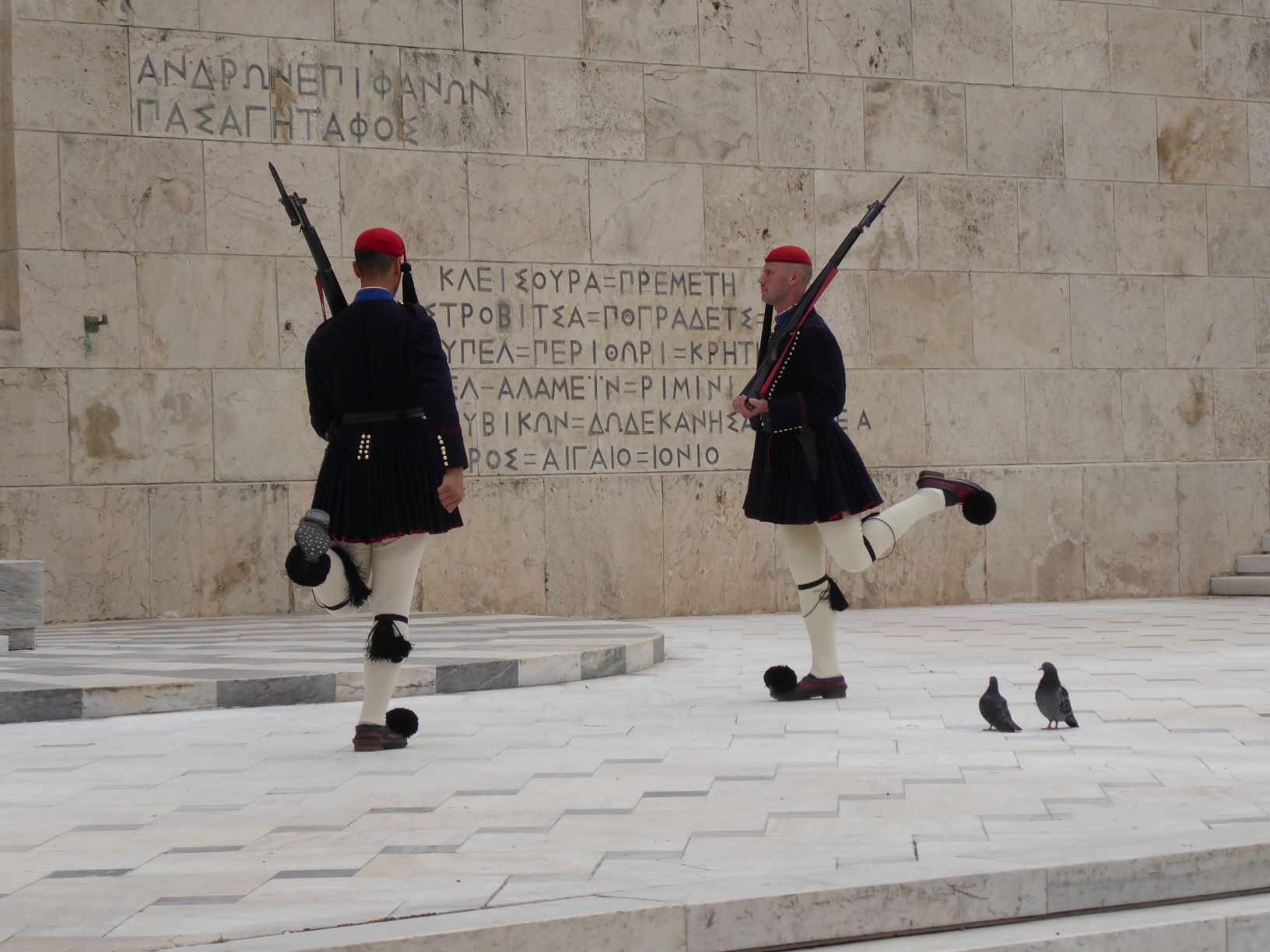 Beim Parlamentsgebäude erleben wir die sehr folkloristische Wachtablösung. Wir schlendern durch die Einkaufsstrassen und Gassen und sehen endlich die Akropolis. Aber die Warteschlangen vor den beiden Kassen ist sicher 50m und Hunger haben wir auch. Auf der Terrasse des Museums essen wir fein. Wir umrunden die Akropolis, aber kommen nicht hinauf.