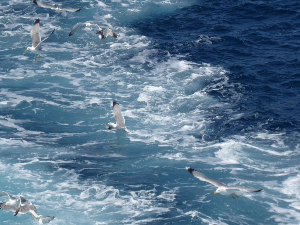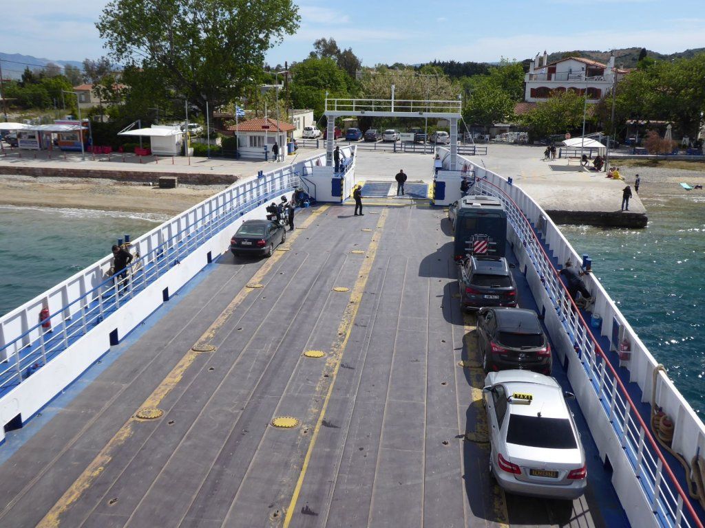 Auf dem Wasserweg setzten wir über auf die Insel Evia, oder Euböa. Viele Möven begleiteten uns und kehrten mit der entgegenkommende Fähre wieder zurück. Mit der jungen Kapitänin kamen wir gut an.