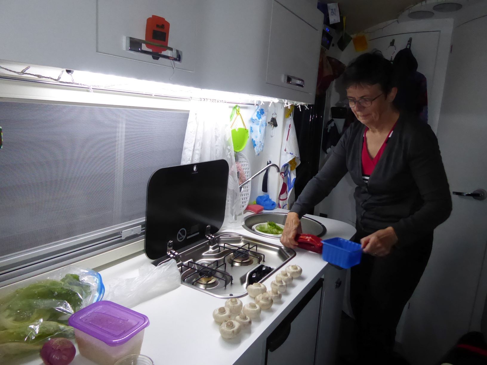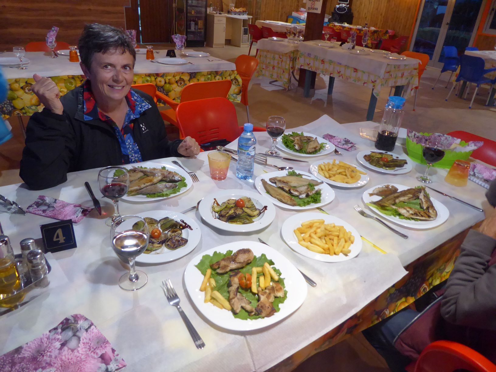Auf dem Camping Farma Sotiris begrüssen uns viele Gänse und junge Hunde. Für 15 Euro können wir stehen, duschen und das Morgenessen ist inbegriffen. Der Camping ist im Tal unten und so ist auch unsere Stimmung: Wir suchten einen Nationalpark, der keine einzige Tafel hat, also nicht wandern. Für die Zigerhörnli haben wir genau noch eine Zwiebel, der Rahm ist sauer. Trotzdem werden sie fein. Kalt ist es auch. Wir wollen eine 2. Nacht bleiben, und Hans findet auf der App maps me eine Rundwanderung von etwa 2 1/2 Stunden. Kurz vor dem nächsten Regen kommen wir wieder zum Wigwam. Dann das grosse Erstaunen, da kommen 16 grosse "Kisten" an, alles Holländer, wie eine Invasion.