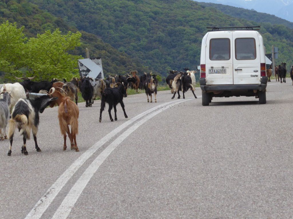 Wir haben mit Marianne und Uli in Igoumenitsa abgemacht, darum müssen wir Nordgriechenland queren. Das ist sehr abenteuerlich und sehr kurvenreich. Es geht hinauf und hinunter und in eine nächste Geländekammer. Dörfer sind richtig an die Hänge geklebt. Bei Karpenisi machen wir einen Abstecher von 10 km steil in die Höhe bis auf 1860 m. Dort ist die Skistation Timifristos. Es hat noch einigen Schnee, ist merklich kühler und eine Schlechtwetterperiode ist angesagt. Wir sind da oben ganz allein mit einer sagenhaften Aussicht. Am nächsten Morgen ist es grau und neblig, sodass wir schnell wieder ins Tal fahren und weiter auf der engen und kurvenreichen Strasse. Zum Glück haben wir sehr wenig Gegenverkehr. Friedhöfe und Kirchen leuchten weit herum. In Agrinio kaufen wir ein und machen uns auf Campingplatzsuche. Das dauert lange und ist aufreibend: Entweder gibt es sie nicht, sie sind zu, oder so vollgestellt, dass wir keinen Platz finden. Bei Preveza, nach 269 km und 7 Stunden Fahrt, finden wir den Camping Kalamitsi Beach.