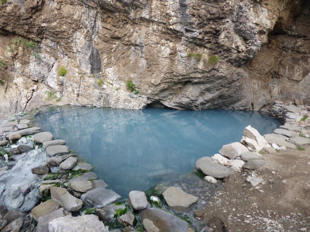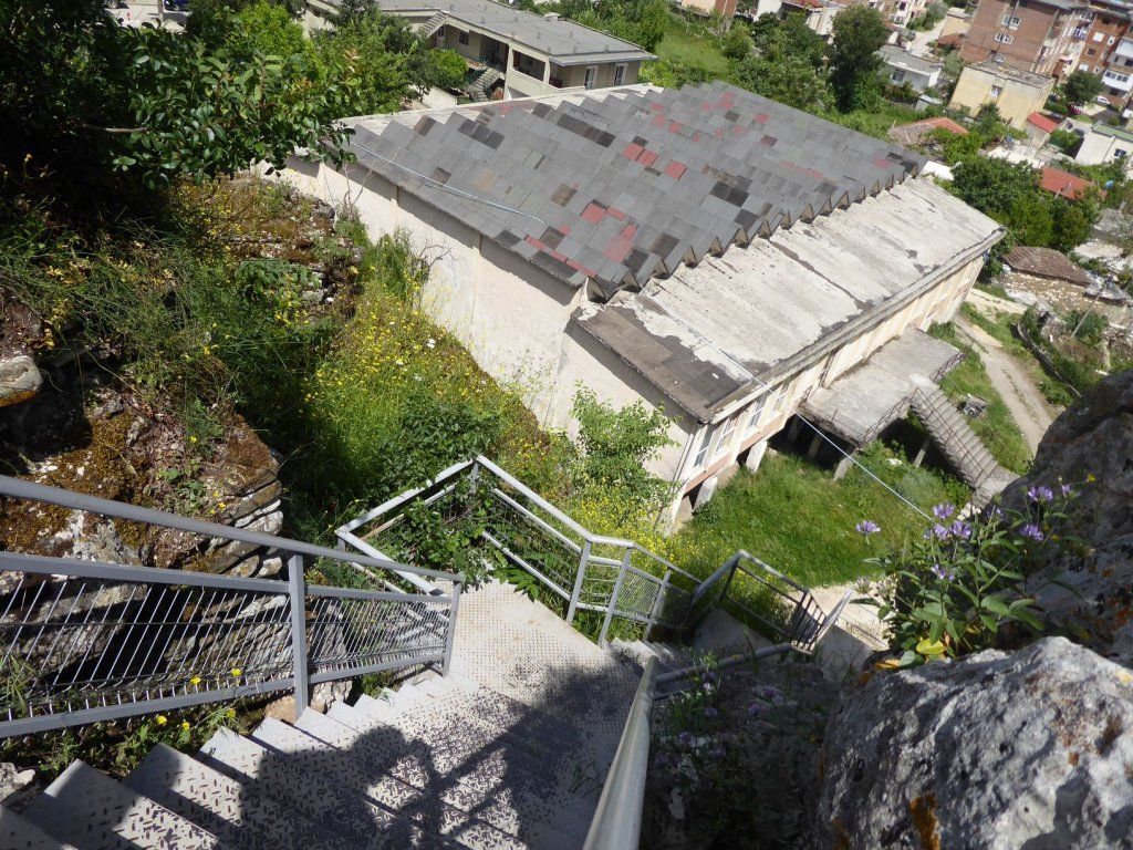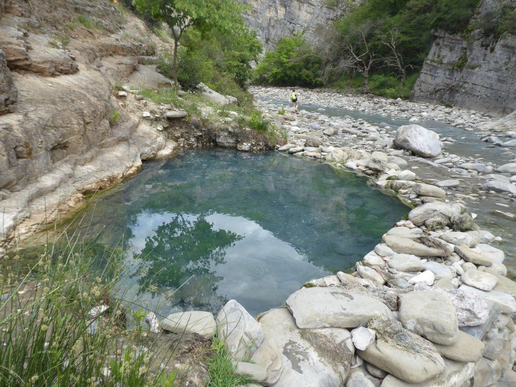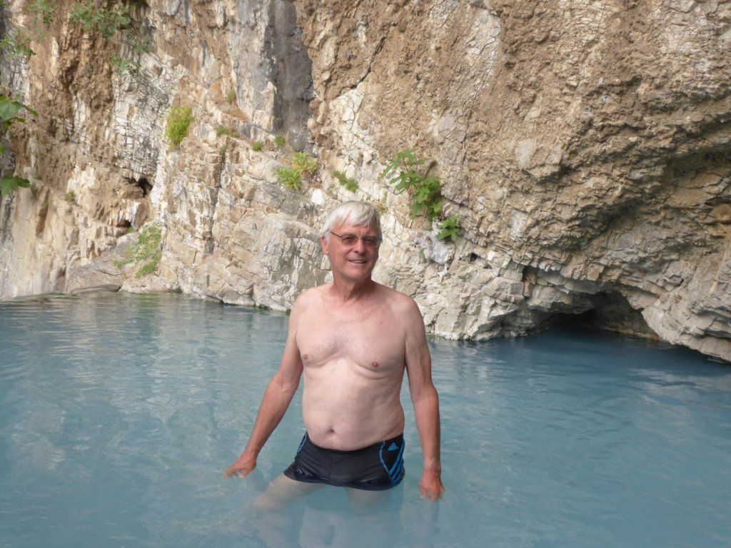 Wir wollen unbedingt nach Gjirokaster. Nach dem Morgenbad in den warmen Quellen von Benje Novosele verabschieden wir uns und fahren nach Permet. Auf der Turisteninformation werden wir gefragt, was sie in Benje Novasele besser machen könnten. Wir schlagen 2 Abfallcontainer vor, aber das sei Aufgabe der Gemeinde. Vermutlich verläuft unser Vorschlag im Sand. Wir steigen auf den Felsen und betrachten den schönen Ort mit den vielen blauen Wasserkanister auf den Dächern.