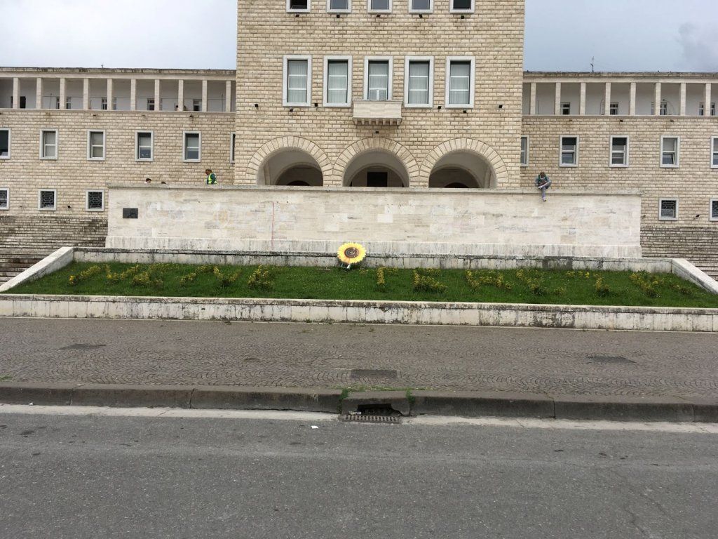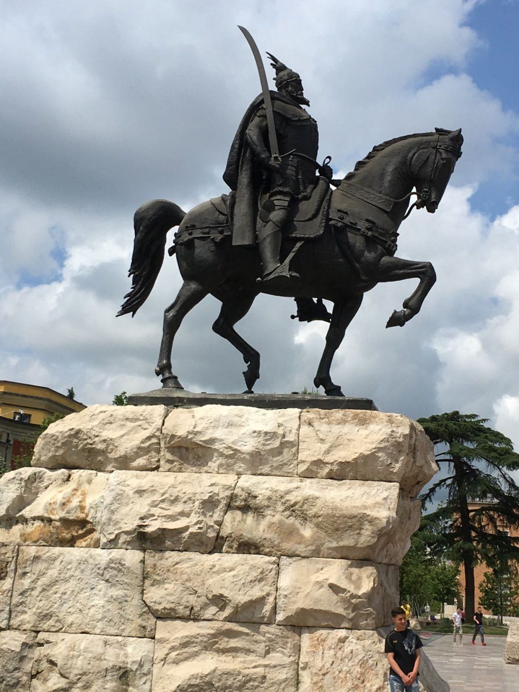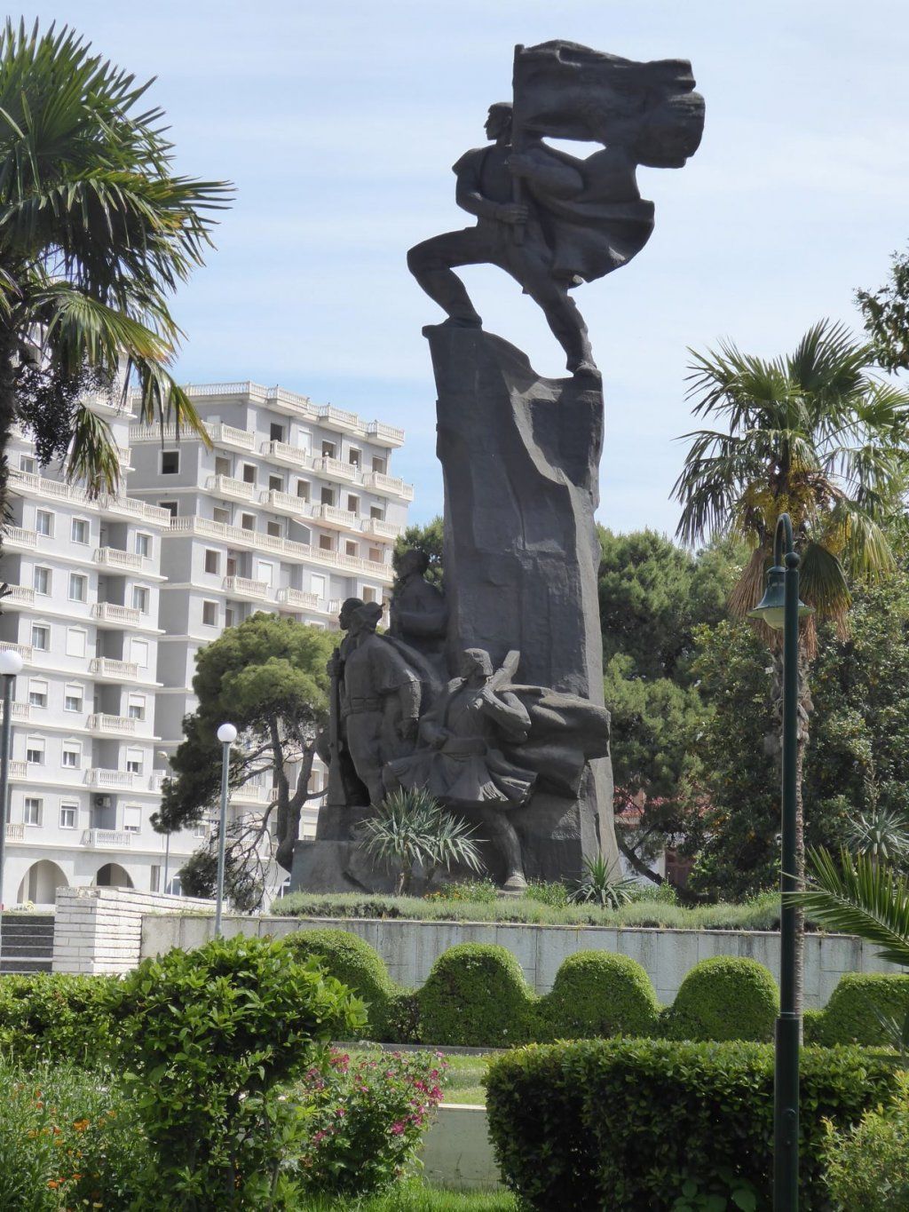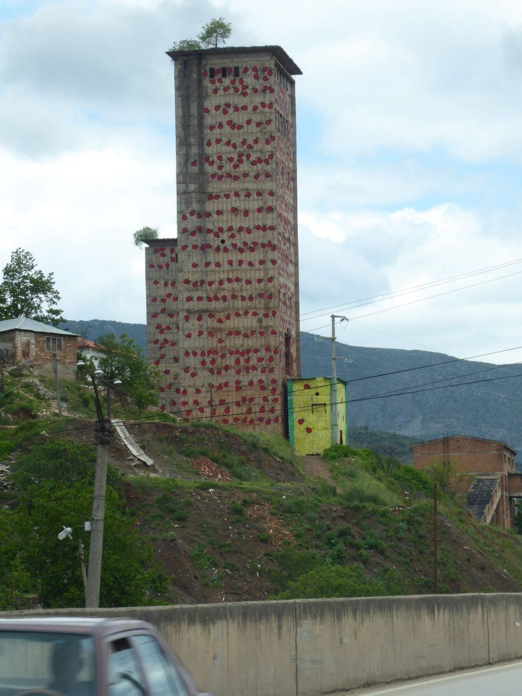Nächste Station ist Tirana. Der Camping Tirana ist 17km vor der Stadt und an einem See gelegen. Malwin, ein junger Fahrer nimmt uns in die Stadt und fasst die Sehenswürdigkeiten zusammen. Dann lässt er uns frei und holt uns wieder ab. Vom Skanderbeg (Nationalheld 15.Jh) Platz schlendern wir durch das breite Boulevard bis zum Denkmal von Mutter Teresa. Ihr Name ist mit Blumen in eine Wiese geschrieben. Unterwegs kommen wir an der Pyramide von Hoxhas Tochter vorbei. Das sollte das Mausoleum für ihren Vater werden, leider starb er vorher und in typisch kommunistischer Art hat der Beton schlechte Qualität und das Werk zerfällt.