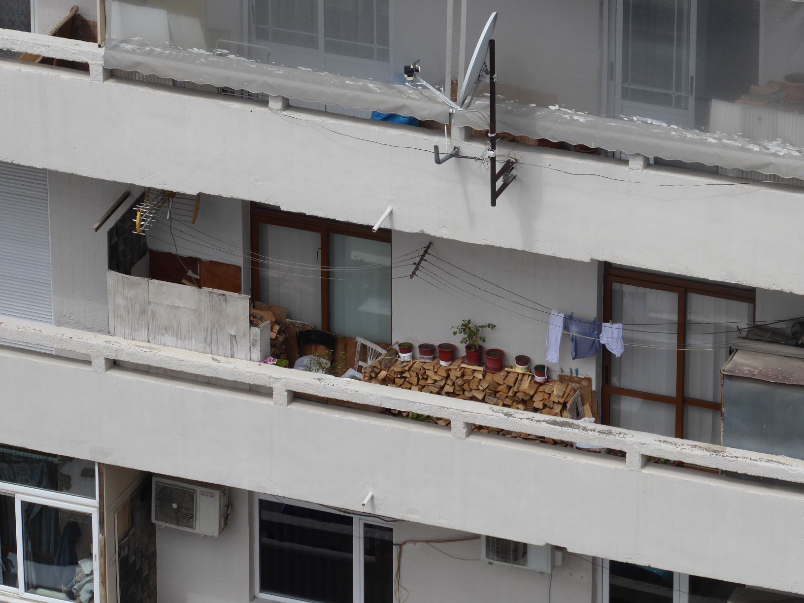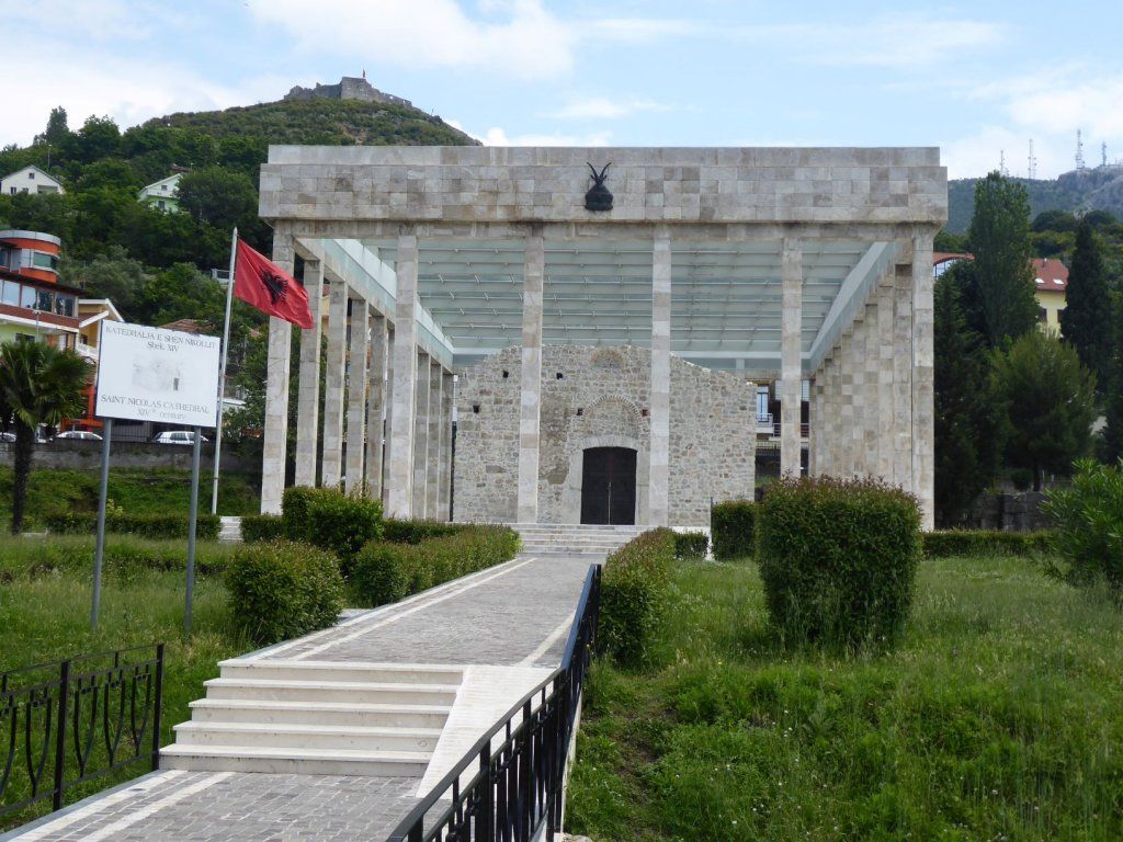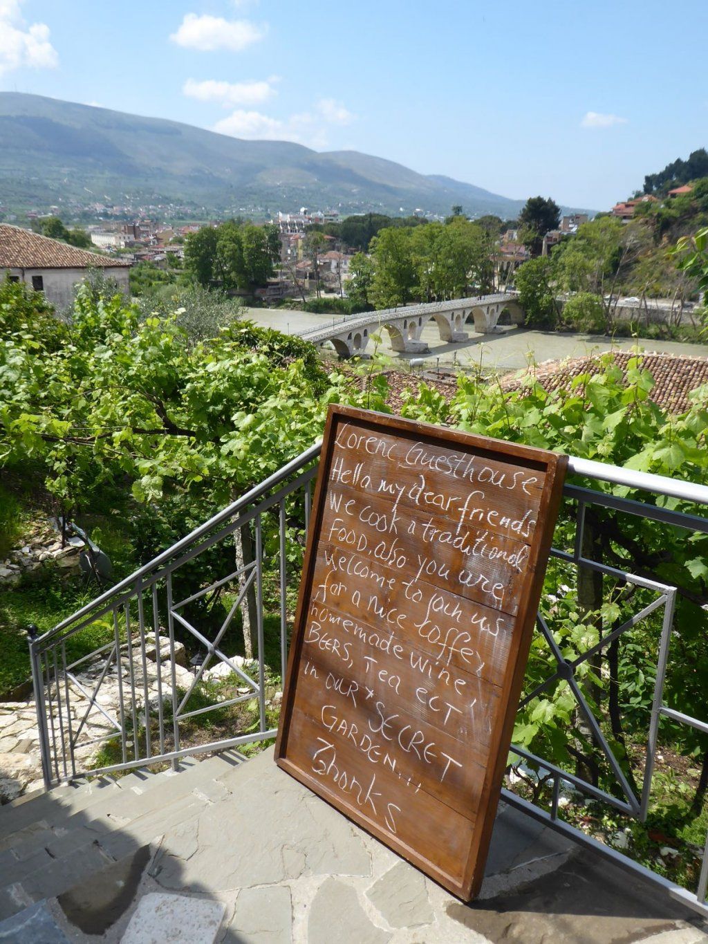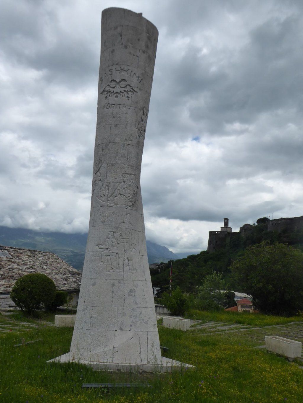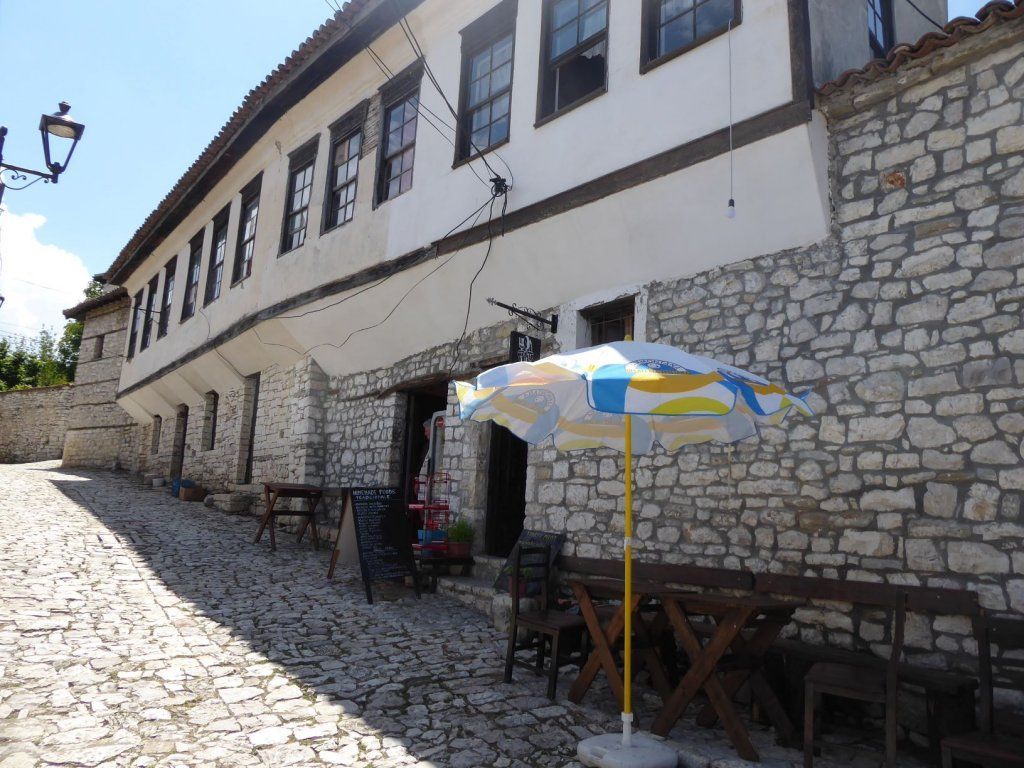 Die Stadt erkunden wir zu Fuss. Bis zur Burg sind es 45 Minuten. Der Weg wird immer steiler, er ist aus breitem Kopfsteinpflaster. Wir kommen durch ein sehr ursprüngliches Quartier und bewundern die schönen Balkone. Ein Teil der Burg ist eine Ausstellung von Kanonen aus dem 1. und 2. Weltkrieg und sogar ein amerikanisches Flugzeug ist dabei. Der Pilot ist wegen schlechtem Wetter vom italienischen Luftraum abgekommen und musste in Albanien notlanden. Das Hoxha-Regime stellte dies als Erfolg ihrer Abfangjäger dar, als Triumpf über die Amerikaner und hievte das Flugzeug zum Beweis auf die Burg hoch. Der andere Teil ist nun Kulturraum mit einer schönen Freilichtbühne. Von dort aus können wir uns orientieren.