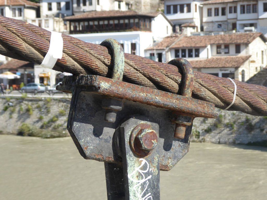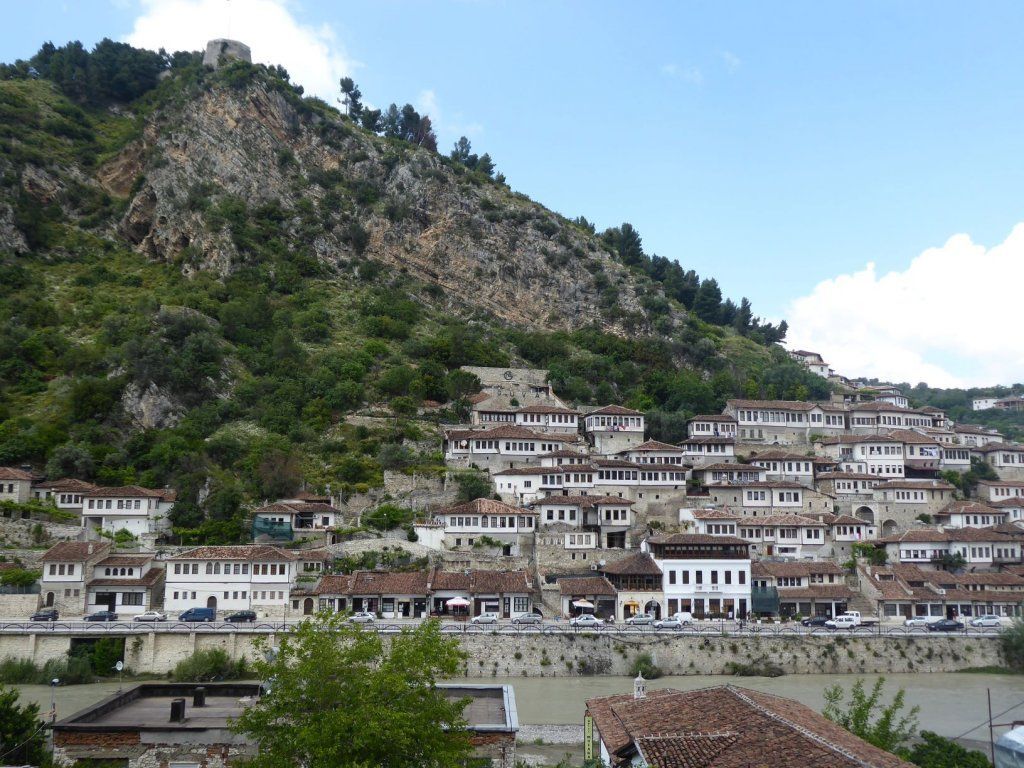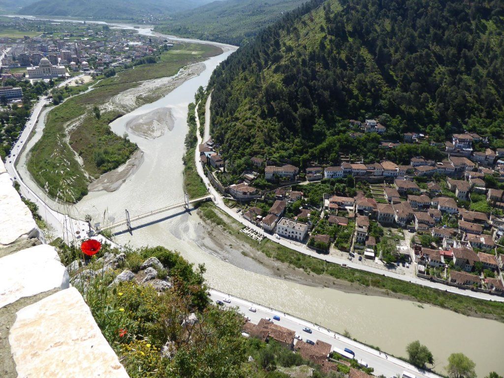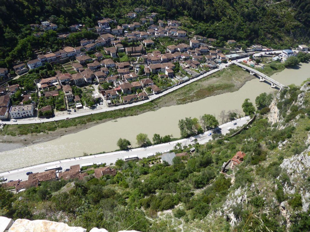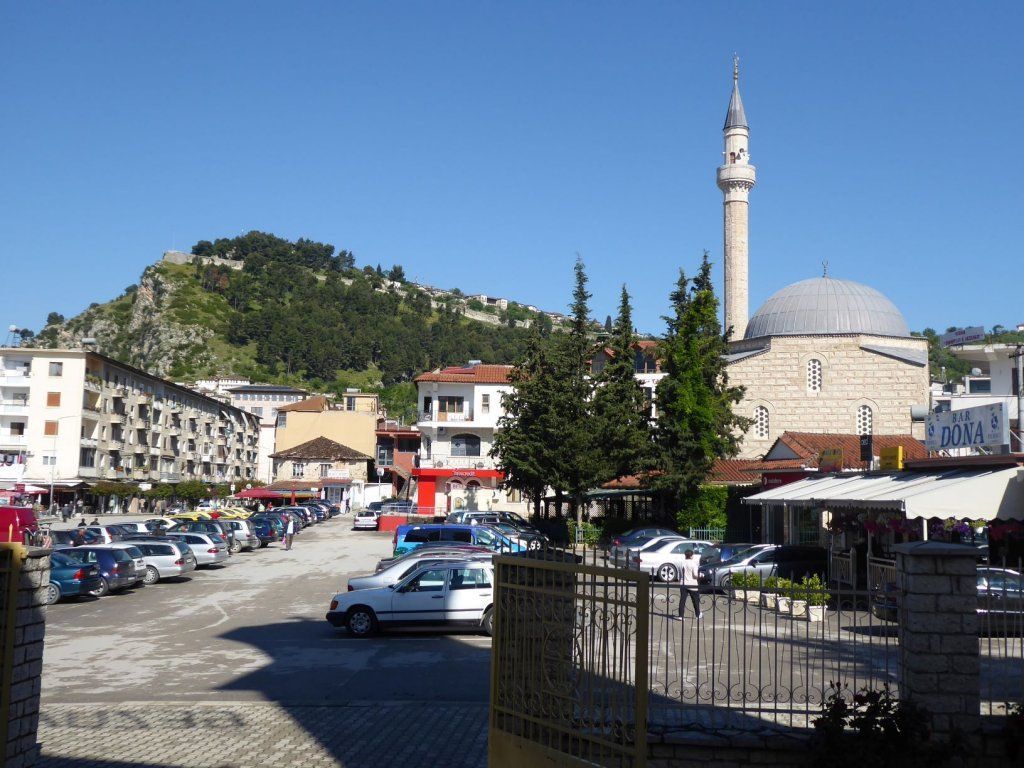 Berat ist UNESCO Weltkultuerbe. Wir haben einen Platz im Hof der Villa Juri, mitten in der Stadt. Von dort aus erkunden wir die Stadt zu Fuss. Zuerst geht es durch den christlichen Teil, Gorica, dann erreichen wir den muslimischen, osmanischen oder türkischen Teil Megalem. Dieser gibt wohl Berat das Attribut Stadt der 1000 Fenster. Die Gassen sind eng und kopfsteingepflastert. Im Erdgeschoss der meisten Häuser sind Läden. Orthodoxe Kirche, Moschee und Missisippi Bar sind Nachbarn. Wir sind mitten im Ramadan, aber davon merkt man als Tourist nichts. Der Muezzin ruft um 17 Uhr und um 21 Uhr. Die Religionen leben scheinbar gut nebeneinander und miteinander und bis jetzt habe ich in Albanien im Ganzen nur etwa 15 verschleierte Frauen gesehen, viel weniger als bei uns. Steil geht es hinauf zur Burg, dem 3. Stadtteil Kalaja. Zum Glück finden wir eine Abkürzung. Es ist ein touristischer Ort, hier sehen wir viele Souvenirlädchen und Ausstellungen. Da gibt es viele gestrickte und gehäckelte Decken und die Verkäuferinnen erklären mir, dass ihre Mütter das gemacht hätten. Ich bewundere die schönen Stücke. Wir streifen durch die Gassen und kommen zu einer grossen Marienkirche. Hier wird sichtbar, was der Kommunismus in Kirchen angerichtet hat: Sie wurde zerstört. Der Wiederaufbau ist zu teuer. Wir gehen auch nachts auf das breite Boulevard zur Korah, Runde. Leider hat es nicht so viele Leute, aber wir treffen 2 junge Albaner, die uns von Schwarzarbeit in der Schweiz und Deutschland erzählen. Das macht und sehr nachdenklich.