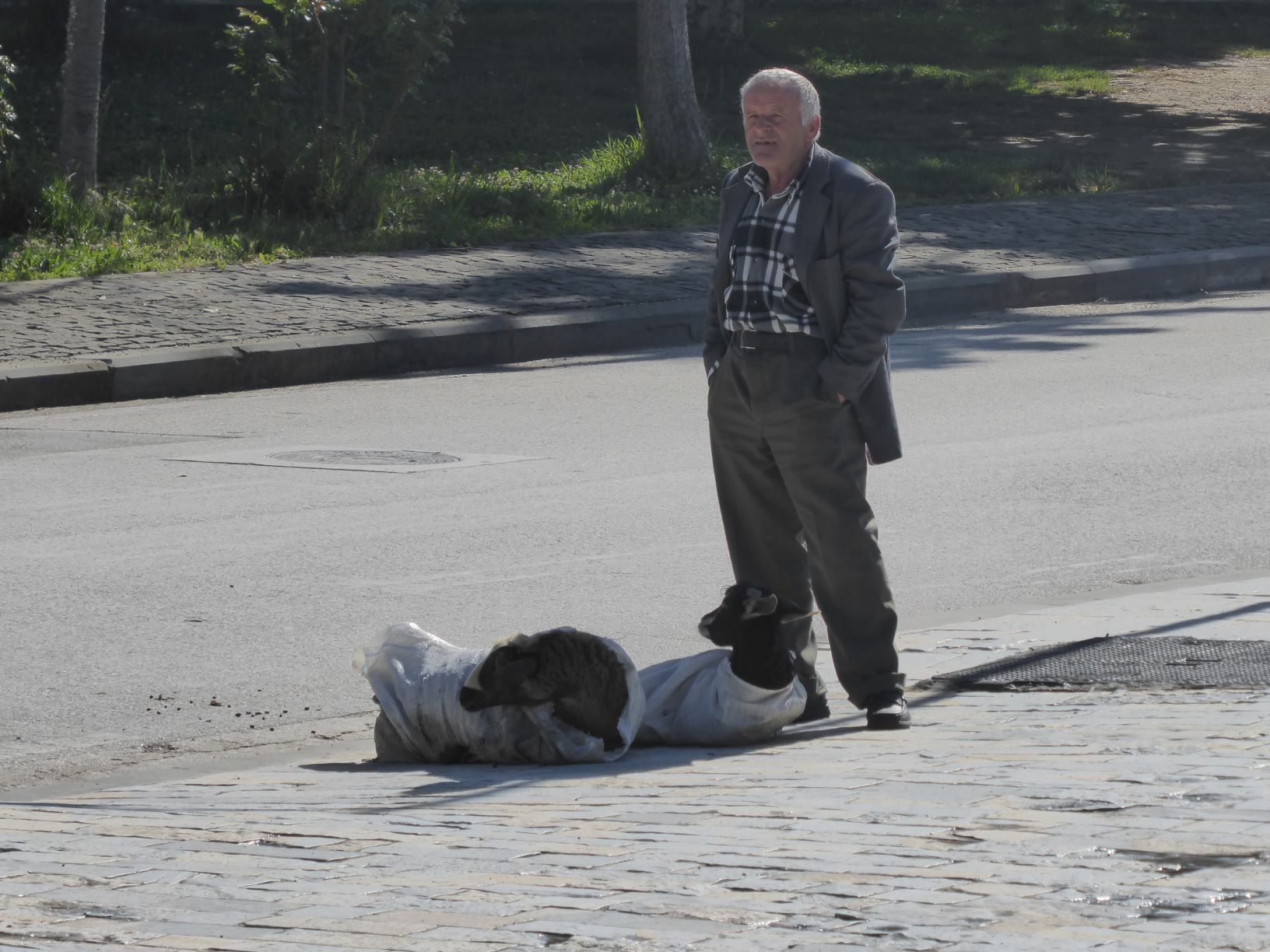 Endlich ist es wieder einmal schön und warm. Wir möchten das römische Theater von Orikum sehen. Leider liegt es in Militärgebiet und die verantwortliche Person ist auch nicht da. Pech. In der Stadt Vlore erleben wir Freundlichkeit und Gastfreundschaft der Albaner. Beim Fährhafen finden wir einen Parkplatz und beim rangieren kommt ein Mann und winkt Hans in den Platz. Er meint zwar wir wollten auf die Fähre nach Korfu und versichert uns dann, dass unser Auto vor seinem Laden und der Bar sicher stehen würde, wir sollten uns ruhig die Stadt ansehen. Beim Fährhafen kommt ein nächster und will uns helfen. Er zeigt uns den Weg in die Stadt. Das Boulevard ist wirklich im Bau, es wird gegraben, gesetzt, gepflanzt und geteert. Wie es wohl in einem Jahr aussieht?