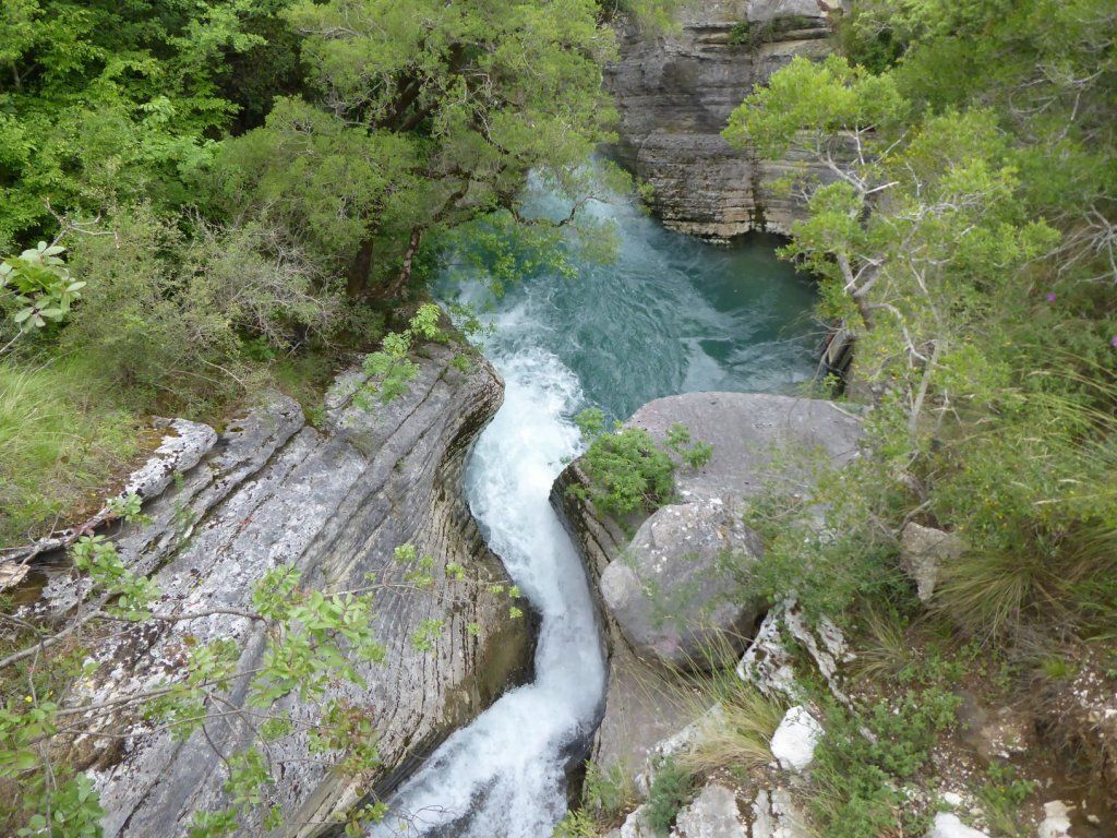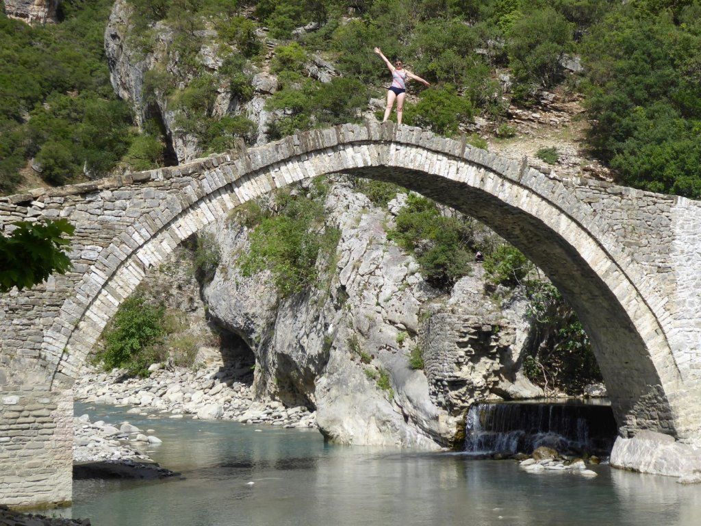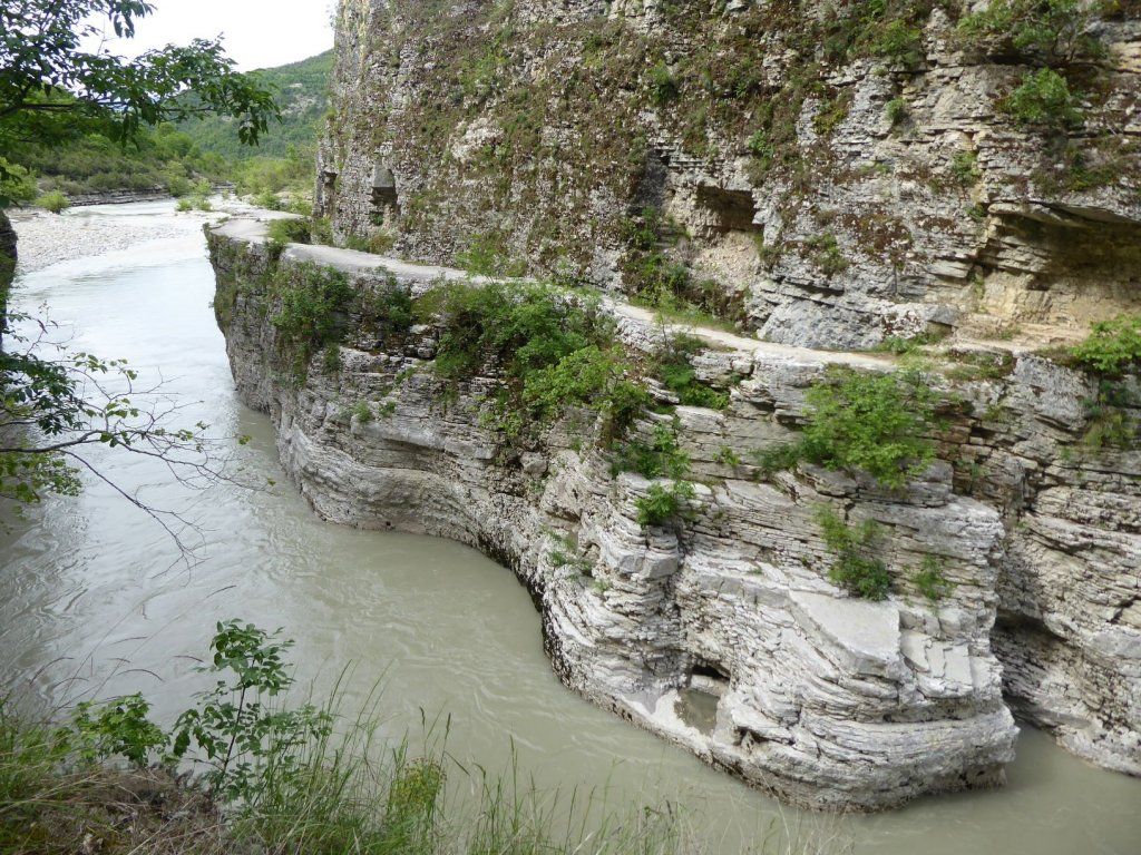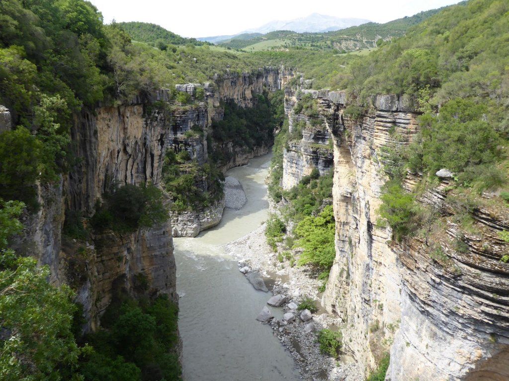 Am nächsten Tag fahren wir ins Osum Tal. Der Osum ist ein ganz grosser Fluss. Die Strasse ist eng, kurvenreich, löchrig, abgebrochen. Die Fahrt ist sehr anstrengend. Bei einer schönen Osmanischen Brücke können wir zu ersten Mal Picknicken, so schön ist das Wetter. Dann fahren wir alle Aussichtspunkte an und bestaunen die tiefe Schlucht. Auf dem Canyon Camping Corovoda verbringen wir die Nacht. Von einer feiernden Männergesellschaft bekommen wir die Reste einer Ziege vom Grill, ist sehr fein. Das Fest endet mit Tanz und Raki, Schnaps. Bei Bogova wandern wir zu einem Wasserfall. Es tut gut, Wege auch zu Fuss zu gehen. Es macht einfach glücklich.
