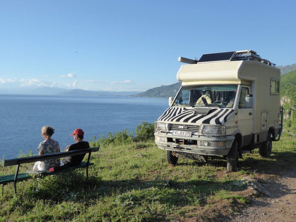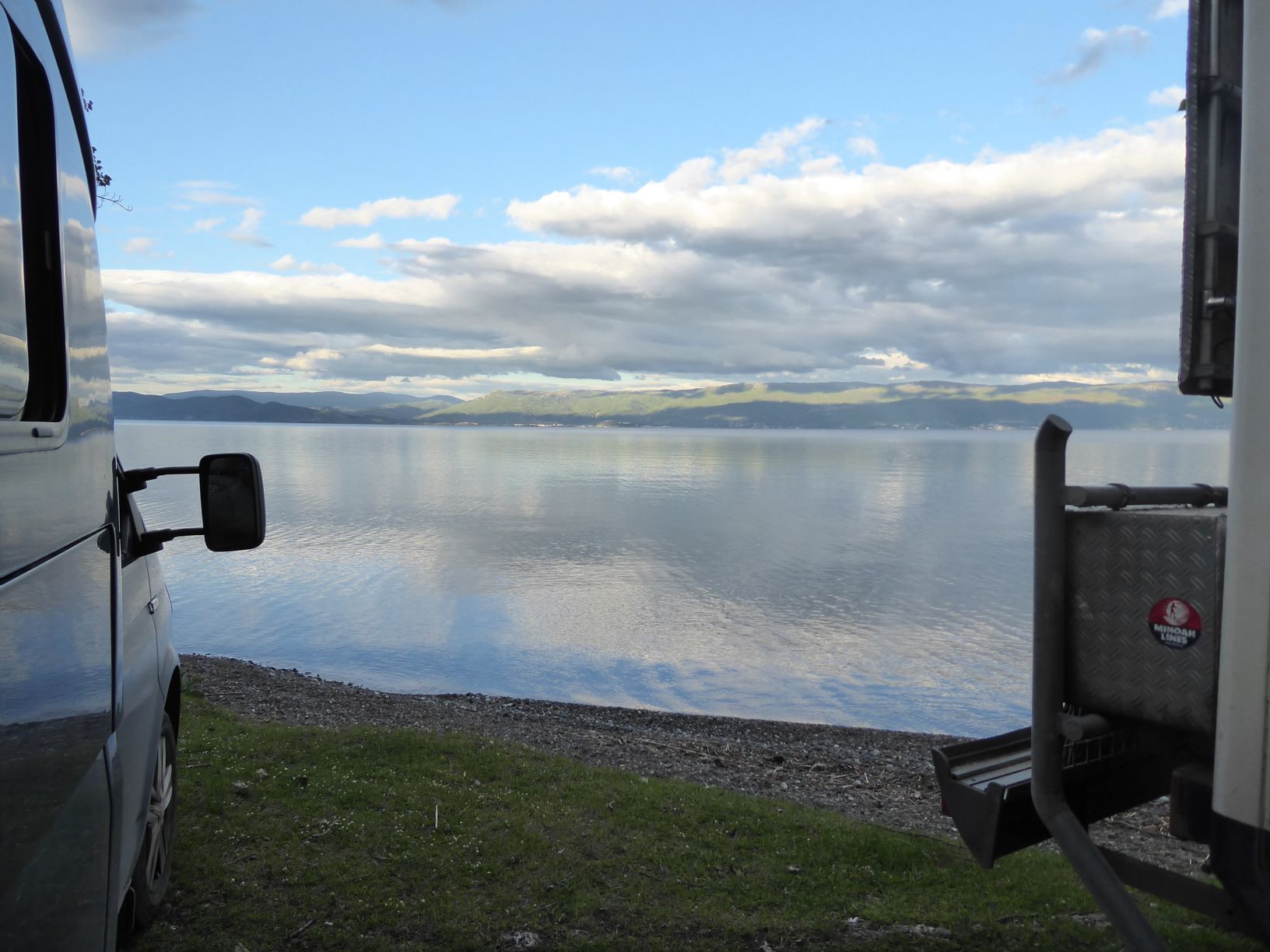 Lin ist ein zauberhaftes, ursprüngliches Dorf. Leider ist die Kirche zu. Von dort aus machen wir einen Abstecher nach Nordmazedonien, wir wollen um den Ohridsee fahren. Auffallend ist, dass die Häuser dort viel fertiger und gepflegter sind. Die Strassen sind anspruchsvoll wie in Albanien und auch das Abfallproblem ist nicht gelöst. Wir finden einen traumhaften Platz am See mit schöner Abendstimmung, aber in unserem Rücken ist ein verjäster Camping und nur Abfall wie eine Abfallhalde. Also Blick nach vorne.