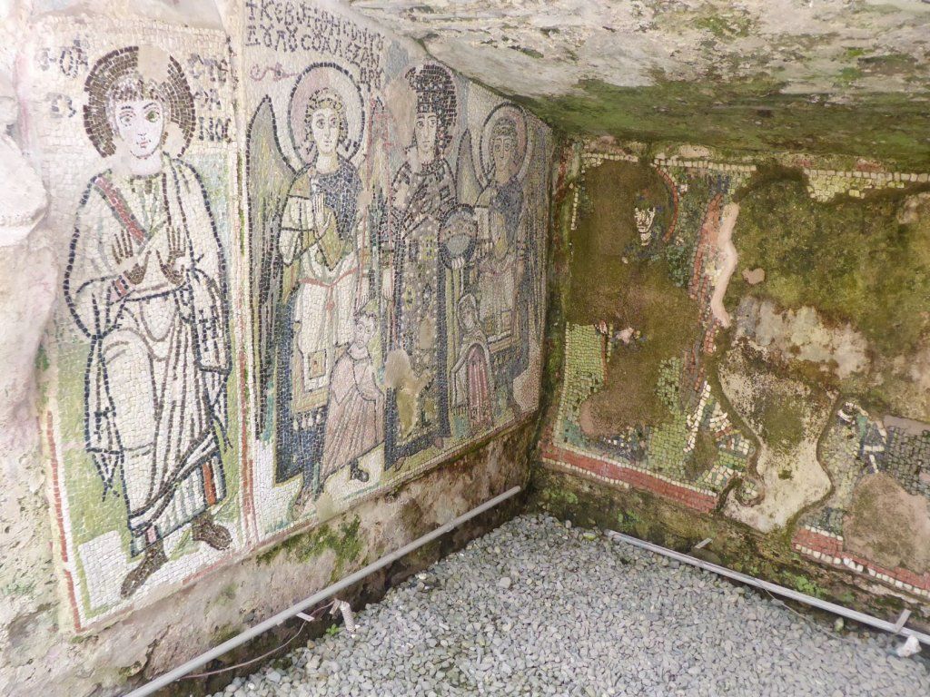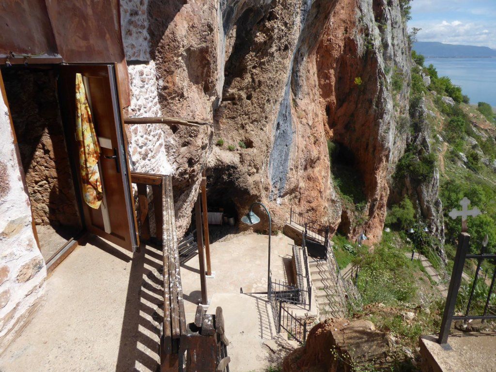 Noch ein berühmtes Kloster, St. Naum besuchen wir. Bei seinem Grab kann man sich hinknien und hört seinen (den eigenen) Herzschlag. So sollen Wünsche in Erfüllung gehen. Na, etwas Zauber muss doch sein.