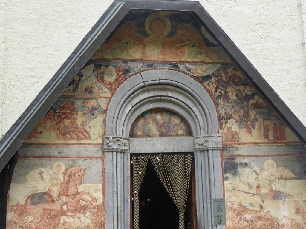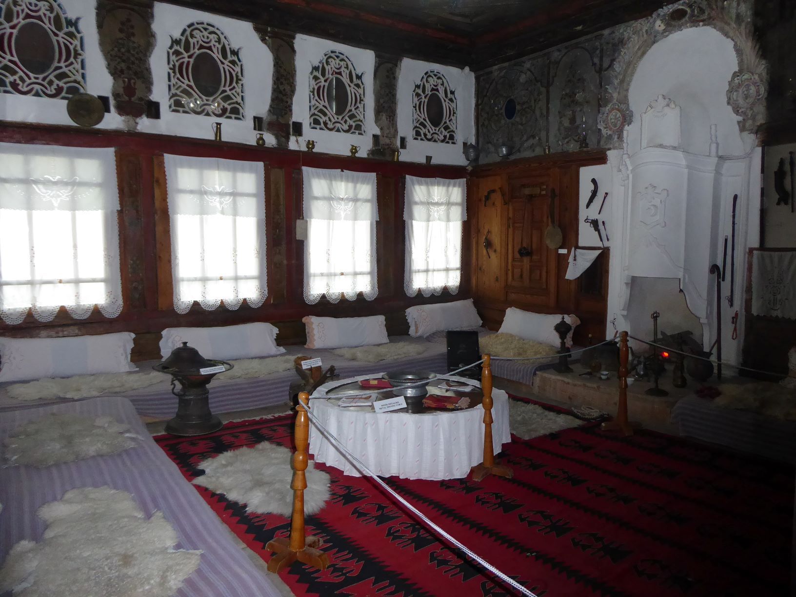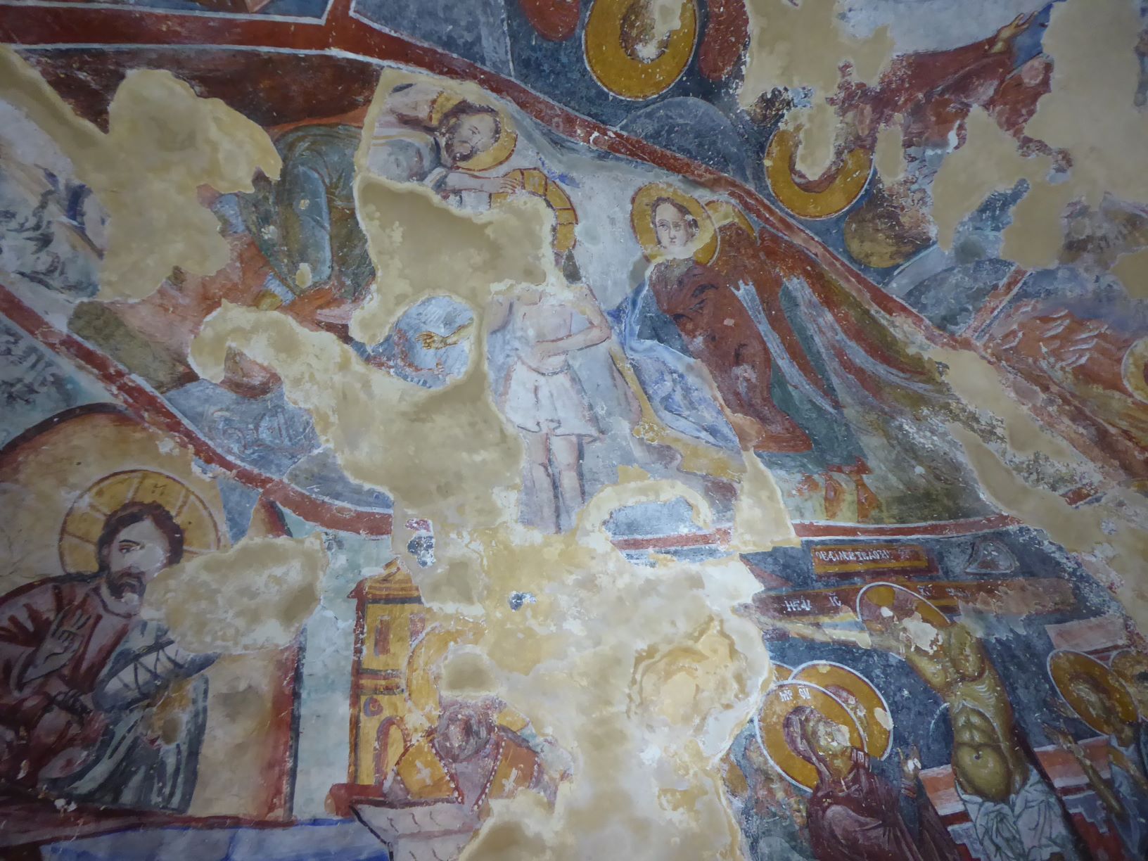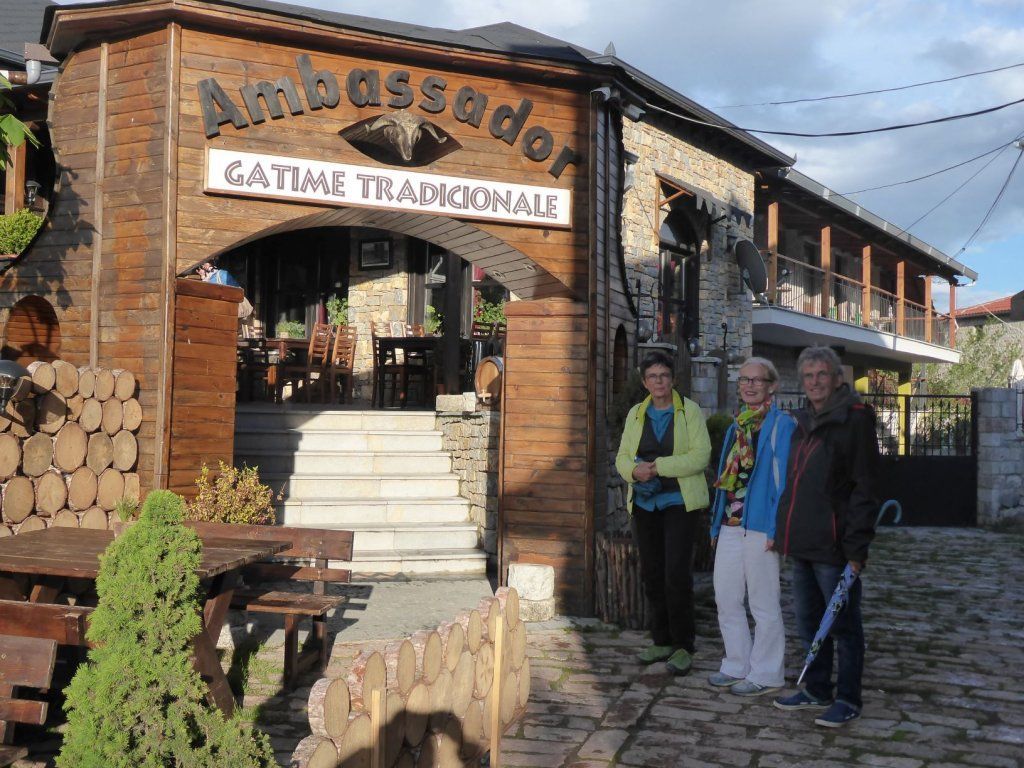 Gegen Abend fahren wir nach Voskopoje, ein heute verschlafenes Bauerndorf. Im 18. Jh war es eine blühendes Handelszentrum, in dem 30 000 Leute wohnten. Es gab dort 23 Kirchen. Die sollten so unauffällig wie möglich aussehen, eine hat die Form einer Scheune. Die schönste ist St. Nikolaus, die wir ansehen können, weil der Pope gerade eine Führung hatte. Aber wie immer: Keine Fotos. Es ist hier, auf 1100 m sehr kalt und regnet.