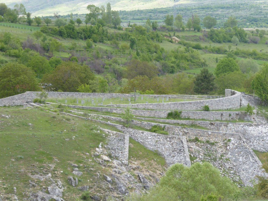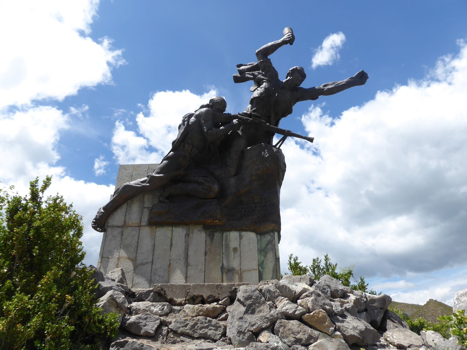 Ja, das ist ein echtes Abenteuer, echt albanische Strassen, wunderbar wildes Albanien, Hochebenen, und tiefe Täler, auf den Bergen grüsst immer noch Schnee, ja klar in diesem kalten Frühling. Erseke hat ein schönes und gepflegtes Zentrum, aber die Häuser und Strassen darum herum sind sehr baufällig. Bei Borova besuchen wir den Freidhof, der spiralförmig angelegt ist. Dort wurden 107 Personen, vor allem Alte Leute, Frauen und Kinder als Racheakt von den Deutschen erschossen. Sie wurden von Partisanen angegriffen, die meinten, es seien Italiener. Wir sahen viele Partisanendenkmäler.