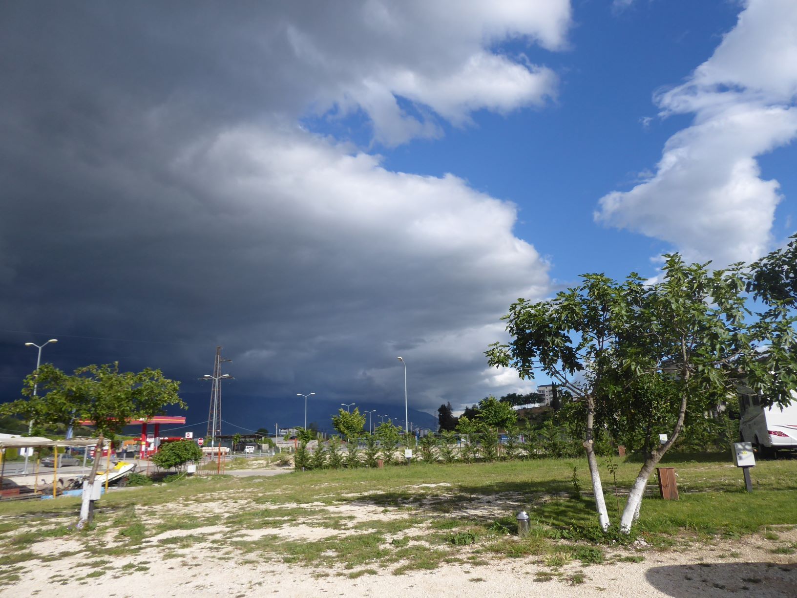 Wir treffen Marianne und Uli wieder am Nartestrand, auch hier, Müll und deutlich Vorsaison. Dafür habe ich endlich einmal einen Platz in der 1. Reihe. Nicht lang, denn nun wirkt sich das Balkantief wirklich aus: Regen, etwas Sonne, viel Regen und kühl.